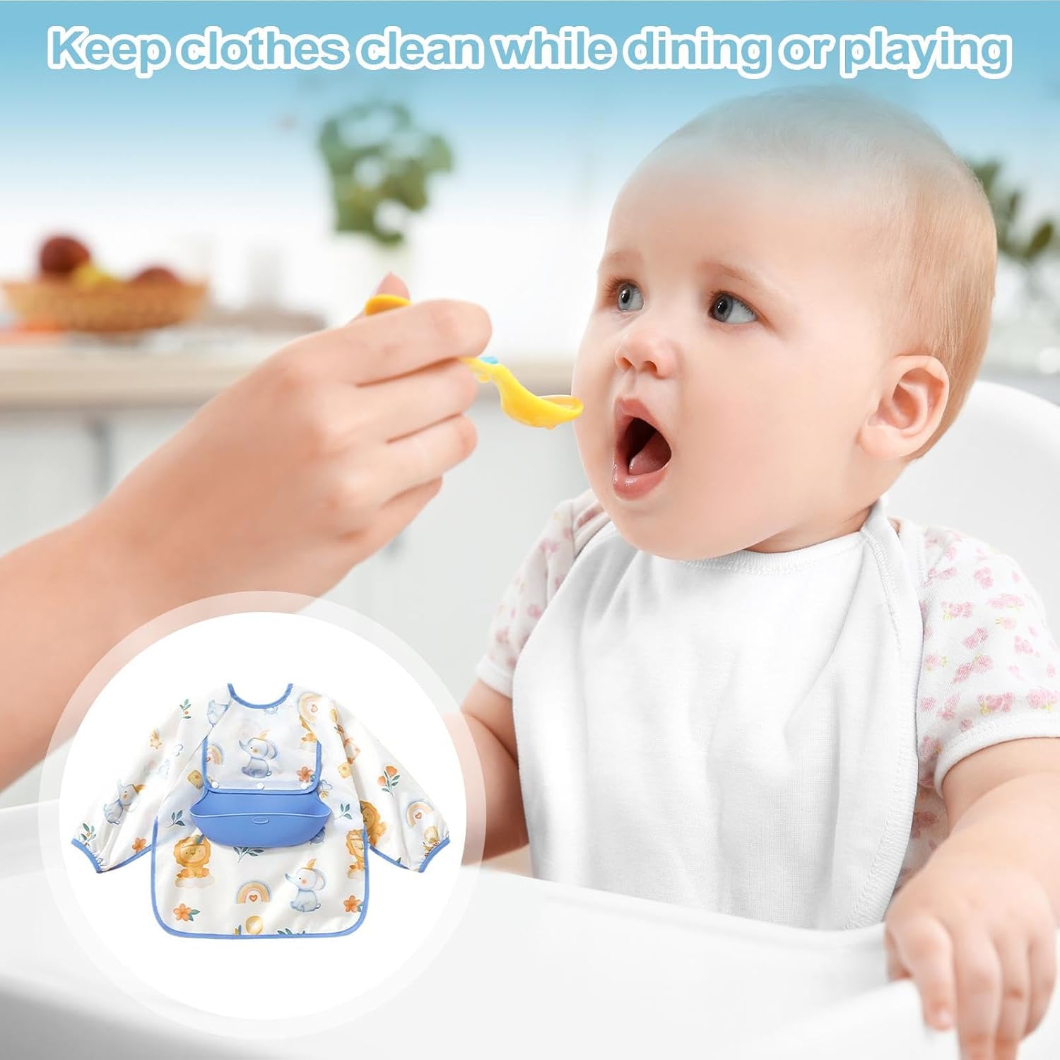 Grembiule a maniche lunghe riutilizzabile e indossabile offre copertura integrale per salvaguardare i vestiti durante la poppata, la dentizione o attività disordinate come pittura e alimentazione; scelta affidabile per pasti, divertimento all'aperto, asilo nido, viaggi e visite al ristorante, assicurando praticità ai genitori. Specifiche del prodotto: Nome prodotto: bavaglino a maniche lunghe Peso netto del prodotto: circa 94 g Materiale del prodotto: fibra di poliestere + EVA Dimensione del prodotto: come mostrato nella foto Lista imballaggio: 1 x petto di lunga Nota: A causa e diverse impostazioni di illuminazione e schermo, il colore 'oggetto può essere leggermente diverso dall'immagine. A causa e diverse misurazioni manuali, consentire una differenza di 1-2 cm di dimensioni.