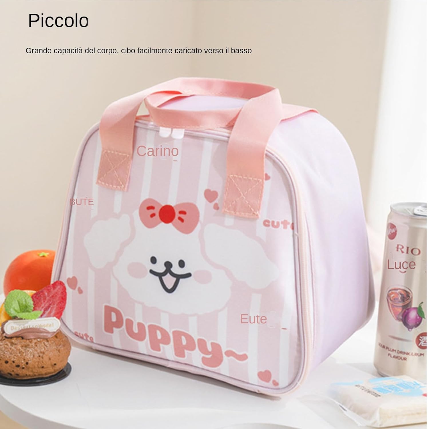 Per Pasto Caldo o Bevanda Fredda: Grazie alla tecnologia di conservazione del calore, questo contenitore per pranzo mantiene il sapore del cibo fresco e invitante per un periodo di prolungato. Ideale per trasportare pasti caldi o bevande fredde, assicura che gli alimenti conservino il loro gusto naturale e piacevole, offrendo un'esperienza di consumo soddisfacente in diverse situazioni quotidiane. Ampie Possibilità di Impiego: Grazie alla sua funzionalità, questo contenitore per pranzo può essere utilizzato in varie attività tra cui campeggio, picnic, lavoro e viaggi, assicurando che i i alimenti siano sempre mantenuti in condizioni ottimali e ben organizzati per tutto il giorno. Questo prodotto è progettato per offrire massima comodità e efficienza nella conservazione del cibo, rendendolo un compagno indispensabile per la tua routine quotidiana in diversi contesti. Leggero e Portatile: Questo portapranzo ha un manico spesso che assicura una presa comoda, ed è facile da trasportare, rendendo semplice portare il cibo ovunque tu vada. Inoltre, il suo design leggero lo rende particolarmente pratico e maneggevole, ideale per chi apprezza la leggerezza senza sacrificare la funzionalità. La combinazione di peso ridotto e portabilità garantisce un trasporto agevole e confortevole, per uso quotidiano in vari ambienti, come scuola o libero. Regalo Meraviglioso e Piacevole: Questa borsa pranzo è meravigliosa da presentare ad amici e familiari poiché ha un design a cartoni animati divertente e colori vivaci che rendono il mangiare un piacere ogni giorno. Il suo aspetto allegro e i toni accesi trasformano ogni pasto in un momento di gioia e soddisfazione, ideale per aggiungere un tocco di leggerezza alla routine. La borsa pranzo con colori vivaci e design cartoon rende ogni esperienza culinaria piacevole. Costruzione e Resistente: La borsa unisce tessuto Oxford resistente, cuciture rinforzate e una finitura impermeabile, progettata per sopportare ambienti outdoor difficili e mantenere la sua integrità attraverso l'uso frequente. I materiali di alta qualità e la manifattura accurata assicurano che ogni componente a pioggia, e sollecitazioni meccaniche, offrendo protezione duratura per esigenze quotidiane o avventure. Questo design robusto previene e deformazioni, promuov