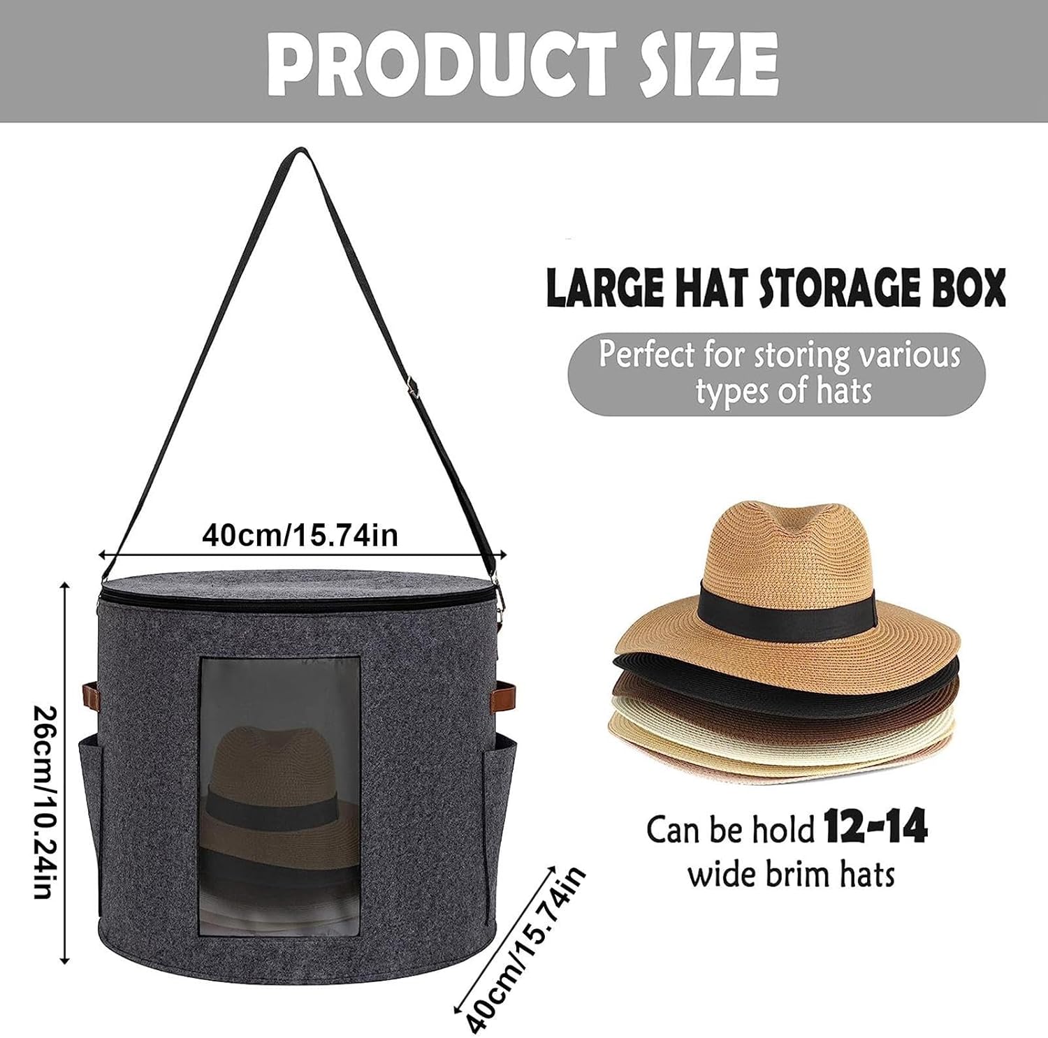 Design per risparmiare spazio: la nostra scatola di stoccaggio dei cappelli ti consente di memorizzare fino a 20 cappelli di qualsiasi forma o dimensione senza schiacciarli o distorcere, grazie alla sua capacità di carico fino a 20 kg. Con il suo design per risparmiare spazio, puoi liberare lo spazio 'armadio. Design di visualizzazione: il design di visualizzazione fornisce una chiara visione dei cappelli. E la finestra in PVC resistente e resistente alla polvere mantiene i cappelli organizzati e accessibili. Materiale robusto: costruito con materiale in feltro spesso e resistente all'usura, questa scatola di conservazione del cappello è progettata per proteggere i cappelli da polvere e macchie. Il suo materiale di alta qualità garantisce la durata, in modo da poter godere di un uso duraturo. Archiviazione multifunzionale: questa scatola di stoccaggio dei cappelli può archiviare non solo cappelli, ma anche saltatori, coperte, giocattoli per bambini e altro ancora. Sia che tu debba organizzare i da baseball, i cappelli da sole o altri oggetti, questa scatola può aiutarti a mantenerli ordinati e ordinati. Convenienza adatto ai viaggi: la scatola di stoccaggio dei cappelli è dotata di una staccabile e una maniglia in pelle rinforzata, rendendo facile prendere i cappelli ovunque tu vada. Dal viaggiare a casa, il design portatile è ottimo per tutte le occasioni.