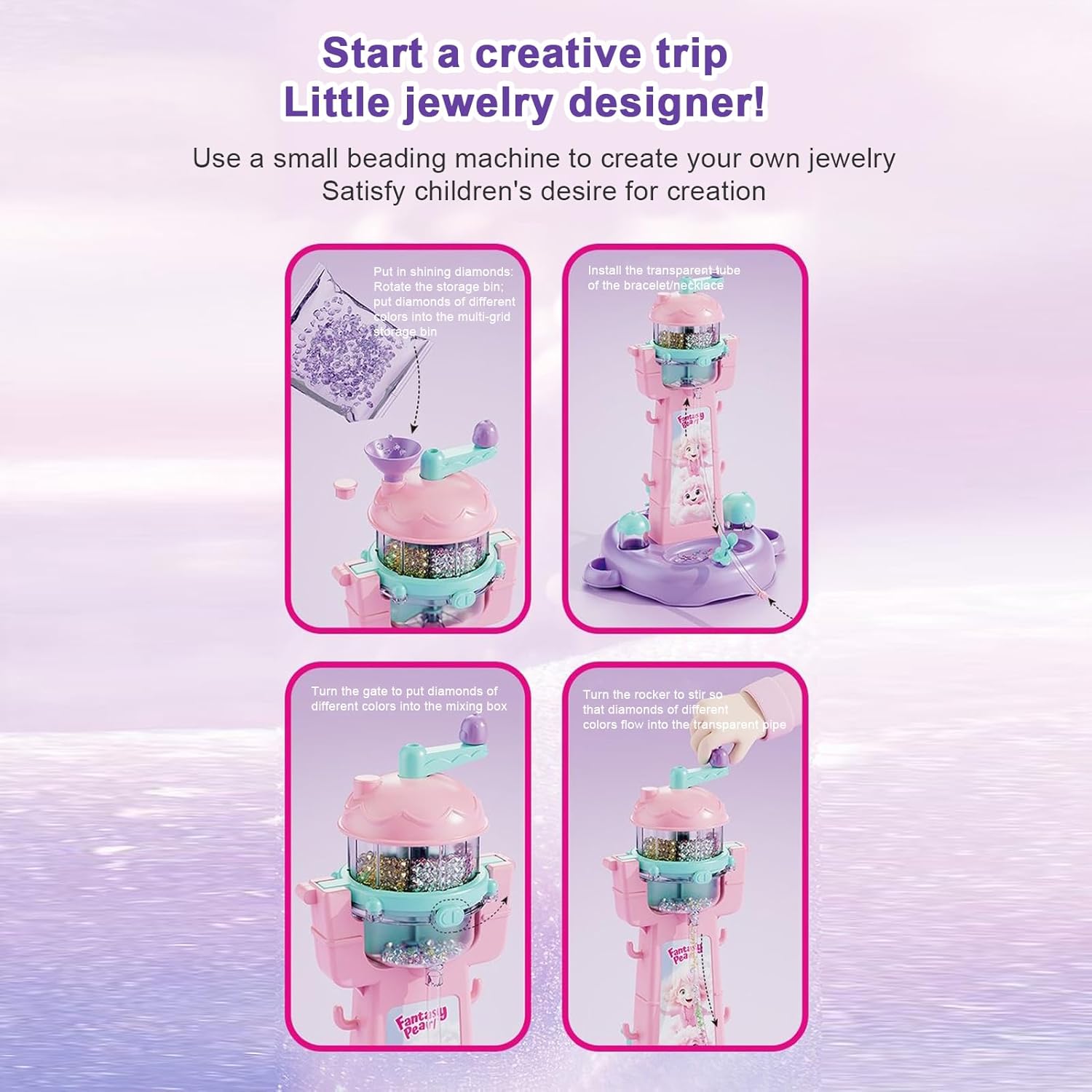 Creative D IY Fun: This beading machine kit lets kids design and make their own bracelets, encouraging artistic expression, creativity, and focus through hands-on activity, perfect for crafting with friends or solo play Jewelry Storage Included: Comes with multiple storage bottles, compartments, and racks that keep all beads, pendants, and tubes neatly organized—making cleanup easy and helping kids learn tidiness while creating Safe and Colorful: Made of smooth ABS material with no sharpedges, this toy is designed with safety in mind for children 3 years and up, featuring vibrant beads and pieces that capture attention and inspire imagination Perfect Gift Idea: Whether it’s for a birthday, holiday, or party favor, this kit is a thoughtful and entertaining gift that supports fine motor development and imaginative crafting for girls, toddler, or young teens Complete Craft Kit: Includes 30+ accessories like tubes, pendants, bottles, caps, and funnels—all the essentiials for children to enjoy jewelry-making at home, in classrooms, or during family creative activity sessiions
