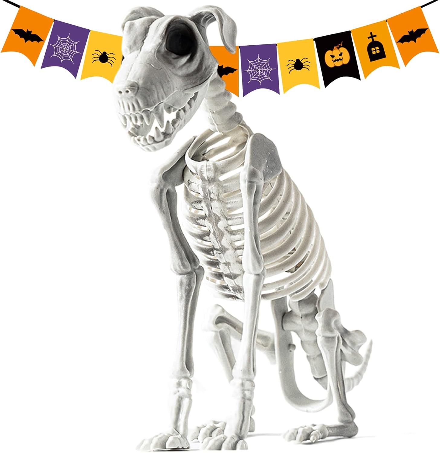 Materiale di alta qualità: questo cane scheletro realizzato in materiale PP riutilizzabile di alta qualità è sicuro e robusto per garantire che non sia facile da danneggiare ed è perfetto per più Halloween. Design elegante: questa decorazione di cane scheletro di Halloween è il compagno ideale per creare un'atmosfera spaventosa nel tuo cortile. Il design creativo e realistico aggiunge un tocco spaventoso alla tua decorazione di Halloween. Finitura meticolosa: ideale per decorazioni a tema horror, questo cane scheletro ha una lavorazione squisita con dettagli ricchi, evidenziando un processo di scultura dettagliato. Molti usi: crea un'atmosfera rilassante all'interno o all'esterno decorando la tua casa, la tua riunione o la casa stregata con le nostre decorazioni di Halloween con scheletro di cane. Regalo perfetto: questo regalo pratico e alla moda per la famiglia e gli amici è ideale per compleanni e festività, aggiungendo un tocco spaventoso ma affascinante a qualsiasi celebrazione