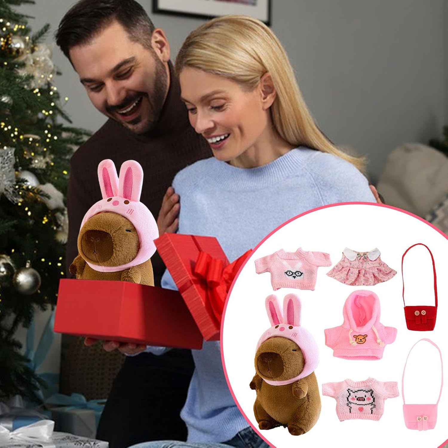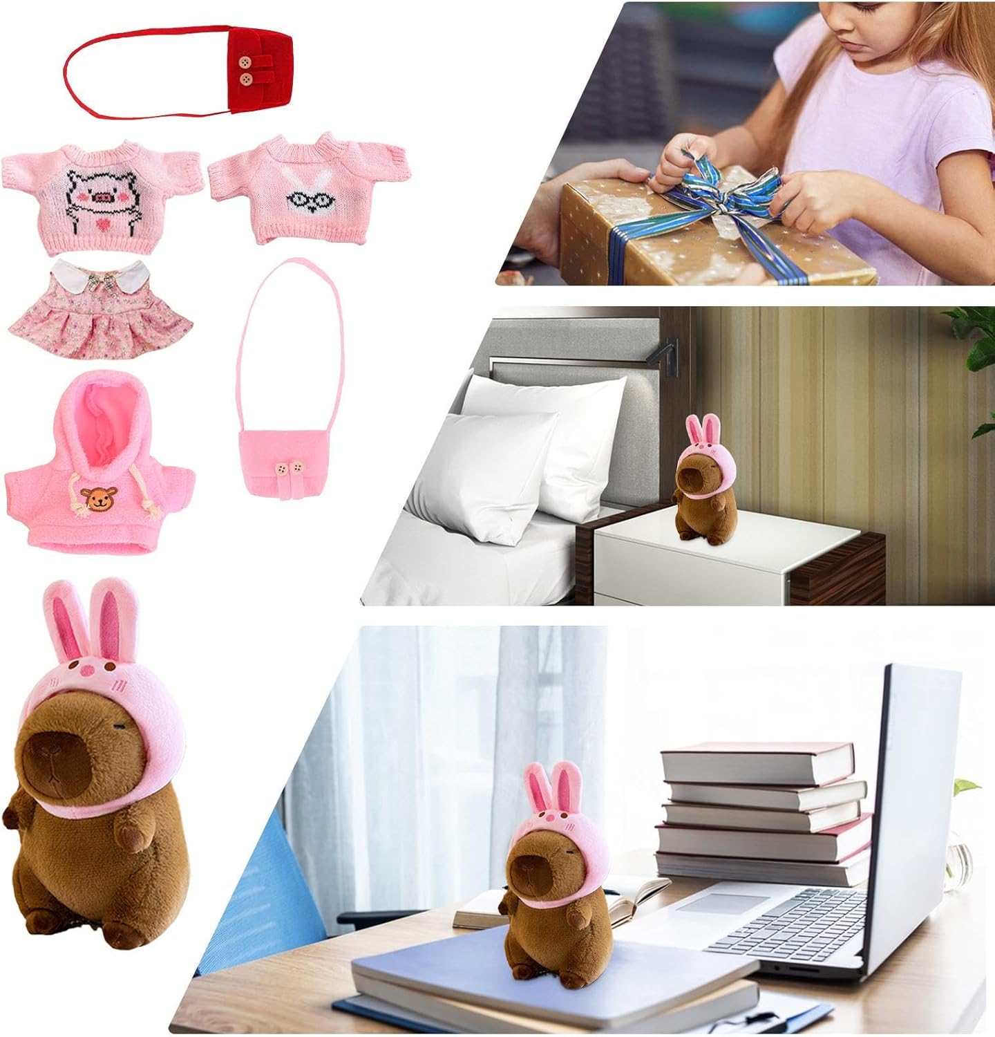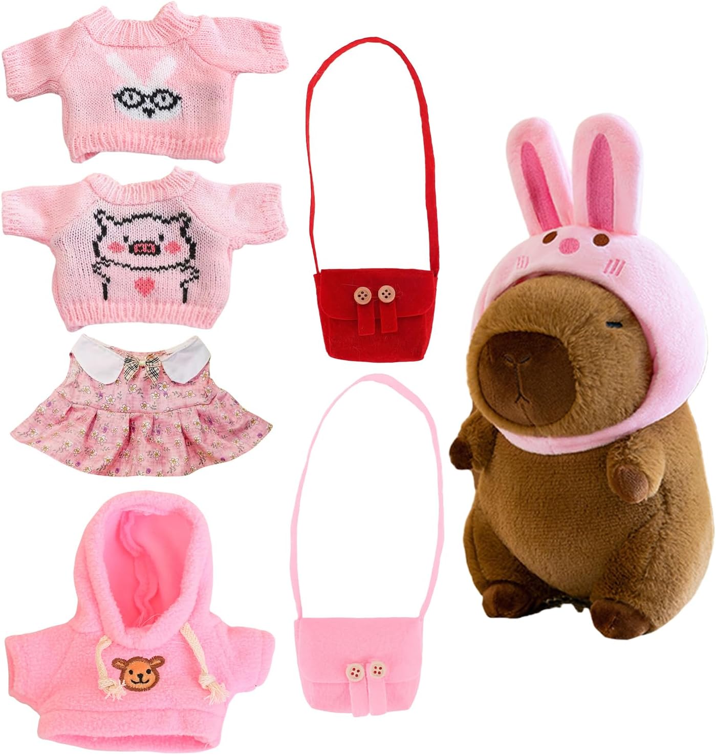 Infinite possibilità di gioco: presentando un peluche versatile e accattivante, questo set Capybara è per ragazzi e ragazze di tutte le età. Con 1 bambola Capibara, 1 cappello, 4 maglioni e 2 borse Resistenza per le : il peluche capibara è realizzato a mano con materiale elastico di qualità e tessuto peluche che non è facile da deformare. La sua sensazione morbida e confortevole, combinata con una buona elasticità, crea un duraturo compagno di che ti delizierà a lungo Upgrade della camera divertente e accogliente: si adatta perfettamente alla tua stanza, la fa sentire più calda, viene utilizzata come affascinante decorazione per mobili e aggiunge un tocco divertente e accogliente con un costume da coniglio decorativo Ambito di applicazione: adorabile peluche Capybara per ogni occasione: un compleanno, una vacanza o semplicemente per portare un sorriso sul volto di un bambino. Posizionalo sullo scaffale della tua collezione o usalo per giocare, coccolarti e coccolarti Buona selezione di regali: lascia che la amata senta il tuo affetto con questo tenero peluche Capybara, un regalo per ogni occasione, che incarna calore e sentimentalismo per fan, amici, famiglia e amanti