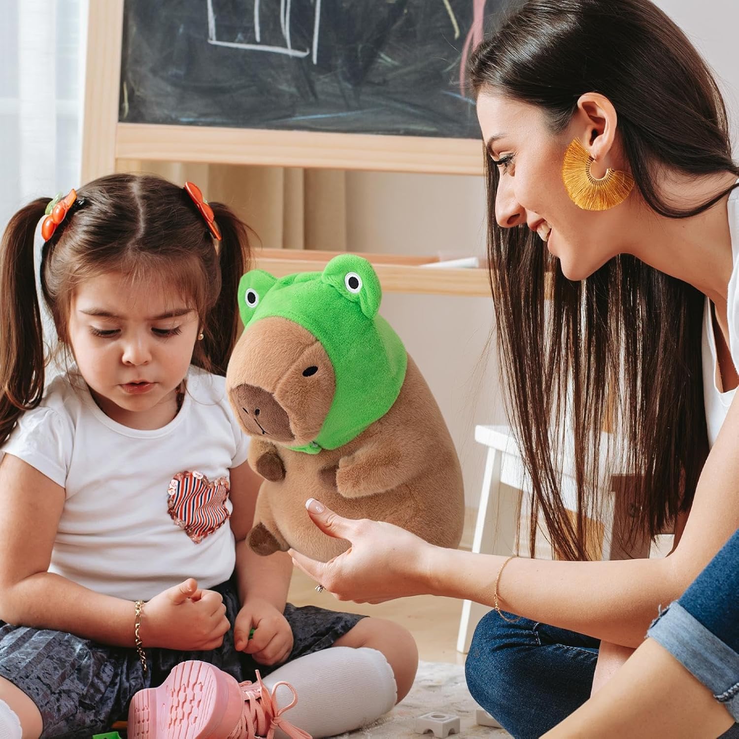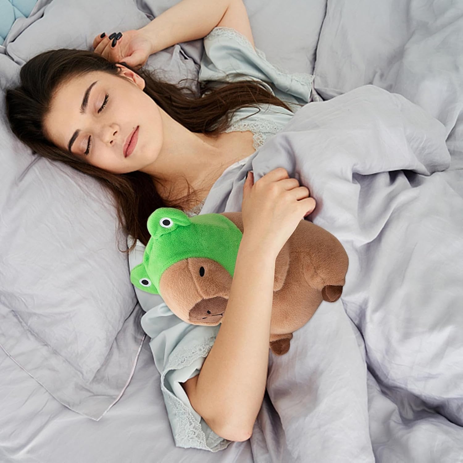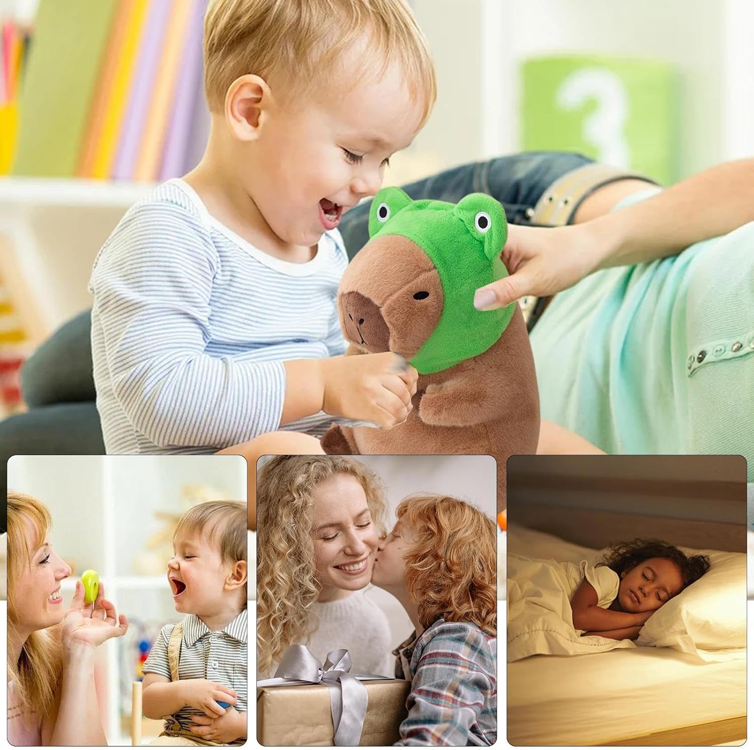 Cappello da rana unico come highlight: questo peluche capibara colpisce per il suo design unico del cappello da rana, che sottolinea il carattere giocoso del giocattolo e gli conferisce un fascino speciale. Serve come incantevole attrazione per tutti gli appassionati di peluche e ispira momenti felici, sia che venga giocato quotidianamente o esposto come elemento decorativo nei salotti. Il design amorevole con il cappello a rana lo rende un must per tutte le età. Progettato per attrarre sia i bambini che gli adulti, questo peluche capibara offre una presenza confortante e ispirazione per la creatività durante il gioco o come elemento decorativo. Si integra perfettamente in diversi stili di vita promuovendo al tempo stesso la gioia e le connessioni interpersonali, rendendolo un'aggiunta versatile per tutti i giorni. Grande morbidezza: il peluche Capybara è realizzato in cotone PP altamente elastico e tessuto peluche ultra morbido, garantendo che mantenga la sua forma nel tempo. Questo lo rende un compagno a lungo termine quando si gioca o ci si rilassa a casa. L'imbottitura morbida ma resistente garantisce un comfort duraturo e lo rende un partner perfetto per le coccole e il gioco quotidiano. Molteplici usi in dettaglio: Realizzato in materiale ultra morbido e visivamente accattivante, questo peluche Capybara funge da compagno di coccole ottimale per rilassarsi come leggere o fare un pisolino e migliora gli spazi abitativi come divani, automobili o camere da letto con il suo fascino versatile. Unisce morbidezza ed estetica per il relax quotidiano, si adatta a qualsiasi ambiente e promuove un senso di benessere attraverso la sua presenza decorativa e confortevole in varie situazioni di vita. Regalo premuroso per tutti: il peluche Capybara è un regalo eccellente per compleanni, vacanze o regali spontanei e delizierà i destinatari di tutte le età. Si trasforma in un ricordo prezioso che riflette sempre la cura e l'affetto di chi lo regala e diventa un tesoro personale per ogni occasione.