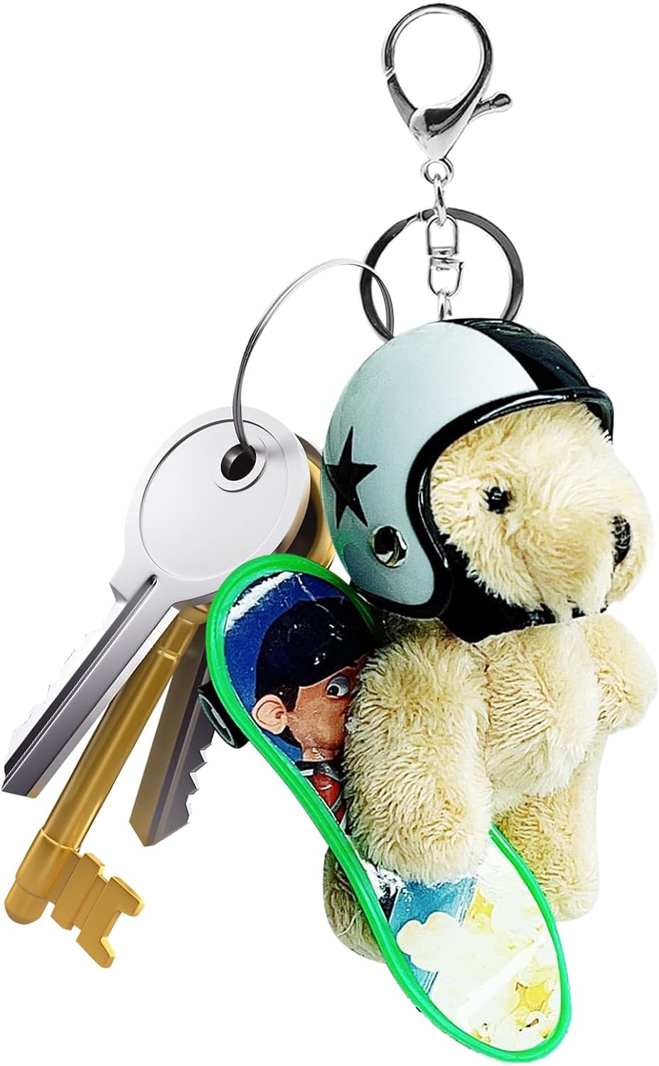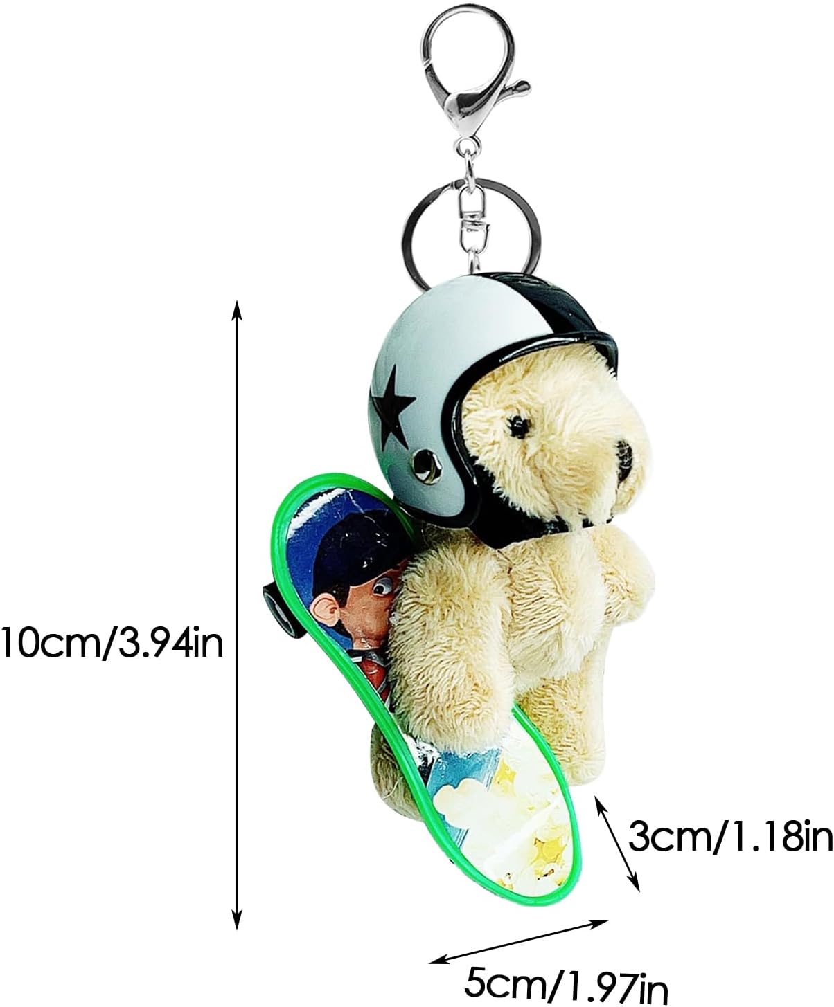 Caratterizzato da una finitura morbida, questo portachiavi animale svolge il doppio ruolo di accessorio per chiavi e ciondolo decorativo. Attaccalo al tuo zaino scolastico, borsa, zaino da escursionismo o portafoglio per aggiungere fascino. Preferito dalle donne, migliora sia l'organizzazione domestica che la comodità in viaggio grazie alla sua funzionalità raffinata. Specifica: Materiale di riempimento: cotone PP Materiale del casco: ABS Materiale del portachiavi: lega Materiale di skateboard: ABS Peso di skateboard: 6G Dimensione del prodotto: circa 10x5x3cm/3.94x1.97x1.18 pollici Peso del prodotto: 23G Lista imballaggio: Porta portachiavi*1 pezzo Nota: A causa e diverse impostazioni di illuminazione e schermo, il colore 'oggetto può essere leggermente diverso dall'immagine. A causa e diverse misurazioni manuali, consentire una differenza di 1-2 cm di dimensioni.
