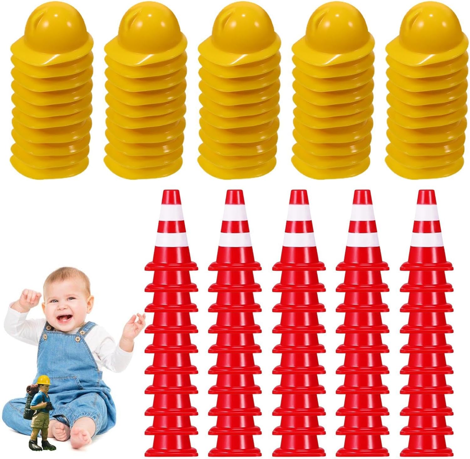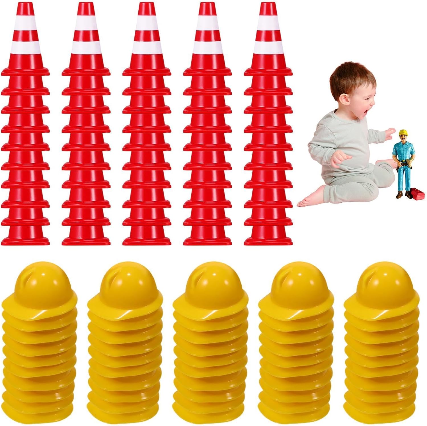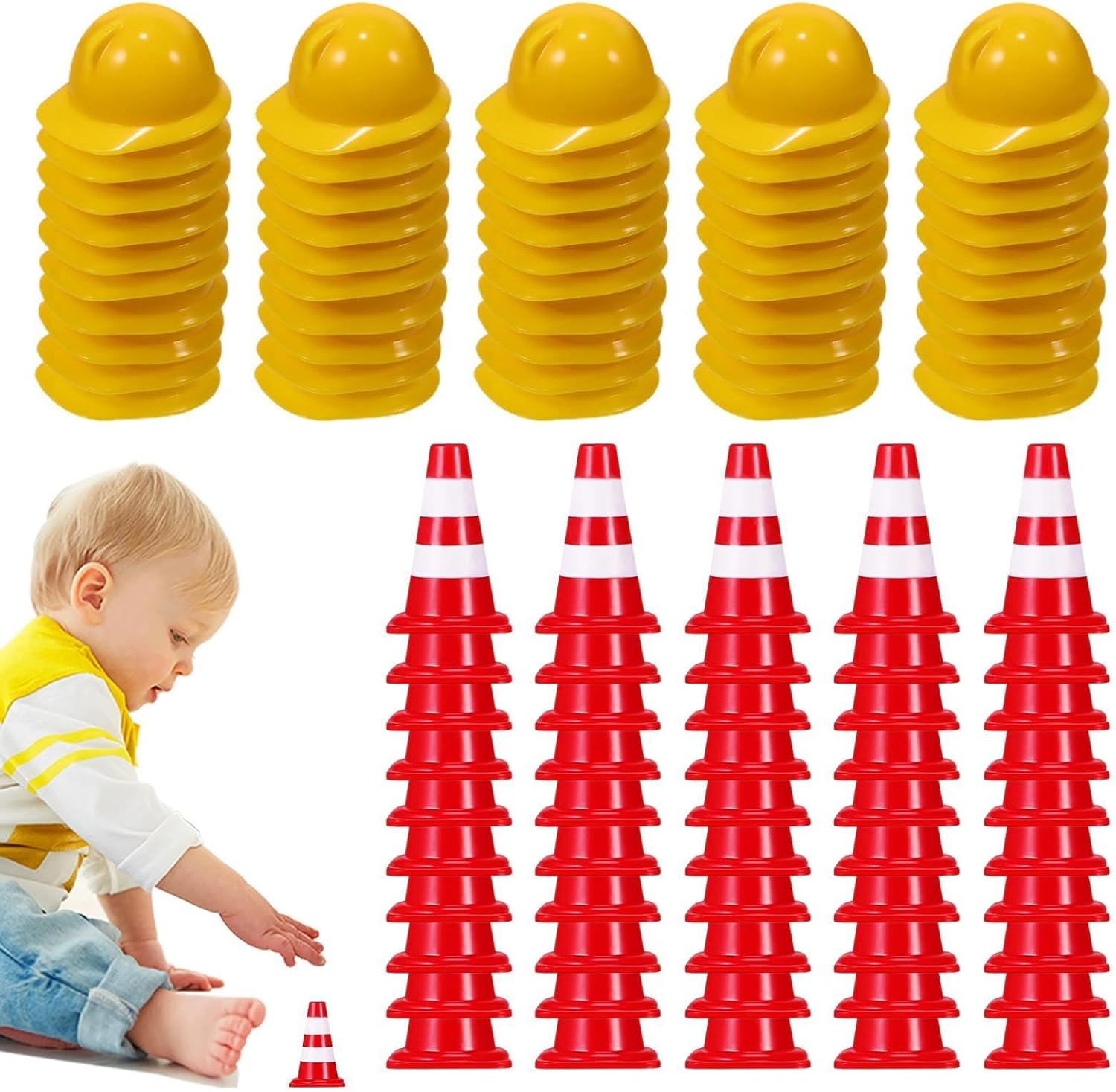 Qualità robusta: realizzati con pregevole fattura e materiale ABS, questi coni sono sicuri ed ecologici, non facili da deformare e danneggiare, lucidati, lisci e senza sbavature Ampia gamma di usi: dai entusiasmo alle decorazioni e ai giochi con i nostri coni stradali in miniatura. Usali per insegnare ai bambini la sizza e la conoscenza del traffico in modo accattivante. Questi coni sono perfetti per molteplici funzioni Non occupa spazio: con una dimensione compatta di 2,5 x 1,5 cm, i nostri coni stradali in miniatura sono incredibilmente leggeri e facili da trasportare. Non occupano spazio, il che li rende ideali per essere riposti in spazi ristretti o all'aperto Pacchetto completo: con 100 coni stradali in miniatura, 50 elmetti di protezione e 50 segnali stradali, questo set ha una quantità sufficiente per ogni occasione e può soddisfare le esigenze degli asili o dei centri educativi della prima infanzia Regalo prezioso: questi coni stradali in miniatura sono un regalo pratico e premuroso, perfetto per i regali di vacanza da regalare a e amici, inviando e benedizioni