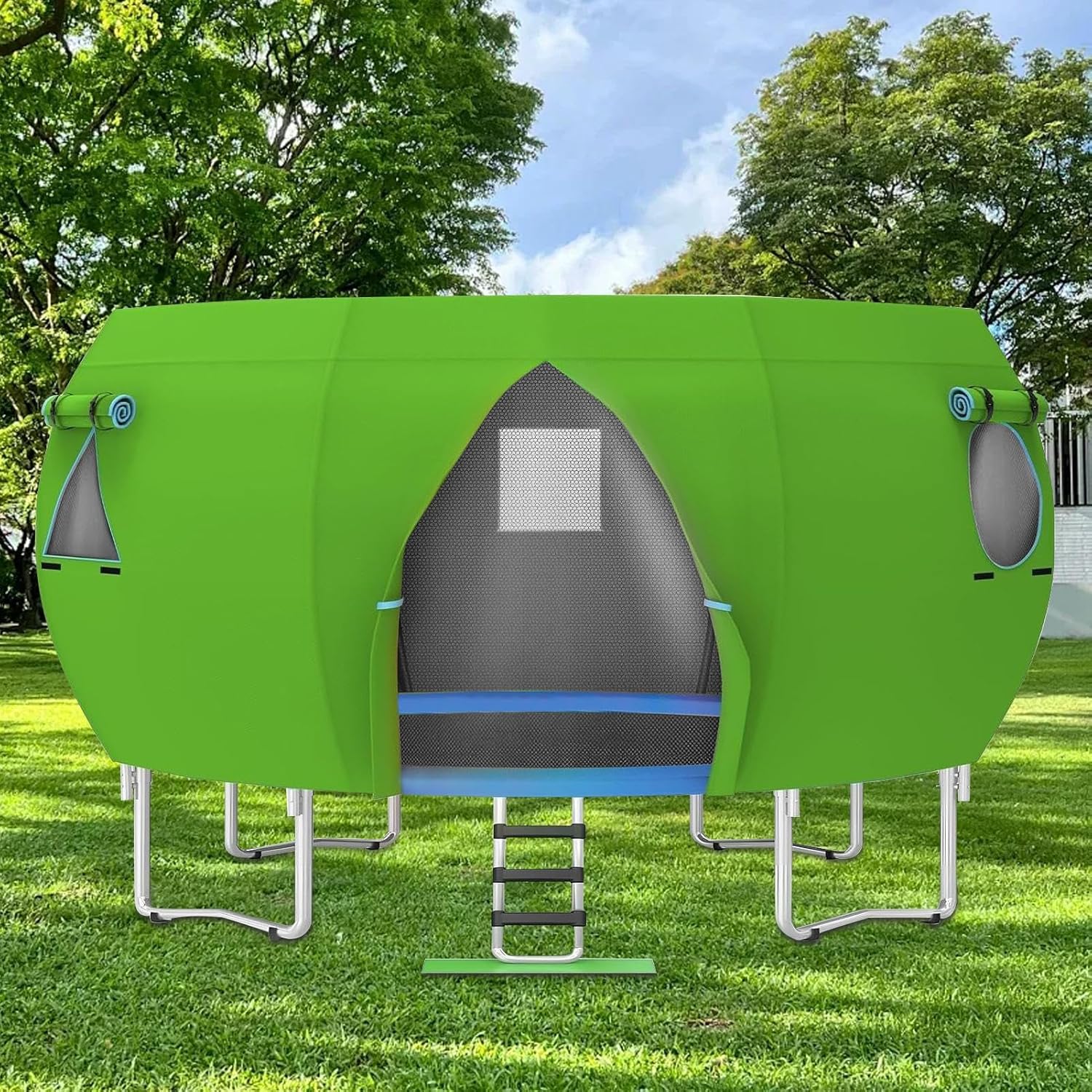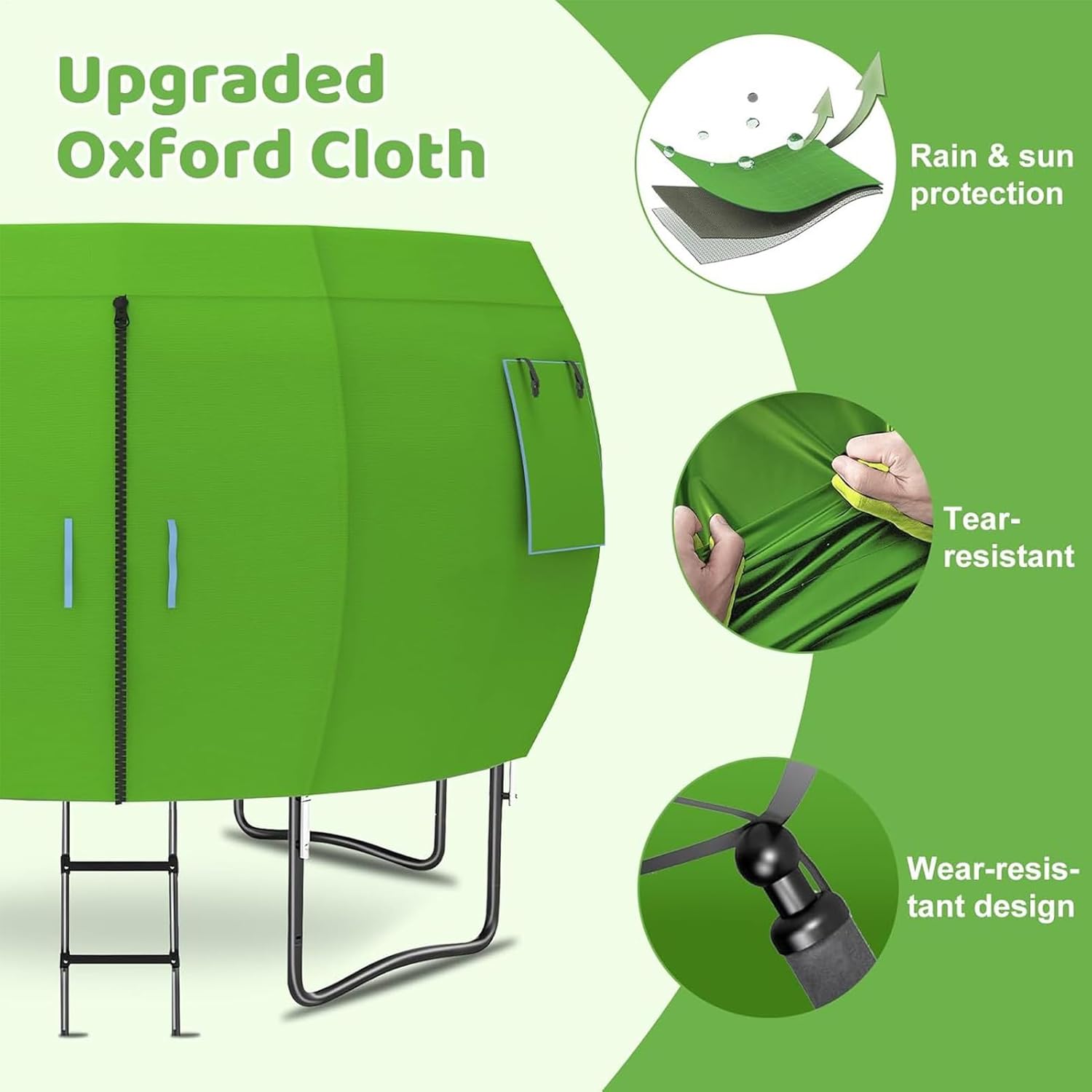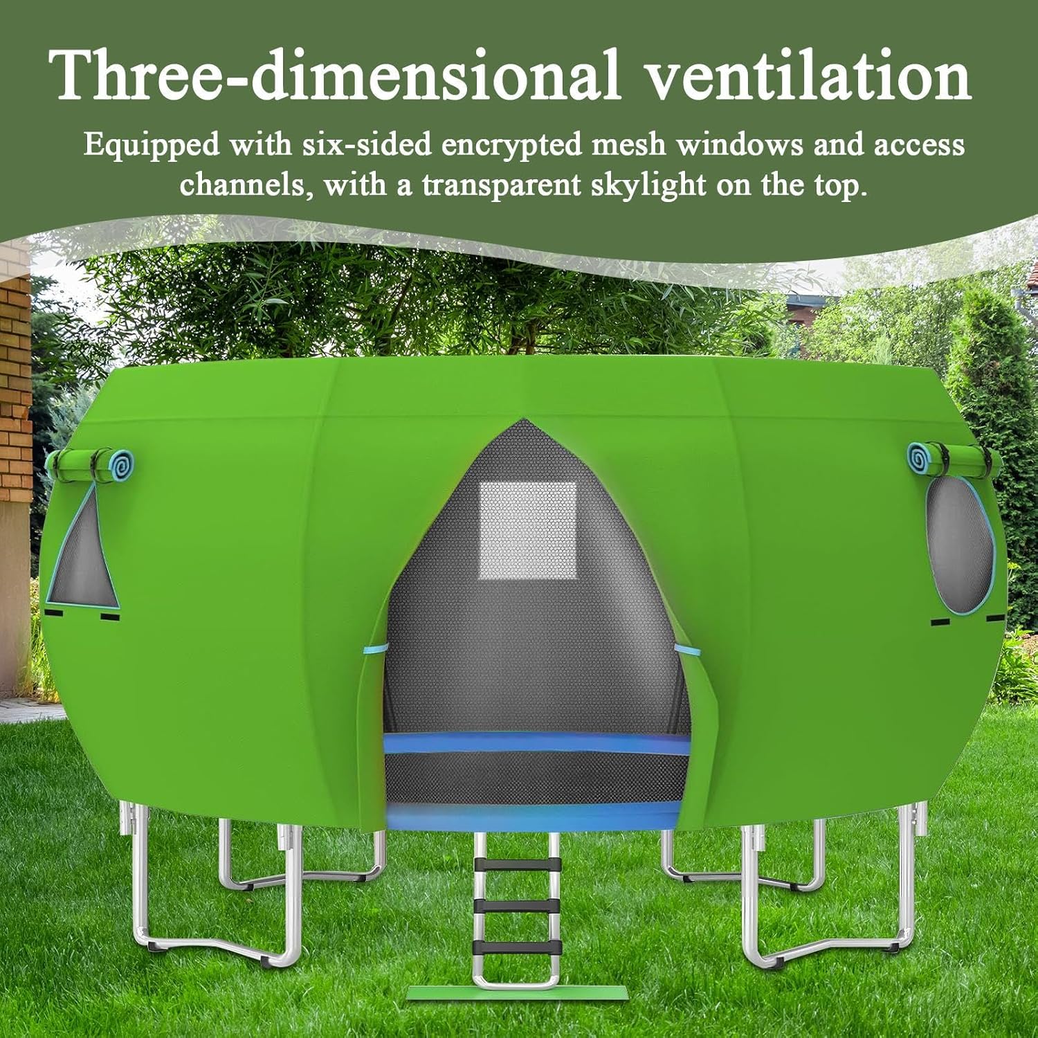 Materiale Robustissimo: Copertura ombreggiante per trampolino combina struttura del telaio rinforzato e tessuto resistente agli agenti atmosferici garantendo utilizzo prolungato nel e funzionalità affidabile Resistenza Climatica: Offre sicurezza esterna 365 giorni l'anno mediante barriera efficace contro esposizione ai raggi e infiltrazioni d'acqua per durata ottimizzata Prestazioni adattabili: Per trampolini tondi da 4,2 metri, il ad asta curvata garantisce affidabilità e versatilità per soddisfare diverse esigenze di ombreggiatura esterna Apertura Rapida: Si distende in modo uniforme sulla superficie del trampolino immediatamente, semplificando il montaggio ed eliminando completamente operazioni complesse. Soluzione Ventilazione Efficiente: Combinazione di finestra a maglie e copertura trasparente consente movimento d'aria costante preservando la visibilità facilmente