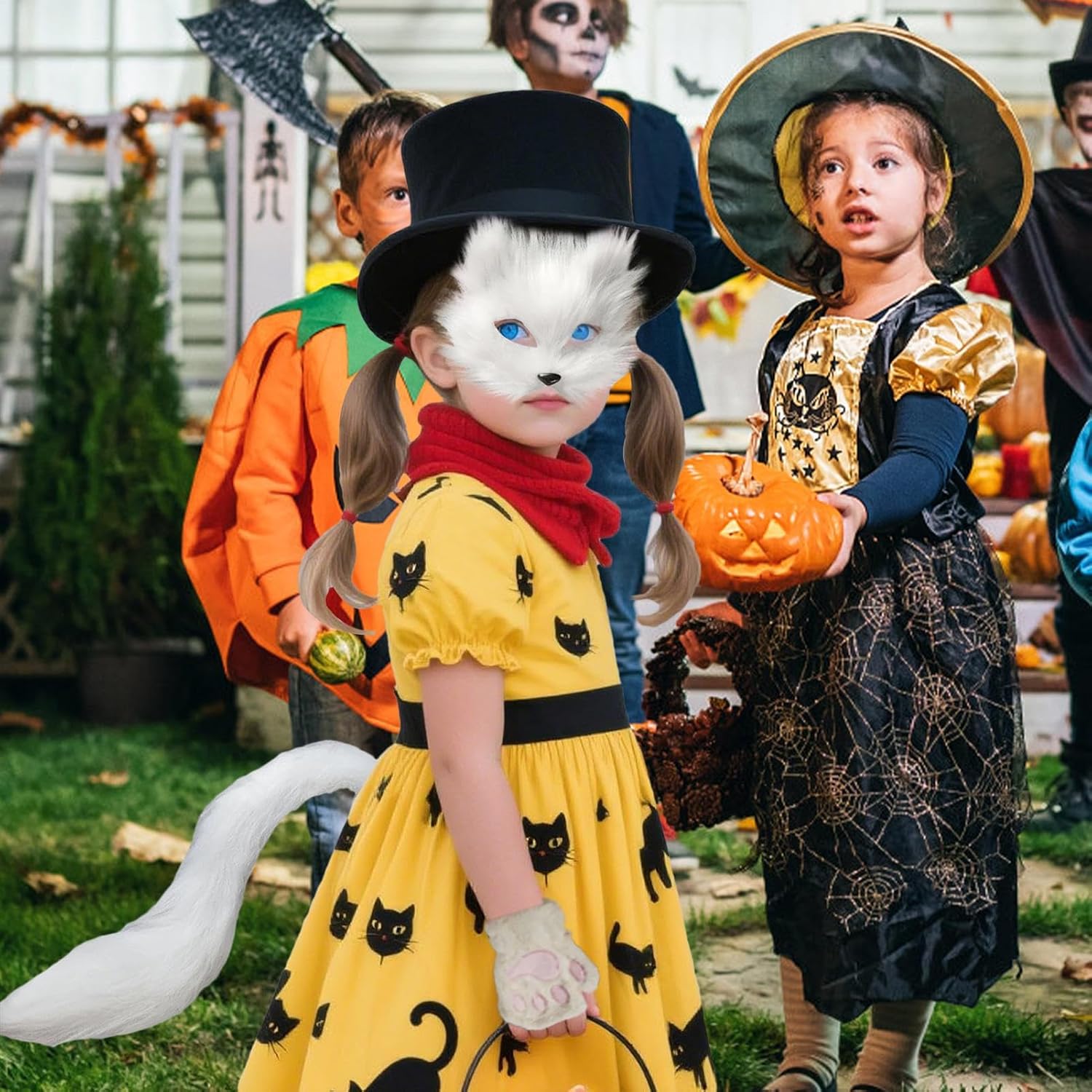 Generico Coprivolto Animale Halloween | Mezza Faccia Maschera Animali,Guanti Coda per Adulti Bambini Festa Carnevale Mascherata Travestimento