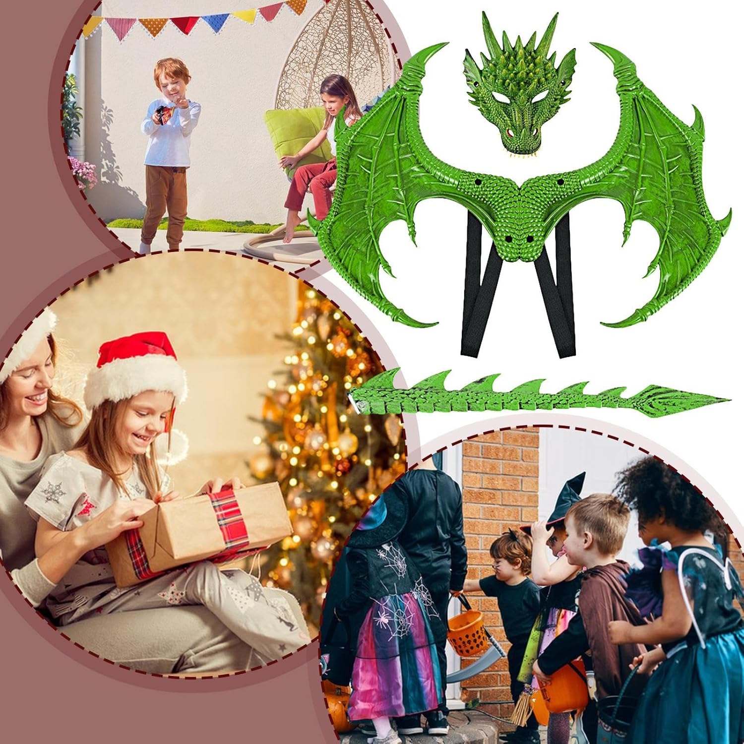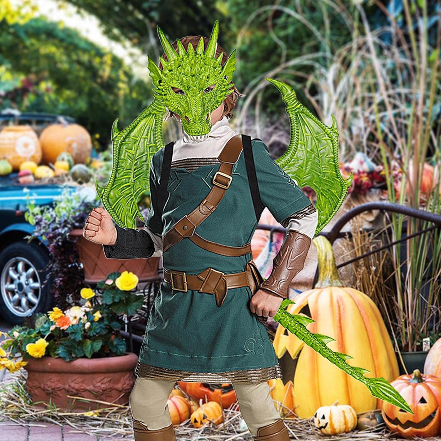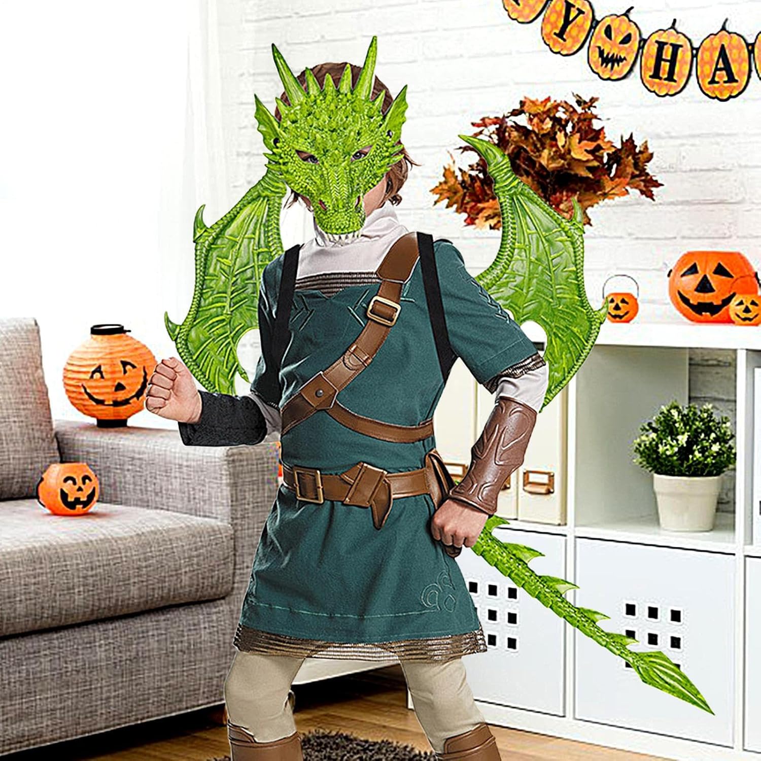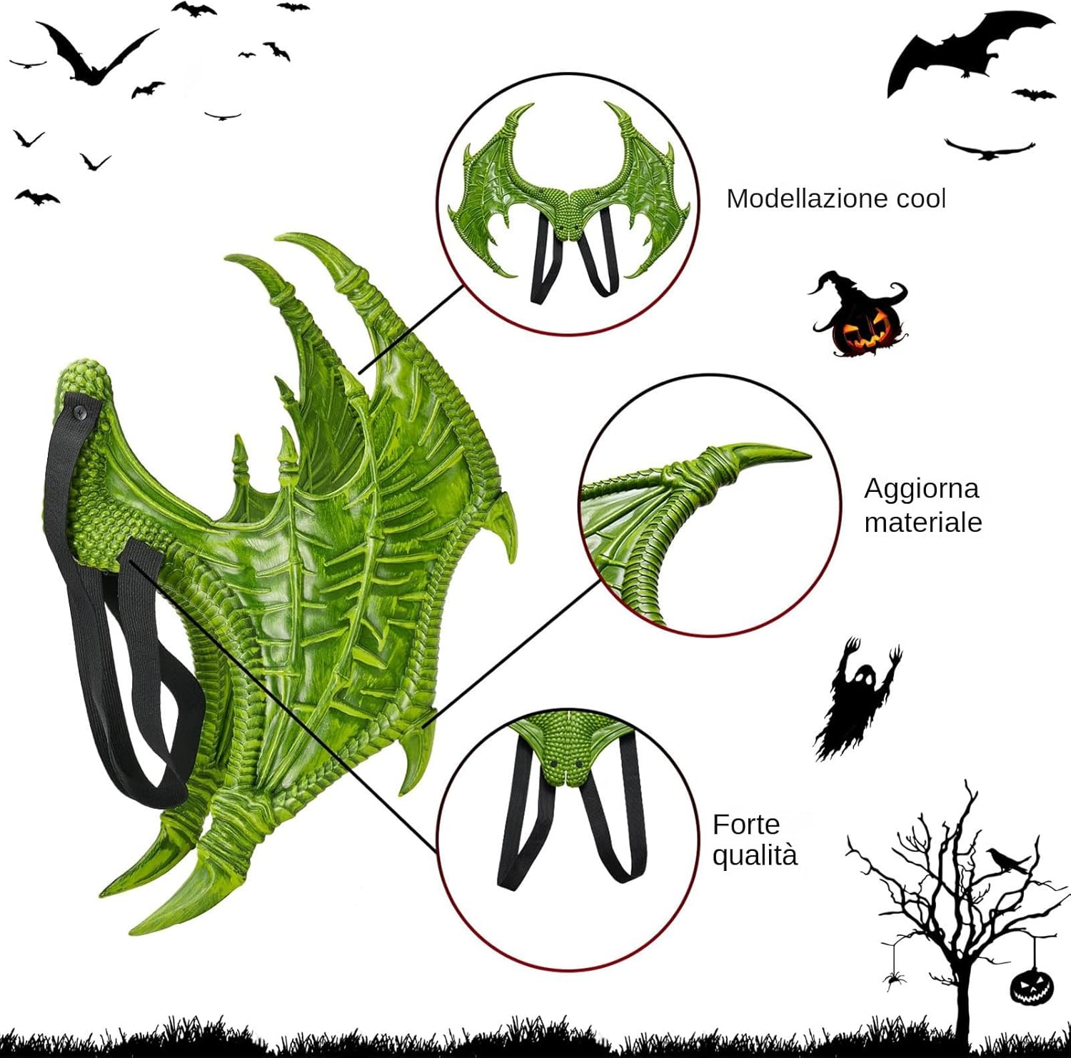 Descrizione prodotto Ben rezzato e adatto ai bambini dai 5 anni in su, è per feste a tema, giochi di ruolo, spettacoli teatre mascherate. Le del drago completano top, magliette e altri costumi festivi per un'esperienza di Halloween indimenticabile. Specifica: Nome: set cosplay del drago di Halloween Materiale del prodotto: schiuma RP Colore del prodotto: nero, blu, verde, rosso Taglia del prodotto: : circa 60x30 cm/23,62x11,81 pollici Copertura per il viso: circa 30x24 cm/11,81x9,45 pollici Coda: circa 60x8 cm/23,62x3,15 pollici Lista imballaggio: 1 ala del drago 1 copertura per il viso 1 coda Avviso di sicurezza Non applicabile