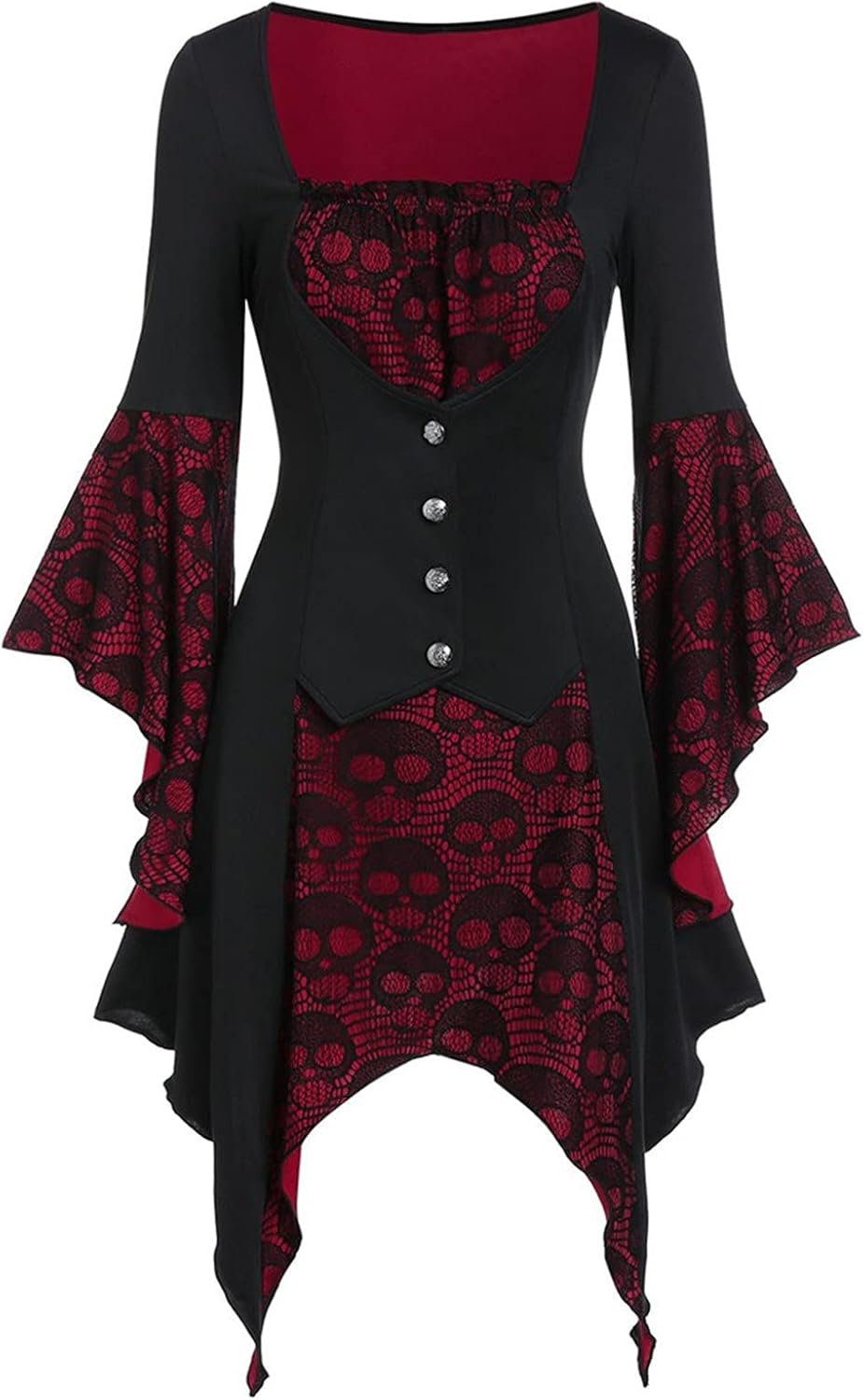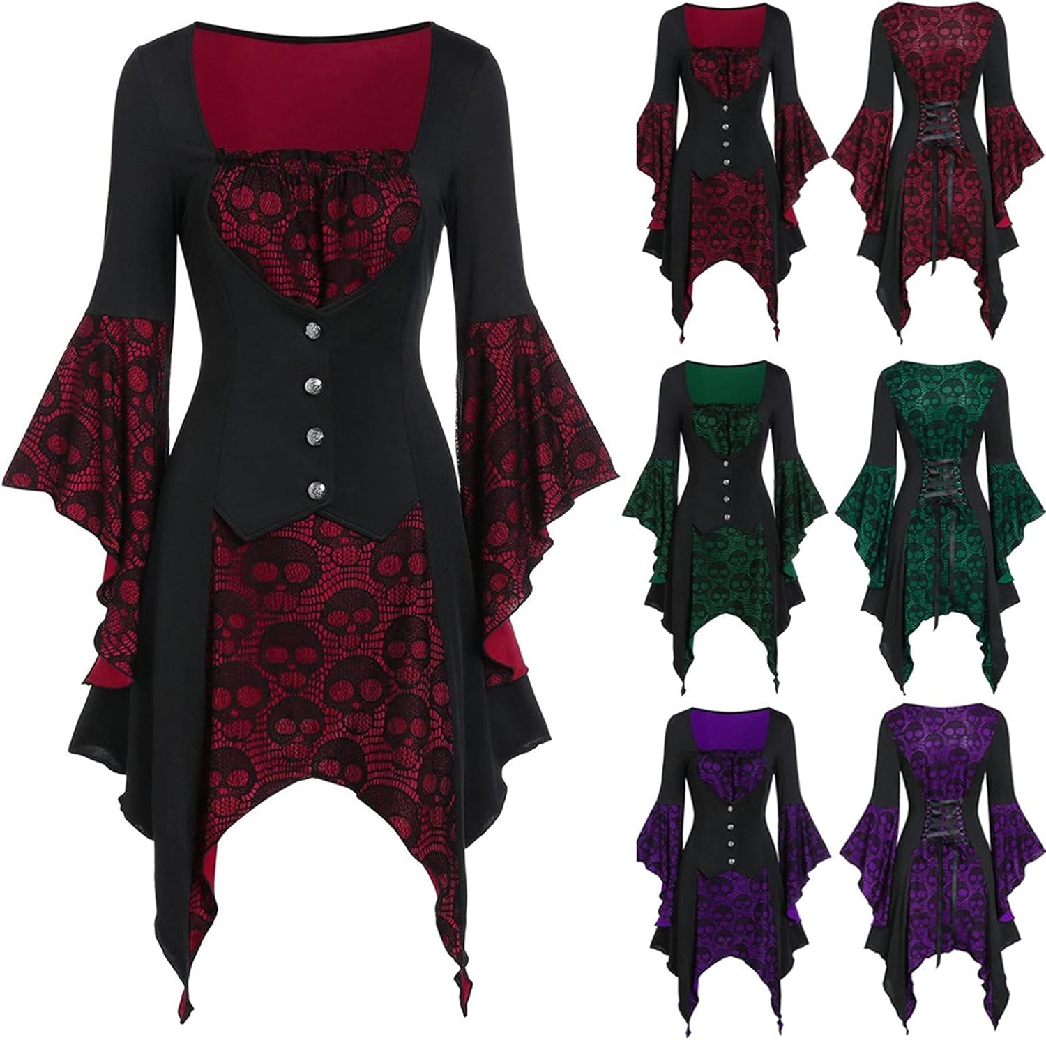 Costume Halloween Donna Costume Medievale Rinascimentale, Gotico Vittoriano Vestiti Da Cocktail, Maniche Lunghe in Pizzo Vestito, Costumi Cosplay per Halloween Carnevale Feste