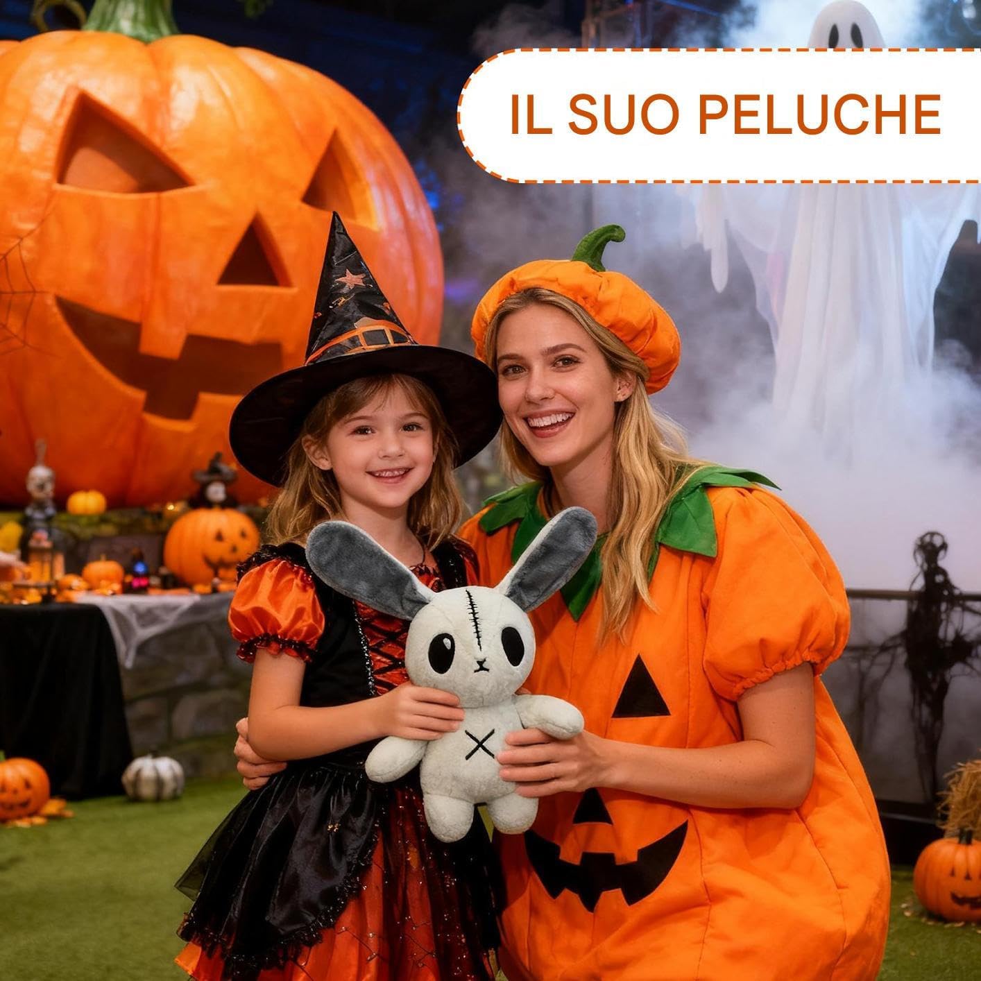 Atmosfera : Il peluche coniglio a tema Halloween è un accessorio decorativo per creare un'atmosfera immersiva in occasione di feste e eventi tematici. Si abbina splendidamente con decorazioni spettrali per esaltare lo spirito celebrativo durante le serate di Halloween o raduni a tema, aggiungendo un tocco magico alla tua casa. Adatto ad Occasioni Multiple: Caratterizzato da una tonalità grigio bianco, supporta l'estetica degli ambienti stratificati e si adatta a utilizzi ampiamente diversificati, assicurando una presenza elegante in spazi come librerie o ai letti contribuendo ad armoniosi design interior raffinati Scelta Affettuosa: Progettato per trasmettere emozioni e amicizia, il peluche coniglietto arricchisce l'interazione genitore figlio e aggiunge calore ad ogni ambiente, assicurando un regalo memorabile che promuove gioia e connessione nella vita quotidiana o in occasioni speciali come Halloween Morbidezza e Comfort: Realizzato con una superficie liscia resistente alla caduta dei e una texture gentile sulla pelle, questo coniglio peluche offre un comfort duraturo e un'esperienza di abbraccio soffice, per momenti di relax a casa o durante i viaggi Design Magico Accattivante: Con il suo tema da coniglio fatato e i dettagli del viso espressivi, questo peluche diventa un compagno interattivo che unisce fantasia e fascino infantile. La sua appeal speciale lo rende adatto per avventure creative, come peluche da collezione o giocattolo decorativo per spazi ludici