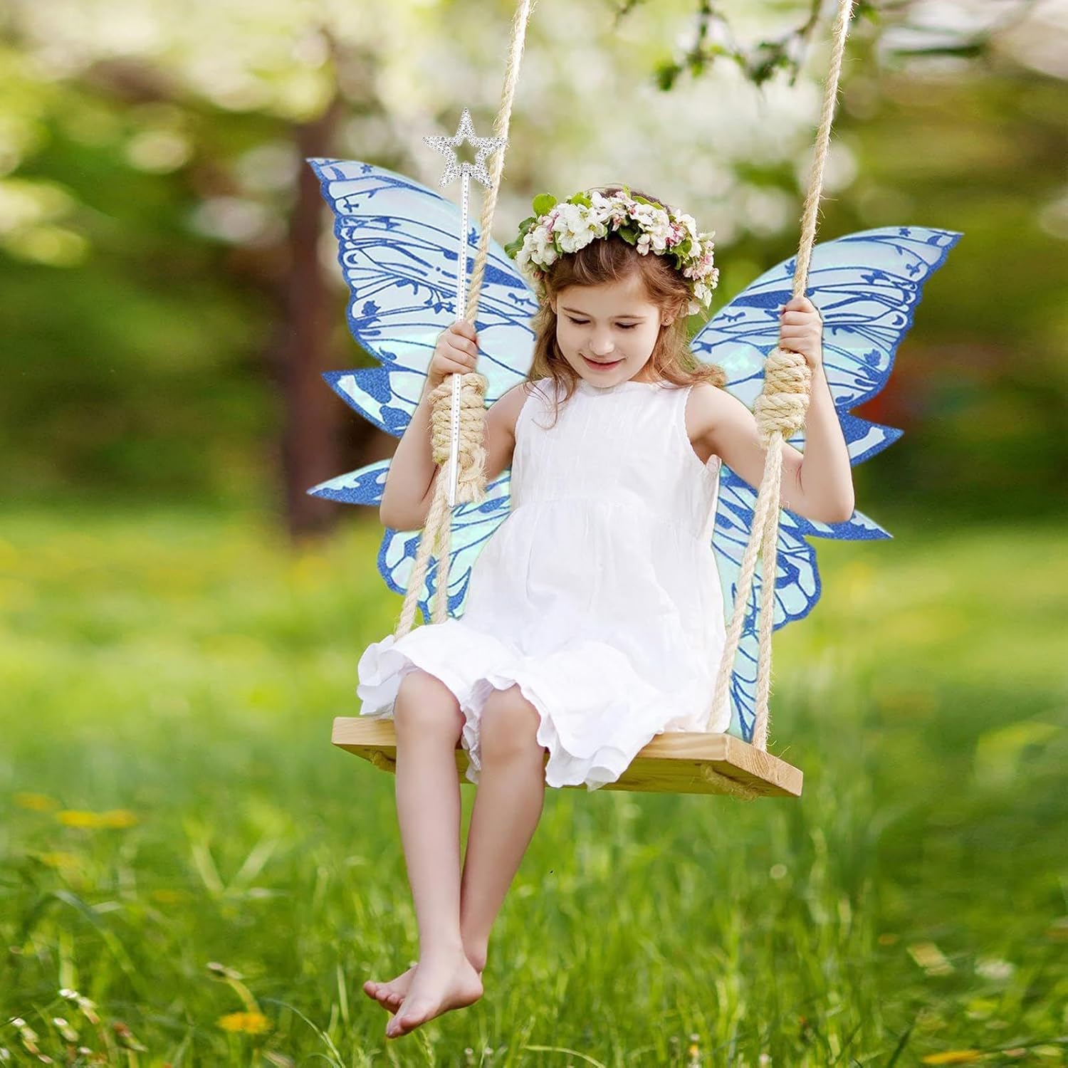 Generico Da Farfalla Per Bambine - Da Farfalla E Angelo Con Ghirlanda Fiorita Bacchetta E Orecchie | Accessori Costume Per Recitazione Ruoli Giochi Feste Compleanno