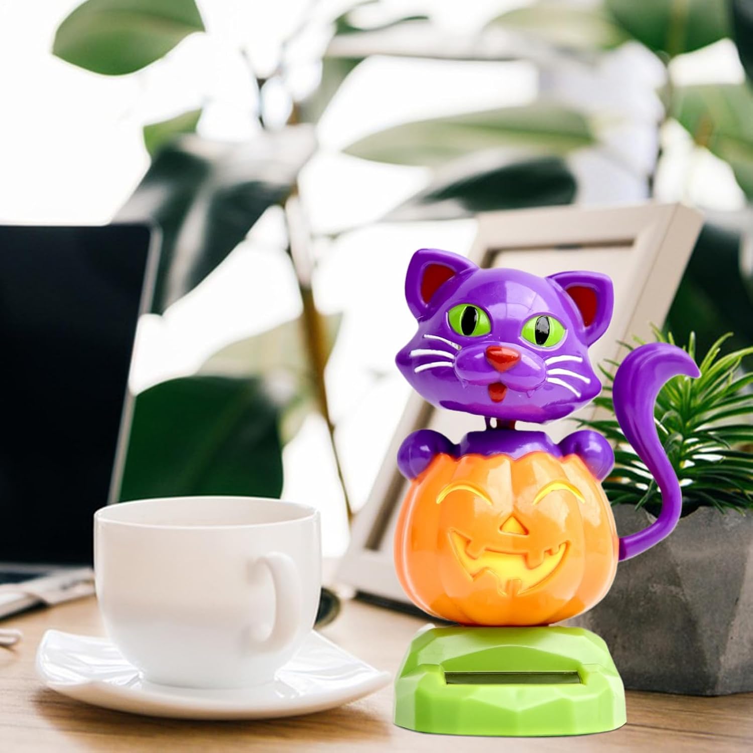 Giocattolo dinamico alimentato dalla luce: si muove automaticamente in base alla luce senza bisogno di batterie, alimentato da un sensore fotovoltaico integrato per offrire in modo efficiente un fascino visivo continuo Adattabilità alle superfici lisce: presenta una base piatta per superfici lisce per garantire un posizionamento sicuro e funzionalità evitando facili cadute durante il viaggio, migliorando la stabilità generale e l'esperienza dell'utente Ampio utilizzo: dai vita al tuo veicolo con questo speciale ballerino alimentato ad energia solare Cruscotti e scrivanie per auto, offrendo un'aggiunta giocosa ma elegante che illumina qualsiasi area con i suoi movimenti dinamici Funzionalità semplice: questi giocattoli sul cruscotto non richiedono assemblaggio o ottimizzazione e funzionano in modo autonomo luce per fornire una soluzione facile da usare che riduce significativamente i tempi di installazione Decorativo personale: con il suo affascinante tema di zucca e gatto e l'oscillazione fluida e dinamica, porta calore in ogni stanza integrandosi perfettamente con stili stagionali o personali