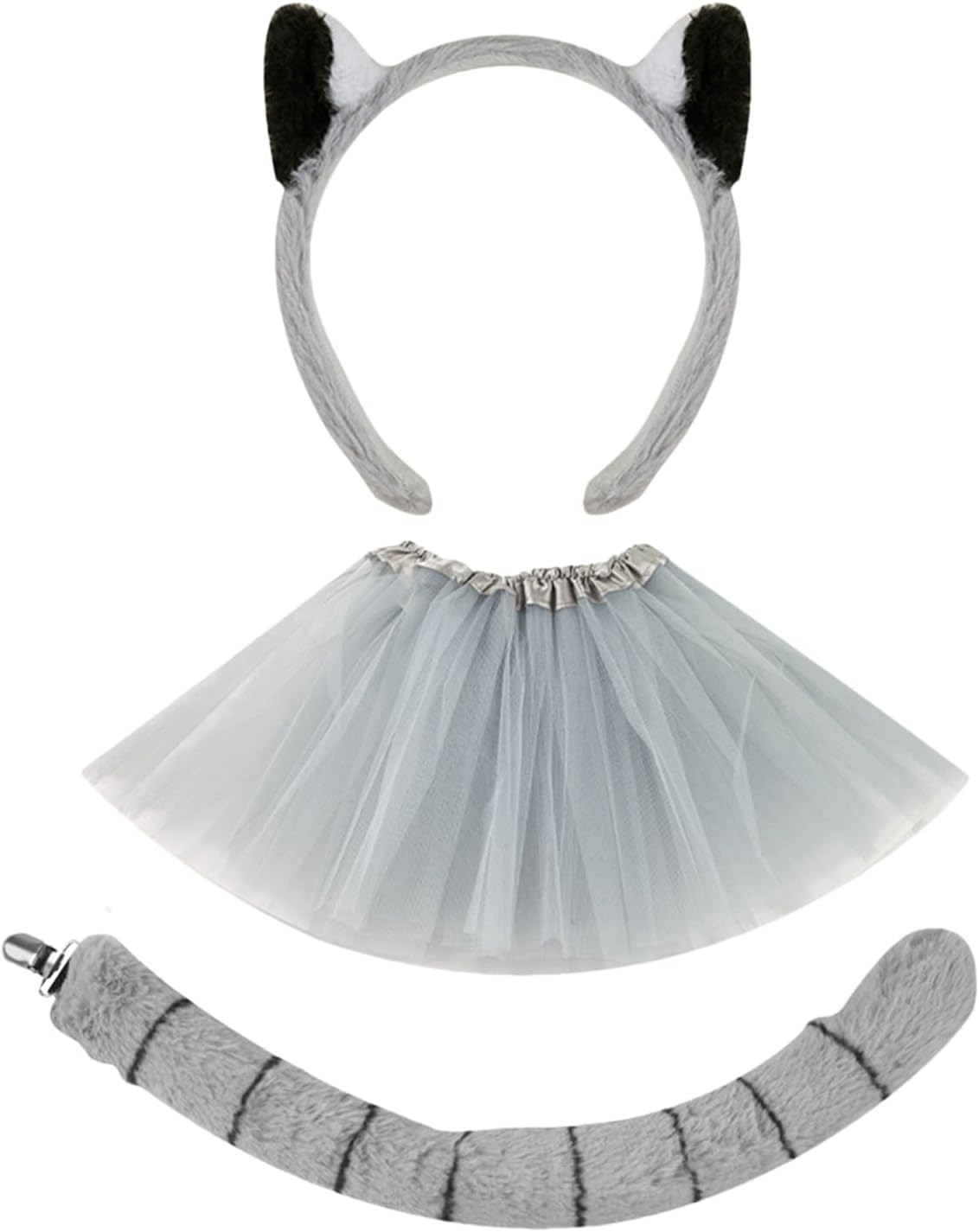 Generico Fasce per Capelli con Orecchie da Animale - Orecchie e Coda da Lemure - Accessorio Costume Per Bambini Halloween Carnevale Festa Palcoscenico Cosplay