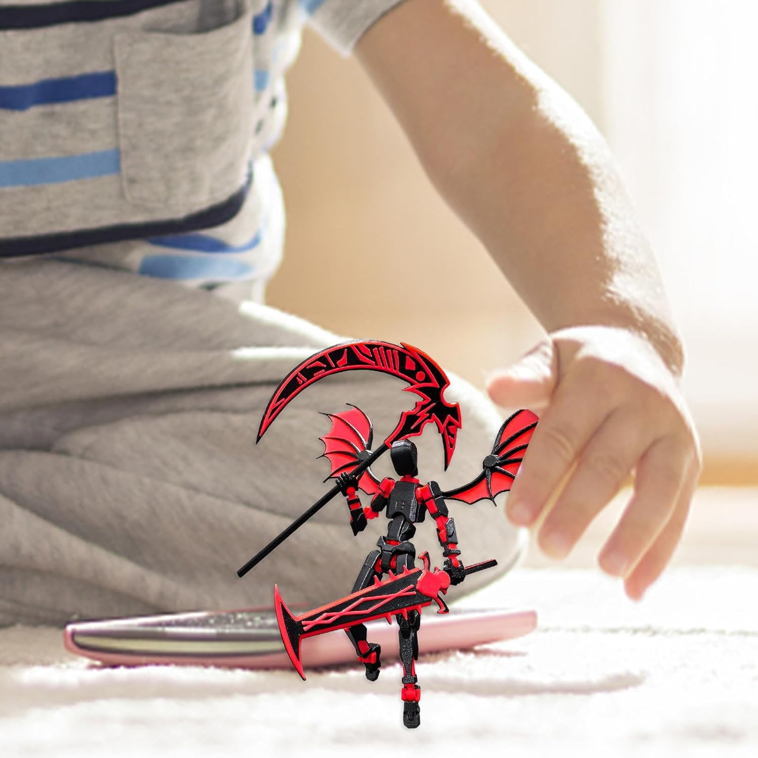 Montaggio Semplice: di giunzioni totalmente articolate per flessibilità nel posing, esperienza di gioco coinvolgente e installazione agevole per tutti Regalo Pratico: Grazie al suo design portafortuna e al simbolismo propiziatorio, questa figura stampata in 3D diventa un'aggiunta significativa a qualsiasi collezione, ideale per essere regalata o esposta grazie alla sua presenza accattivante Materiale Sicuro: Caratterizzato da materiali stabili e sicuri per bambini, combinati con una costruzione resiliente, garantisce un uso prolungato mantenendo rigorose misure di sicurezza per un'esperienza coinvolgente a qualsiasi età Arte Demoniaca Dettagliata: Con dettagli alari intricati e un'estetica demoniaca, la figura offre un design visivo imponente che emana un'aura potente, garantendo una presenza distintiva in ogni collezione o setup espositivo per appassionati Appeal per Tutte le Età: Questo action figure stampato in 3D è designato per un utilizzo sicuro e per l'esposizione, adatto sia per il gioco che per la collezione, pensato per appassionati e con materiali resistenti che garantiscono interazioni sicure per i bambini e una lunga durata nel