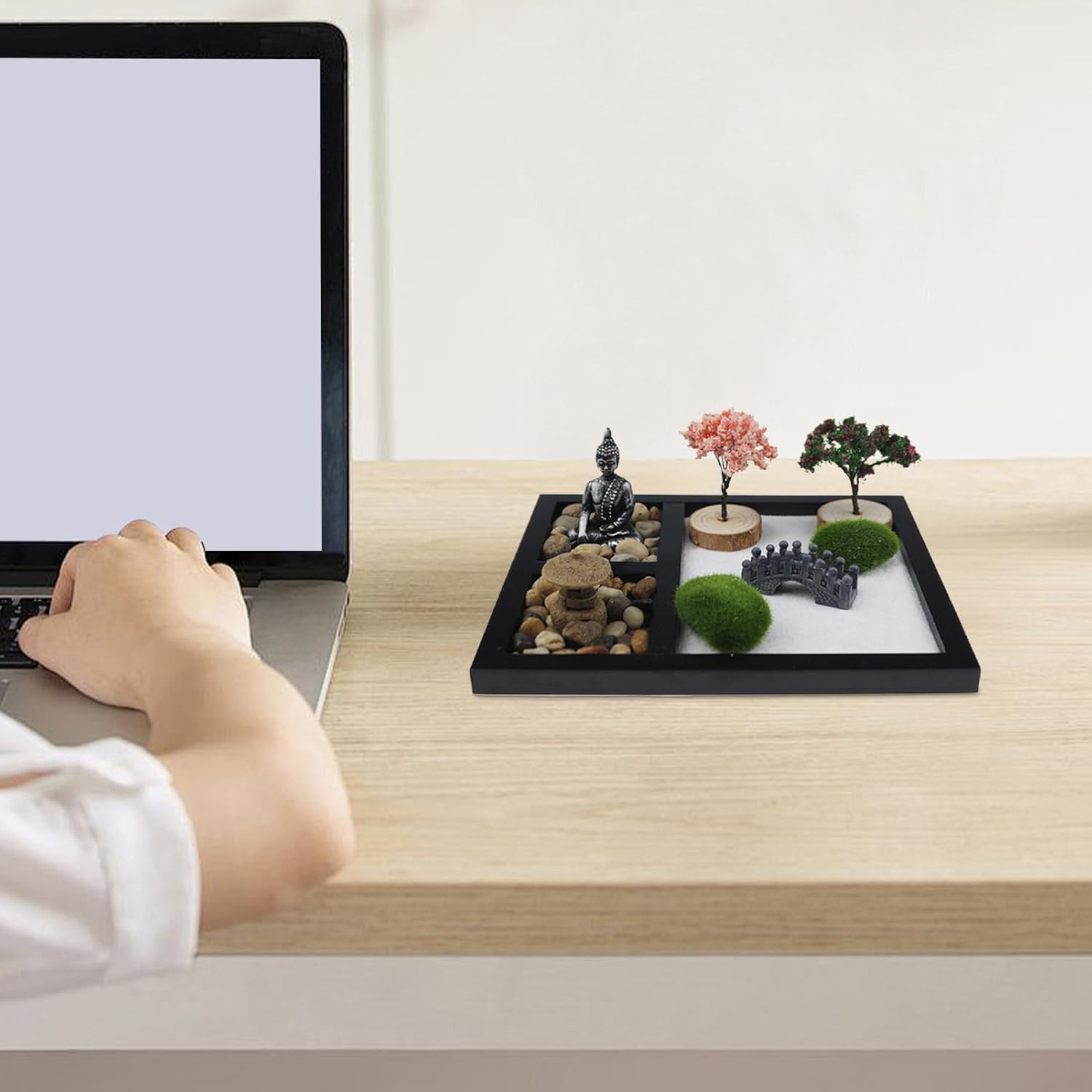 Squisito paesaggio in miniatura: gioia per l'attrazione calmante di un giardino Zen per la tua scrivania con la sua statua serena in mezzo a sabbia rastrellata, evocando la serenità dei giardini secchi giapponesi Affidabilità di lunga durata: realizzata con una tavola ad alta densità permanente, questo kit da giardino Zen offre un tocco affidabile e pacifico a qualsiasi spazio, aggiungendo un ambiente a ciò che ti circonda Usi versatili: realizzato per portarti menti calmanti, questo giardino di arredamento giapponese migliora qualsiasi spazio come un bellissimo fulcro e accento di meditazione, migliorando la tranquillità e la consapevolezza fattura: progettata in modo intricato con bellissimi mestieri, questo giardino Zen offre una fuga serena per ispirare la tua chiarezza mentale e calma Ampiamente applicabile: ideale per qualsiasi spazio compresi ambienti aziendali, luoghi di lavoro a casa, sale di studio o ingressi, questo giardino Zen desktop promuove umori armoniosi e positivi per migliorare l'ambiente circostante