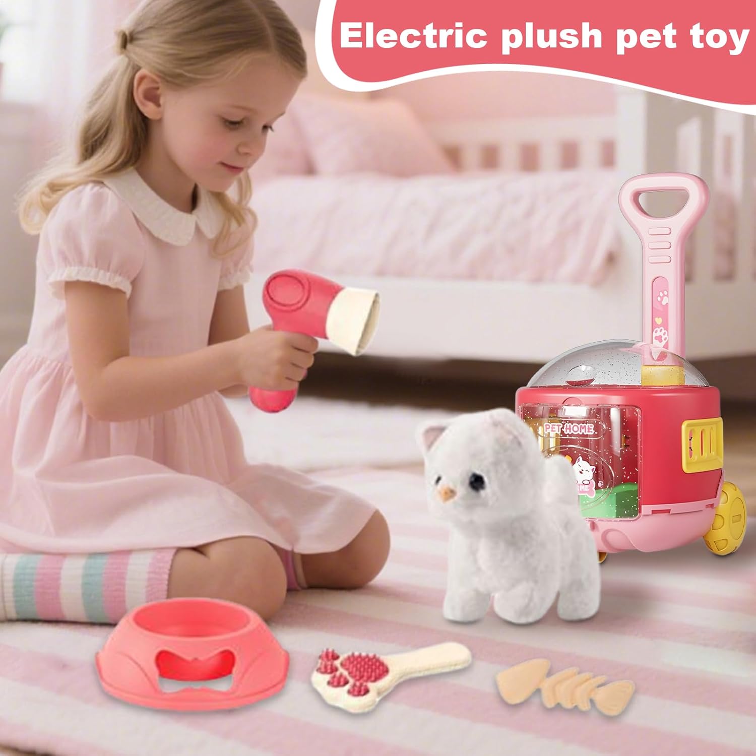 Simulazione Realistica 'Animale: Caratterizzato da un elettronico intelligente affidabile, favorisce la responsabilità e offre esperienze di accudimento immersive, garantendo agli utenti di percepire una compagnia emotiva attraverso le interazioni con l'animale domestico Sviluppo Competenze Interattive: Supporta avventure di finzione per stimolare la creatività, alleviare lo stress e costruire abilità come coordinazione ed empatia, utilizzando il coinvolgimento dinamico di animali elettronici per utenti giovani Morbidezza al Con: Il materiale in peluche corto di alta qualità conferisce una sensazione tattile morbidissima e avvolgente, ideale per quotidiane e interazioni sicure con materiali non irritanti e piacevoli al . Compagno confortevole outdoor: Progettato con un manico ergonomico, questo adorabile passeggino supporta il trasporto facile all aperto, lo rende per le uscite genitore-figlio e le passeggiate rilassanti in cortile mantenendo convenienza e portabilità durante tutta la giornata Design Intuitivo: Esperienza di gioco immediata e piacevole senza configurazioni complicate, grazie al controllo semplificato a un pulsante e alla batteria di lunga durata che supporta ore di intrattenimento continuo