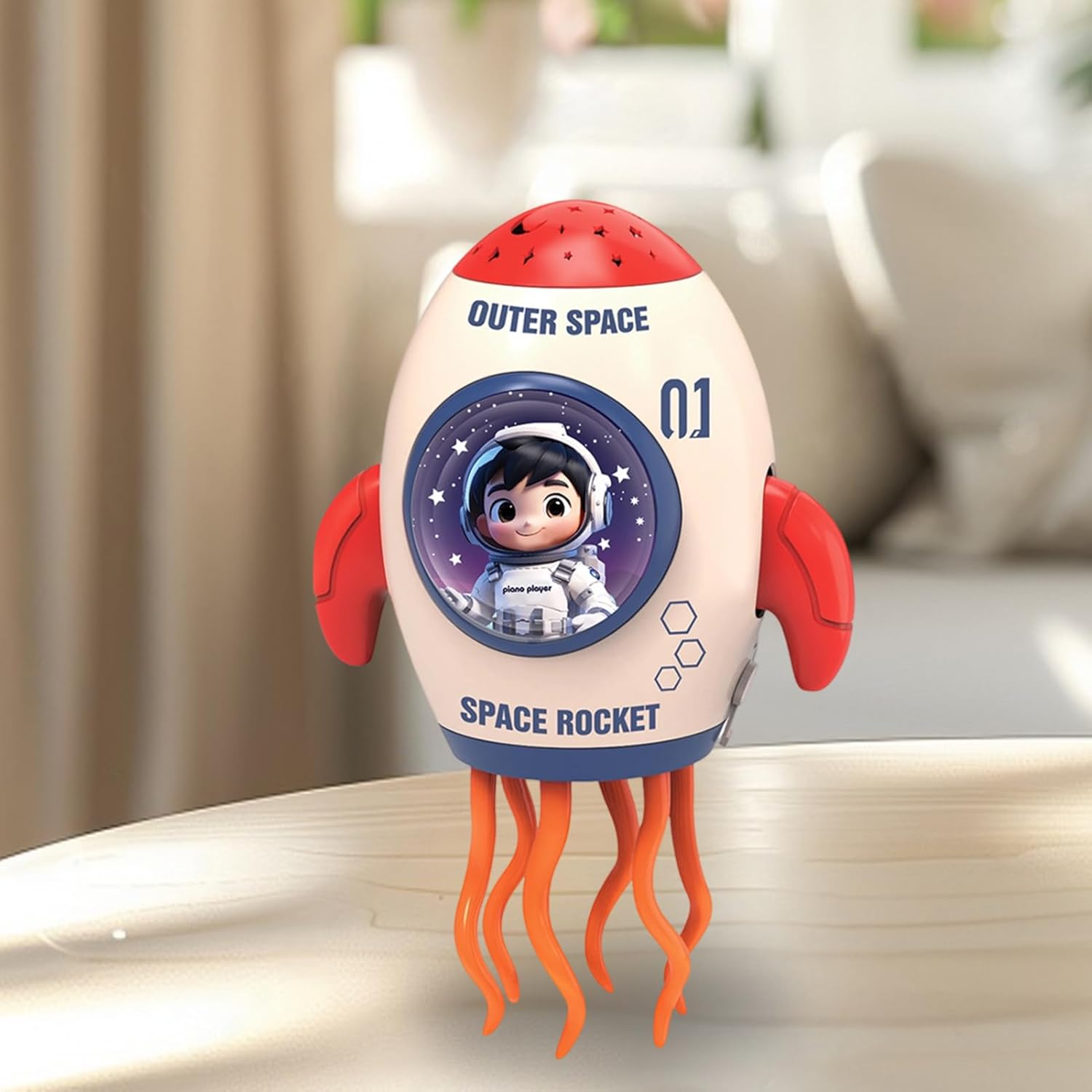 Strumento Sviluppo Sensoriale: Il proiettore HD a 360 crea pattern stellati sul pavimento con musiche rilassanti, offrendo un'esperienza coinvolgente che favorisce curiosità e relax durante il gioco o la routine della nanna in un ambiente confortevole Divertimento interattivo: Con la sua capacità di ruotare e danzare vibrantemente in multiple direzioni, il giocattolo garantisce interazioni coinvolgenti, diventando la scelta ideale per genitori che cercano intrattenimento attivo per i bambini durante weekend o vacanze Costruzione Robusta: Questo giocattolo elettrico presenta bordi arrotondati e luci soft per massima sicurezza, con un corpo rinforzato e componenti atossici che offrono protezione durante il gioco attivo; ideale per uso prolungato in casa, asili o spazi ricreativi, garantendo divertimento senza preoccupazioni per i genitori Regalo Ideale: Con il suo design futuristico ispirato a un e le sue funzionalità divertenti, questo giocattolo per bambini mantiene impegnati i piccoli dai 3 anni in su, insegnando loro in modo sottile attraverso attività basate sul movimento e sul suono, stimolando la creatività e l'immaginazione in modo coinvolgente e educativo per occasioni speciali Navigazione Intelligente Ostacoli: Grazie a sensori integrati che individuano ostacoli in reale, il giocattolo strisciante modifica autonomamente il percorso, scivolando senza sforzo su diverse superfici, creando un'esperienza di gioco coinvolgente che stimola curiosità e sviluppo motorio nei bambini durante l'uso quotidiano