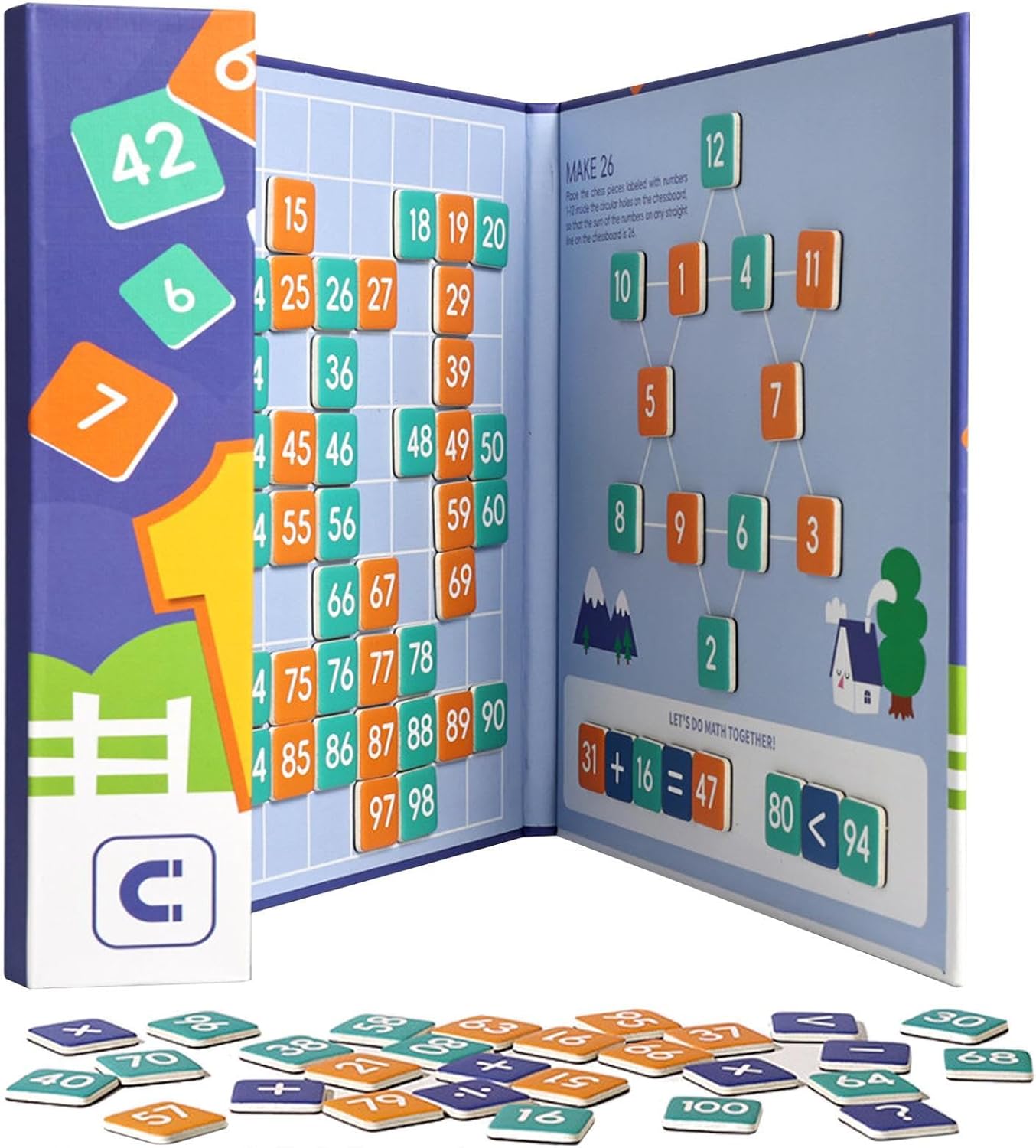 Gioco di Matematica Avvincente: Trasforma la matematica in un'esperienza di gioco pratica e piacevo, unendo divertimento e istruzione per creare modi coinvolgenti di padroneggiare competenze fondamentali in modo intuitivo e senza stress Apprendimento delMatematiche: Sfide progressive potenziano la comprensione dei numeri 1-100, addizioni e sottrazioni, favorendo l'apprendimento matematico per bambini in età prescolare e primi anni scolastici con giochi da tavolo avvincenti Qualità Materiali Garantita: Progettato con particolare attenzione alla sicurezza utilizzando cartoncino bianco bordi lisci ed ementi lucidati a mano assicurando divertimento senza preoccupazioni dai 3 anni in poi. La stabilità strutturaresiste all'uso intensivo dei più piccoli. Stabilità Potenziata: magnetica affidabisupporta un gameplay stabie l'esposizione, mantenendo ogni pezzo saldamente attaccato per migliorare la concentrazione e l'impegno educativo Sviluppo delabilità: Migliora capacità logiche e di ragionamento posizionando numeri per ottenere la somma di 26 su ogni linea, con un design creativo di gioco da tavolo che potenzia abilità spaziali e di probm solving attraverso il pensiero strategico e la pianificazione