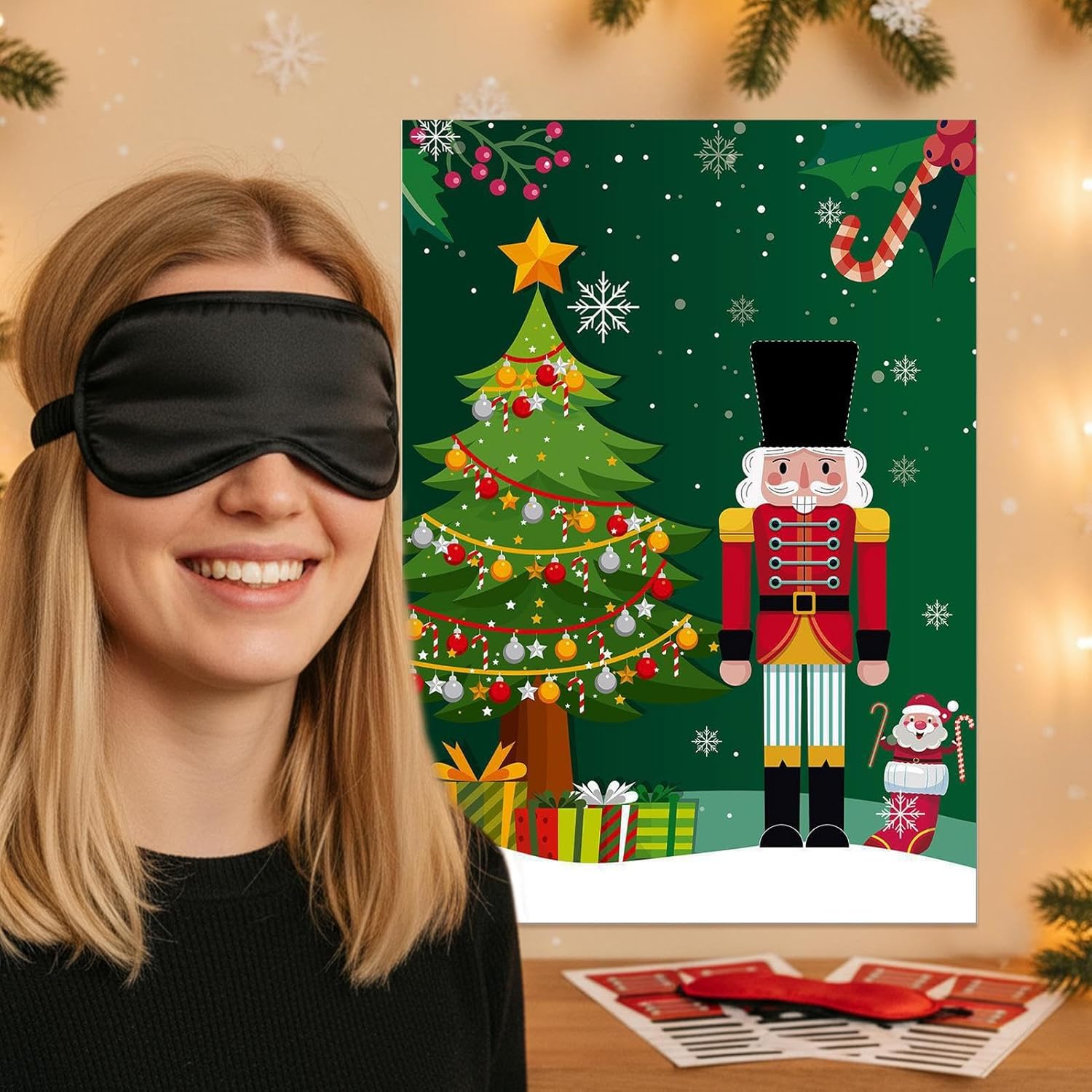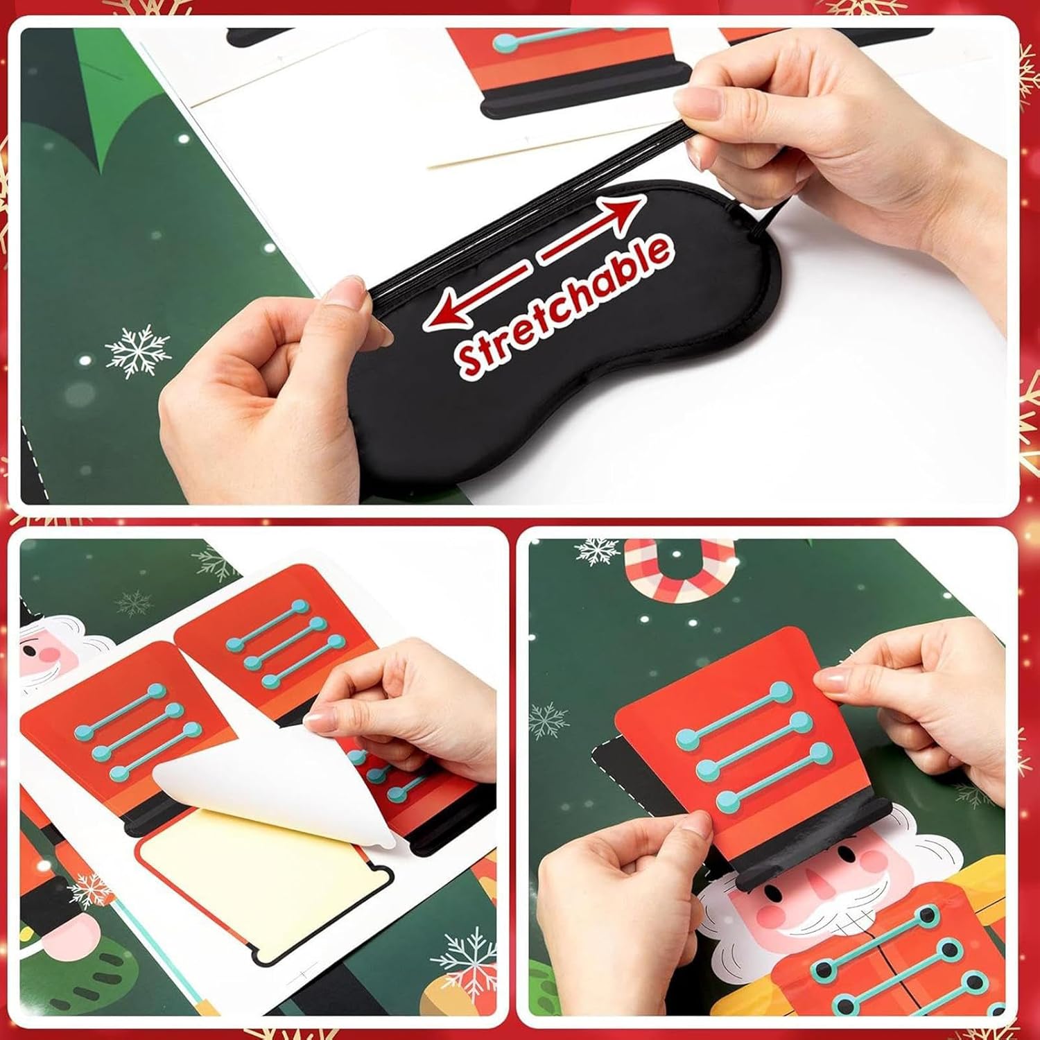 Ottimo per Tutti: I giochi natalizi mescolano divertimento interattivo e decorazioni festive, generando momenti gioiosi per riunioni familiari e party aziendali. Con regole accessibili e intuitive, sono adatti a tutti indipendentemente dall'età, incoraggiando legami e interazioni positive durante gli incontri stagionali. Questi giochi assicurano che ogni partecipante possa unirsi al divertimento, fosterando connessioni e allegria in ambienti celebrativi e festivi. Intrattenimento per Feste Senza Sforzo: Il pacchetto di giochi di Natale include un grande poster, 24 adesivi per cappelli, 2 per gli occhi e 20 puntini adesivi, fornendo tutto il necessario per il divertimento festivo senza richiedere forniture aggiuntive, garantendo una celebrazione coinvolgente con famiglia e amici in modo facile e veloce, per occasioni natalizie e raduni gioiosi. Ambiente Natalizio Migliorato: Caratterizzati da classici natalizi come fiocchi di neve, decorazioni e simboli dello , questi giochi di Natale per feste in famiglia offrono un design visivamente accattivante che aumenta lo spirito festivo, trasformando qualsiasi riunione in una celebrazione a tema natalizio allegra e indimenticabile con un'atmosfera vivace e coinvolgente per tutti. Design Robusto e Affidabile: Il design solido di questi giochi natalizi per famiglie assicura che resistano strappo e mantengano la qualità durante il gioco energico, fornendo un'opzione affidabile per il divertimento festivo che è semplice da conservare e recuperare per anni di raduni gioiosi con i , grazie a materiali robusti e una costruzione duratura adatta a feste vivaci e frequenti utilizzi Attività Natalizia Coinvolgente: Con questi giochi per feste di Natale, i giocatori vivono un'esperienza interattiva attaccando cappelli sullo da bendati, stimolando allegria e intrattenimento vivace che arricchiscono le celebrazioni festive. Questa attività promuove momenti di spensieratezza e unisce i partecipanti in un divertimento condiviso, perfetta per eventi natalizi o serate in famiglia per creare ricordi duraturi e piacevoli.