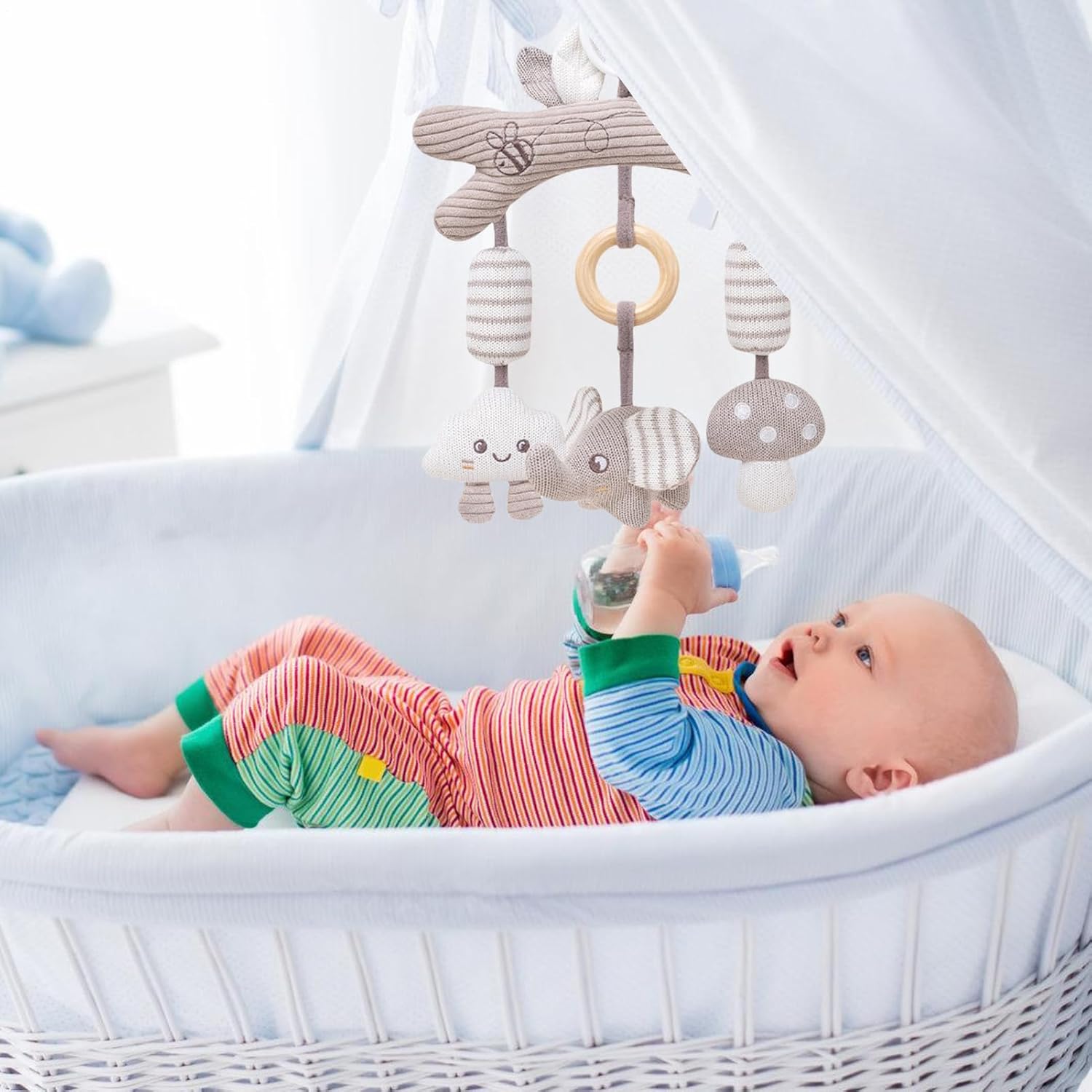Fissaggio intuitivo:Meccanismo a fibbia antiscivolo per una installazione sicura e senza , elimina il rischio di scivolamento garantendo stabilità ottimale durante le passeggiate senza necessità di accessori. Adattabilità Totale: Progettato per sostenere gioco e riposo, si regola in altezza e inclinazione su passeggini, culle e spondine, adeguandosi a spazi vari per la cura del bambino Sollievo dal Pianto: Attira l'attenzione del bebè con suono tenue e rotazione , riducendo gli episodi di pianto per incoraggiare un sonno prolungato e , offrendo un'esperienza visiva e uditiva calmante pensata per confortare i nelle fasi di veglia. Stimoli Visivi/Uditivi: ad alto contrasto abbinate a un sonaglio attraente potenziano la consapevolezza sensoriale e favoriscono lo sviluppo del tracciamento visivo e uditivo. Affidabilità Totale: Assenza di componenti pericolosi unita a una superficie delicata e connessioni solide, rende questo giocattolo da passeggino una scelta sicura per bambini che amano mordicchiare e afferrare durante le avventure giornaliere