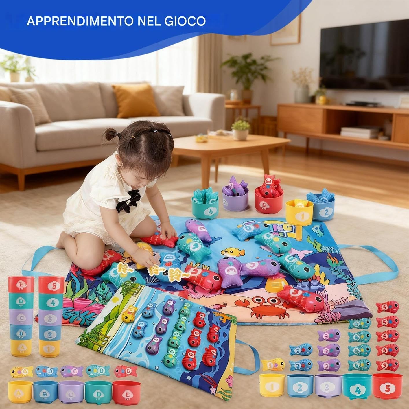 Compagno Apprendimento Divertente: Il gioco di abbinamento colori promuove esperienze di apprendimento condiviso integrando attività collaborative di conteggio che utilizzano contenitori impilabili, aiutando i bambini a costruire fiducia e rafforzare le connessioni familiari durante il gioco indoor o utilizzando l'amo da portatile. Pulizia Rapida e Semplice: Questo giocattolo educativo per ordinamento e conteggio include un tappetino pieghevole e un comodo contenitore integrato per riporre tutti i componenti, rendendo il gioco pratico da trasportare e configurare in qualsiasi ambiente interno o esterno, con una raccolta veloce dopo l'uso, ideale per famiglie con ritmi intensi che cercano efficienza e divertimento all'aperto senza spreco di Problem Solving Giocoso: Concentrandosi sull'abbinamento numeri e colori, questo giocattolo per assortimento colori supporta lo sviluppo cognitivo naturale e rinforza la coordinazione occhio-mano attraverso il gioco di educativo, offrendo un modo coinvolgente per i giovani apprendisti di praticare il pensiero critico Costruttore Abilità Motorie: Supporta il ragionamento spaziale con sfide di abilità progressive in ambienti di gioco sicuri, promuovendo la crescita cognitiva e lo sviluppo di capacità fondamentali per piccoli apprendisti da 0 a 36 con esercizi appropriati Compagno di Gioco Sicuro: Il gioco di ordinamento colori è realizzato in tessuto soffice che elimina preoccupazioni legate a rischi di soffocamento; la sua resistenza ai lavaggi frequenti garantisce una lunga durata, creando un ambiente sicuro per i bambini che gattonano per esplorare colori e concetti di ordinamento in modo .