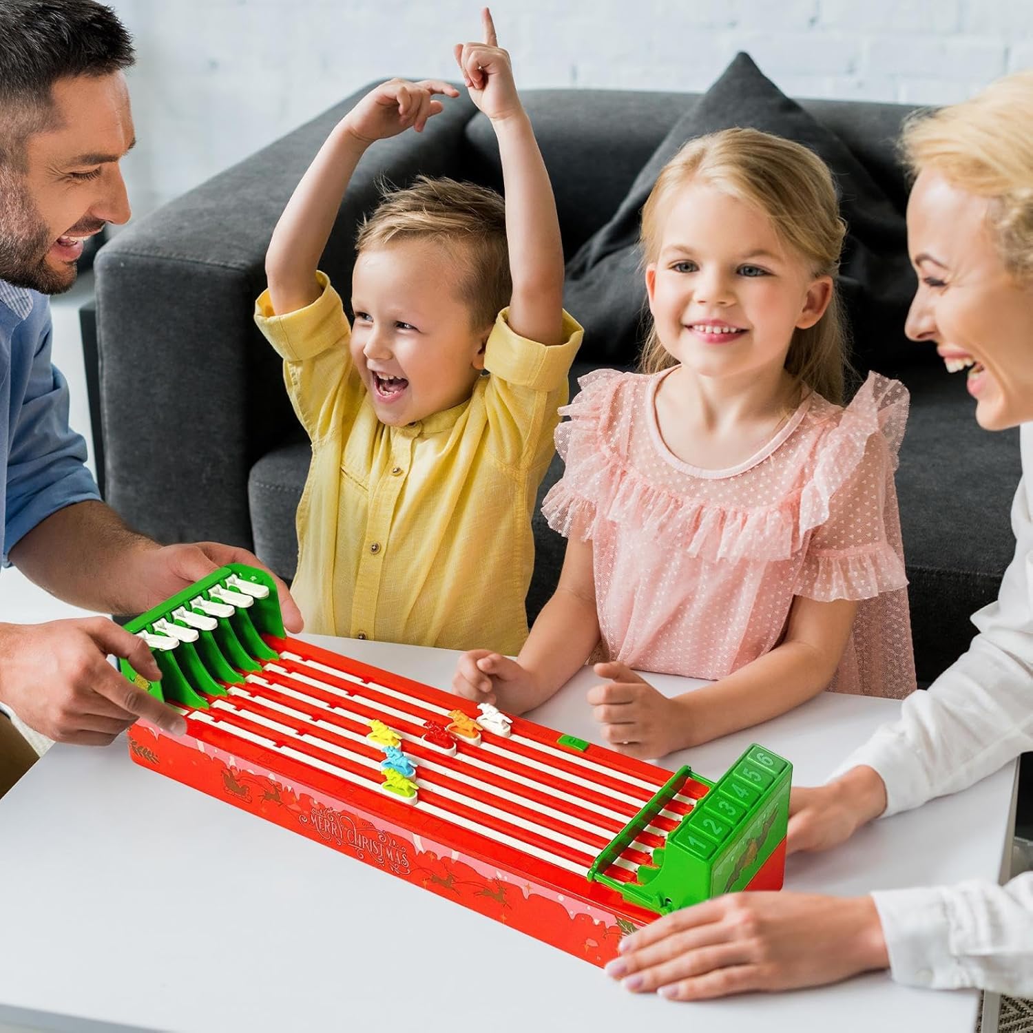 Meccanismo intuitivo: favorisce l'unione familiare tramite comandi a leva interattivi, offre un gioco adatto a tutte le età con regole comprensibili e configurazione diretta senza processi complicati Facile da trasportare: i suoi scomparti integrati e il design compatto lo rendono portatile, leggero e facile da trasportare, consentendo una rapida classificazione delle parti per partite all'aperto senza problemi Struttura robusta: progettata con una costruzione modellata in un unico pezzo di materiale ABS ad alta densità, garantisce lunga durata, resistenza agli urti e all'abrasione e bordi arrotondati per un'esperienza di gioco sicura e senza rischi. Divertimento immersivo: elementi a tema e rosso-verde generano spirito natalizio avvolgente, offrendo un'esperienza accattivante che aumenta la partecipazione a qualsiasi evento celebratorio con amici e familiari Regalo incredibile: ideale come regalo di compleanno e perfetto per le feste dei bambini, questa opzione di regalo familiare toccante è ottima per Natale e celebrazioni, potenziando momenti di unione e divertimento in famiglia con bambini e persone care