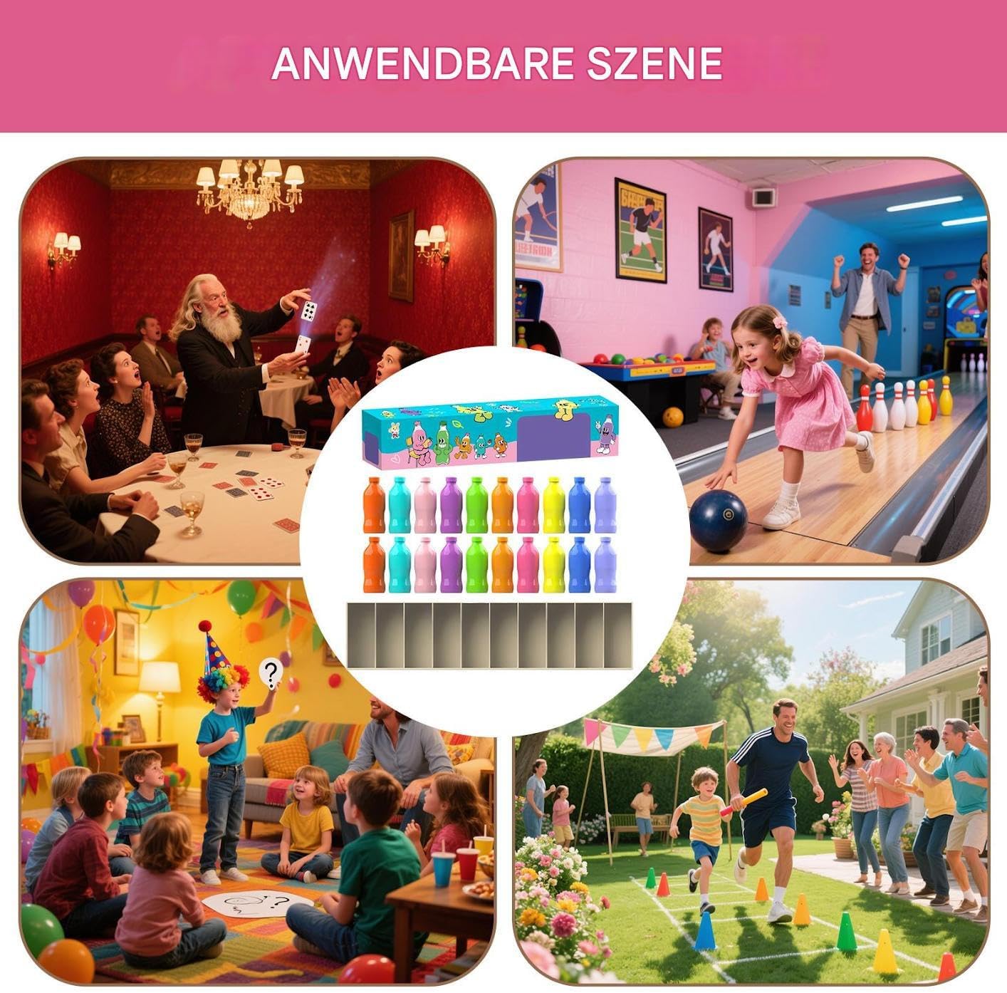 Esperienza dinamica: mette alla prova la capacità di osservazione e la velocità in gruppi misti, trasforma ogni serata di gioco in emozionanti giri di gioco pieni di azione e risate. ABS durevole: il materiale speciale ABS garantisce un'esecuzione sicura e robusta. Resiste all'uso familiare intensivo e offre divertimento duraturo per tutte le generazioni. Facile da usare: allena la memoria con 20 bottiglie in 10 colori vivaci. I giocatori trovano le coppie di colori attraverso la memoria, che promuove lo sviluppo cognitivo Stabilizzazione utile: la scanalatura di precisione assicura che le bottiglie rimangano saldamente in posizione per un gioco di memoria fluido e una protezione efficace contro cadute accidentali Costruzione di relazioni: supporta 2-4 giocatori con un approccio di gioco di squadra interattivo. Promozione naturale della cooperazione e della comunicazione attraverso sfide giocose per legami familiari più forti