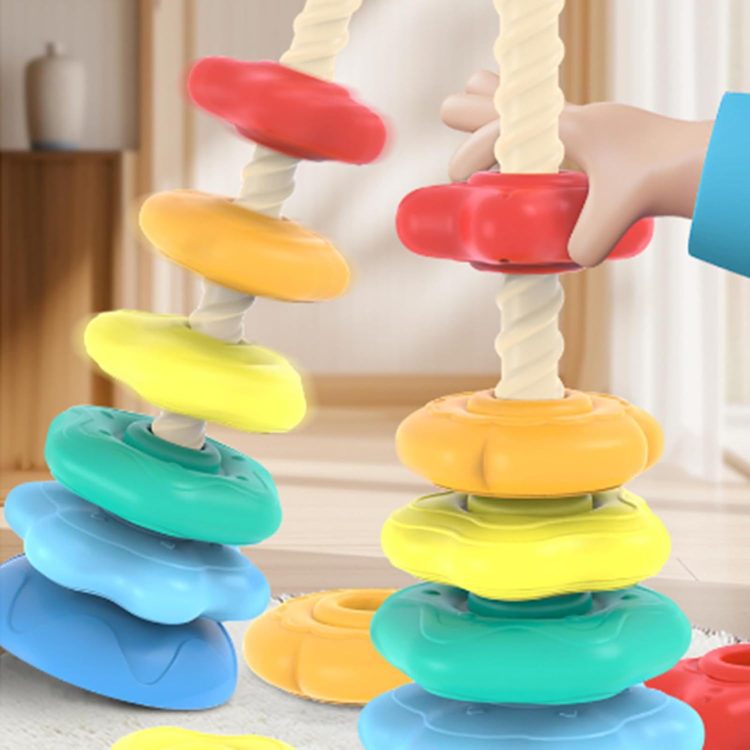 Materiali Durevoli: Anelli levigati e lucidati con design a misura di bambino, realizzati in ABS di alta qualità per garantire materiali longevi che resistono al gioco quotidiano, offrendo un'esperienza sicura e confortevole per i bambini Design Torre Interattiva: Incoraggia l'apprendimento interattivo con una torre girevole, promuove coordinazione occhio-mano e consapevolezza spaziale durante sessioni di gioco divertenti, ideale per giovani esploratori. Sviluppo Pazienza Graduale: Sostiene la crescita della pazienza tramite gioco coinvolgente, migliorando concentrazione e precisione mentre i bambini impilano gli anelli con attenzione Regalo Favorito: Coinvolge le menti giovani sostenendo lo sviluppo, combina educazione e intrattenimento. Scelta premurosa come regalo e giocattolo adatto ai più piccoli Apprendimento Colorato: Favorisce il riconoscimento cromatico con stimolanti, creando un ambiente dinamico le giovani menti esplorano e identificano naturalmente varie tonalità