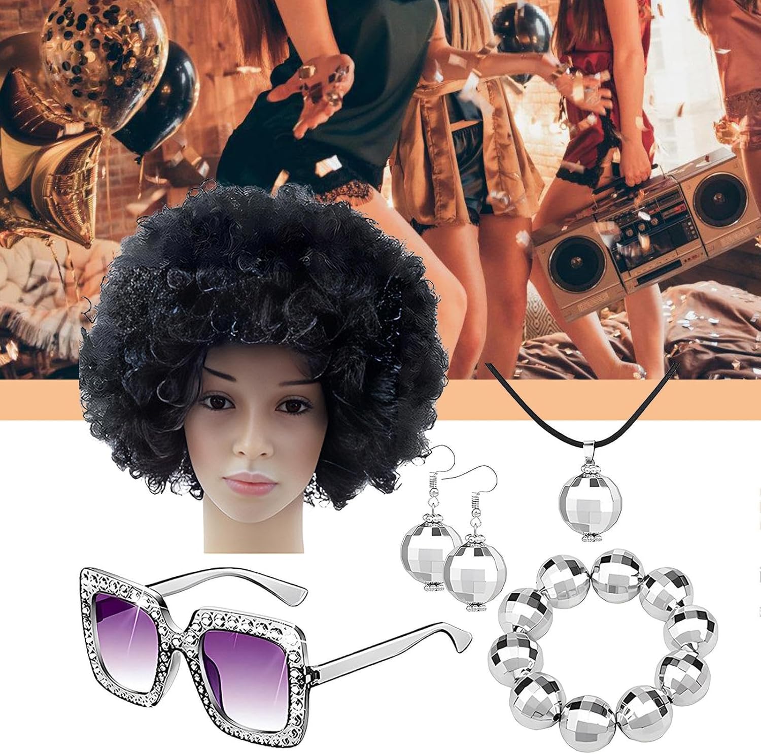 Generico Gioielli da discoteca per donna Set di da discoteca da donna degli anni '70 e '70, Costume da rapper anni ' Set costume da per palla da, Parrucca afro, orecchini, occhiali da sol