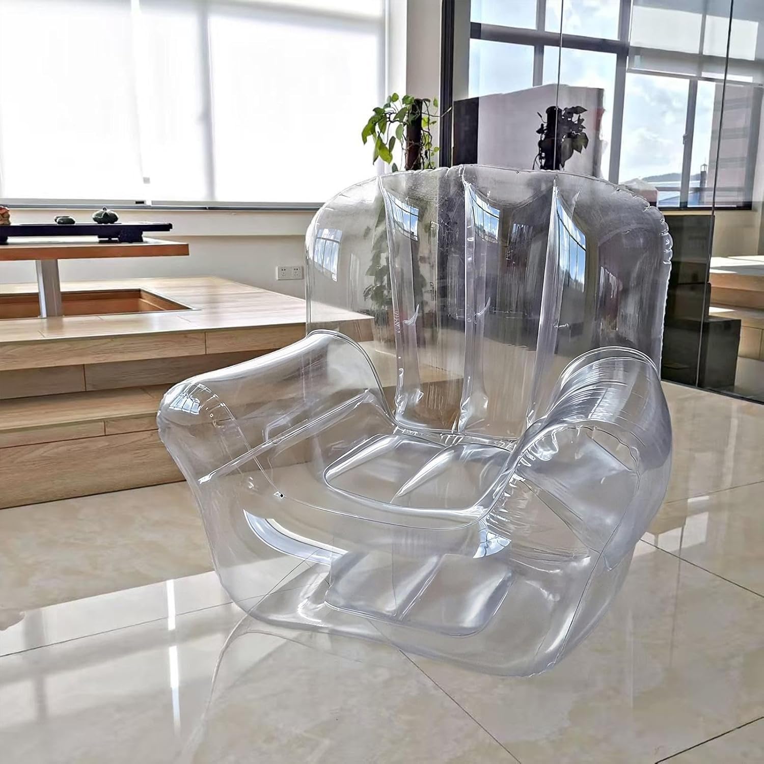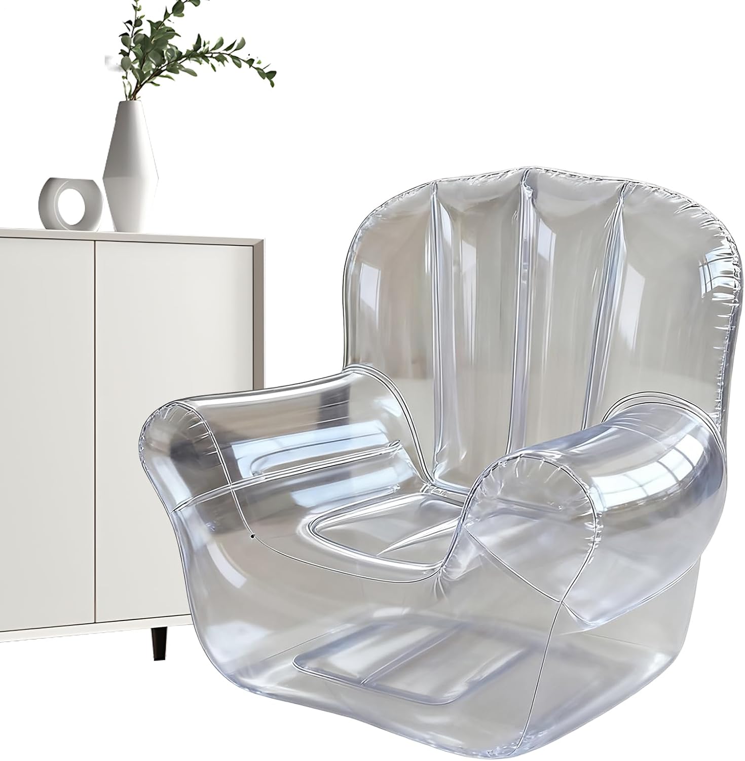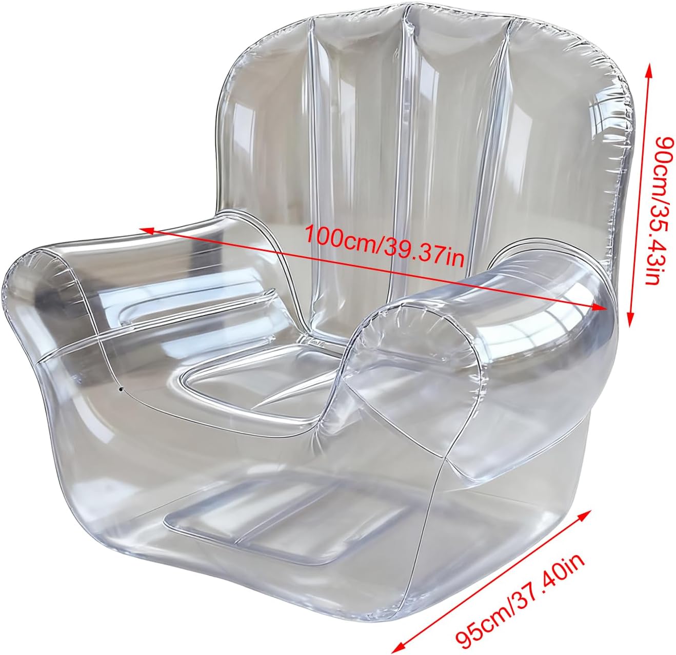 Design portatile e leggero: misurazione 100x95x90 cm, questo gonfiabile è facile da trasportare e trasportare, rendendolo per camere da letto, viaggi, rilassamento a bordo piscina, balconi, prati o rilassati al coperto, fornendo comfort ovunque hai bisogno di posti a sedere rapidi Ergonomico e comodo: progettato con contorni ergonomici, questo gonfiabile supporta la tua schiena e promuove il rilassamento, garantendo un'esperienza di posti accogliente e confortevole per la lettura, il pisolino, il gioco o il godimento del libero all'interno Mobili gonfiabili portatili resistenti: realizzato con materiale in PVC di alta qualità, resistente alla foratura, questo aria gonfiabile resiste all'usura, offrendo comfort e un moderno design trasparente adatto per camere da letto, patio, prati o percorsi Facile da gonfiare e sgonfiare: questo 'aria si gonfia e si sgonfia rapidamente per la configurazione e lo stoccaggio senza sforzo. Il suo design leggero e pieghevole lo rende conveniente per viaggi, attività all'aperto o rilassamento spontaneo, risparmiando e spazio rimanendo comodo Versatile Uso interno e esterno: ideale per camera da letto, viaggi, a bordo piscina, balcone, prato o libero da interno, questo gonfiabile è per adulti e adolescenti durante incontri casual, rilassamento all'aperto o posti spontanei per feste ed eventi