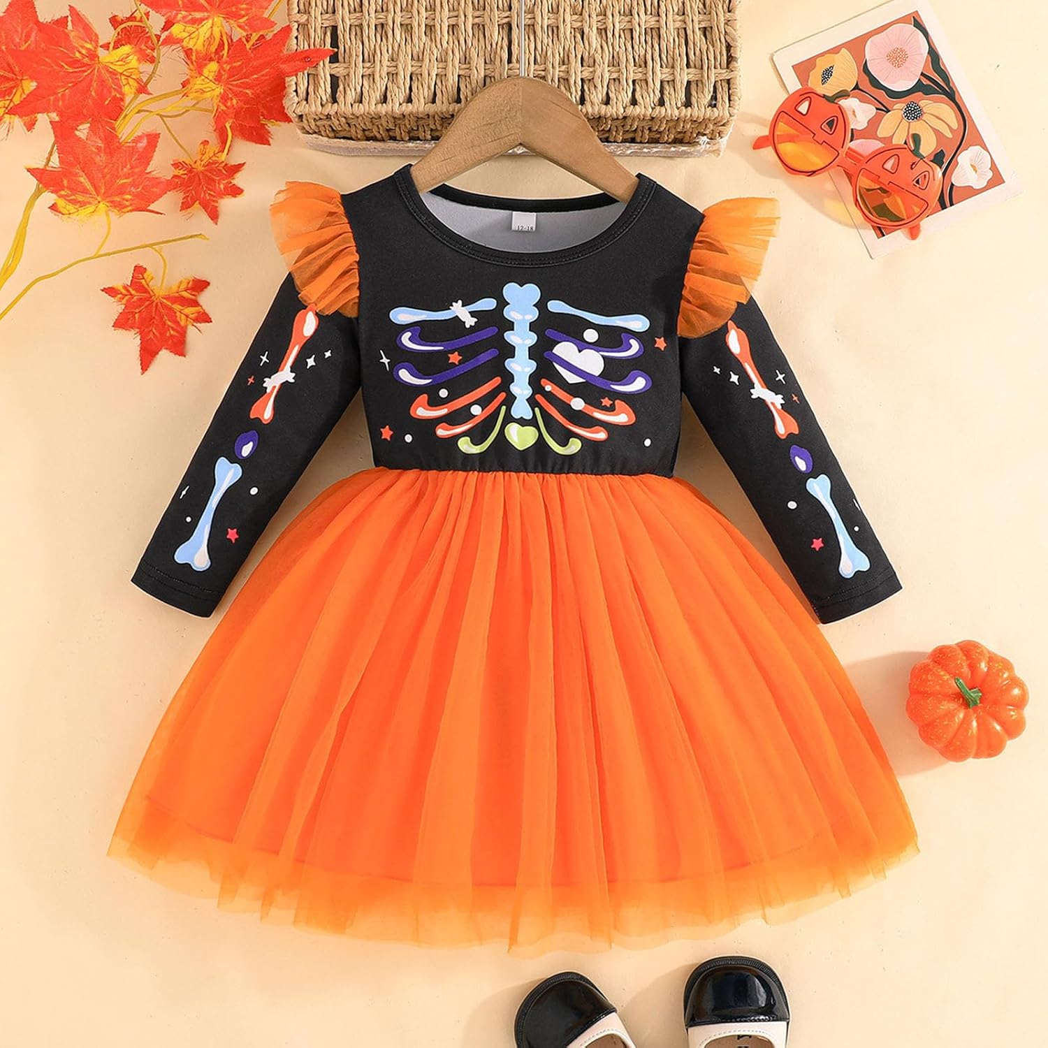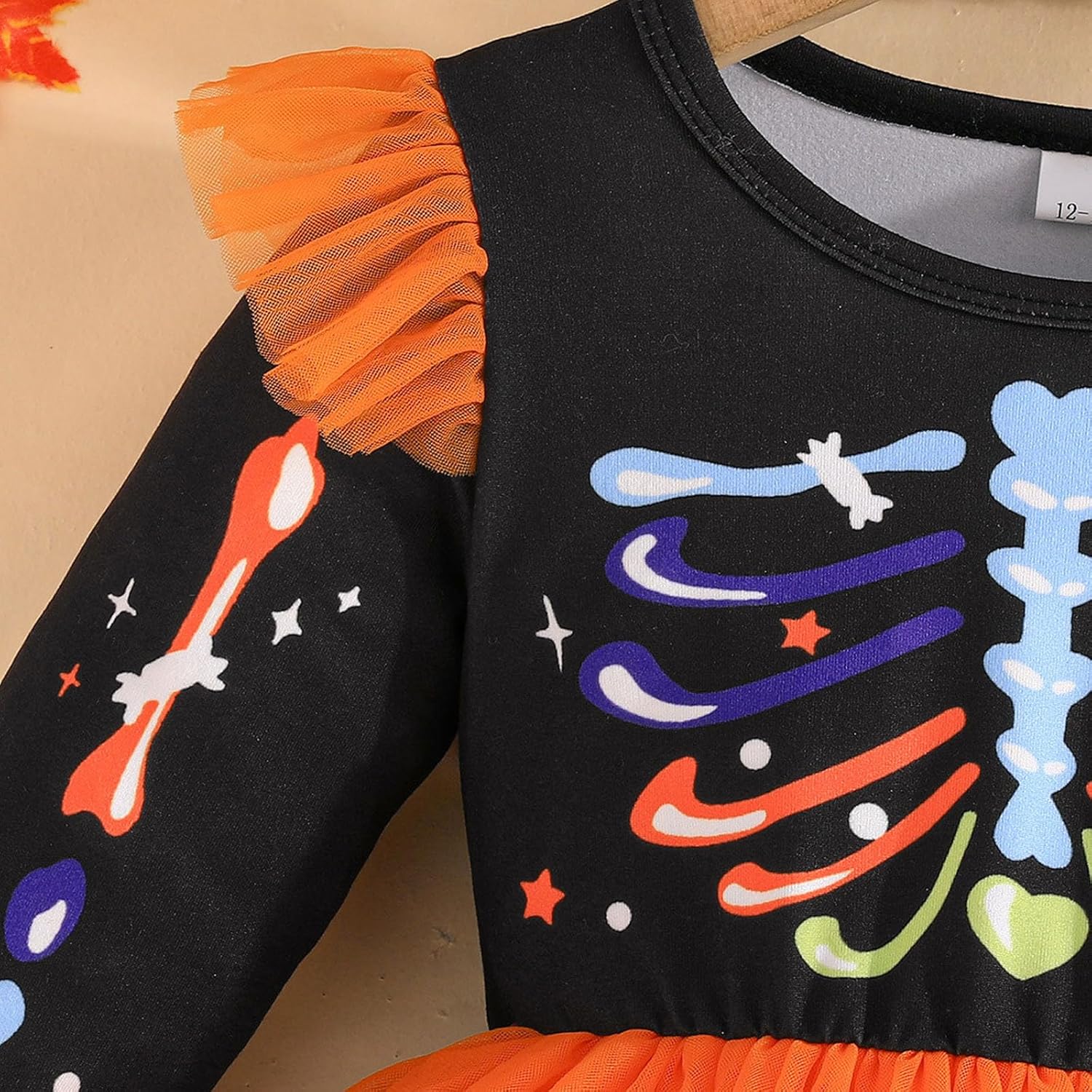 Morbido tessuto a rete con simpatiche stampe a cartoni animati per un incantevole abbigliamento per Halloween o feste Halloween Design a maniche lunghe con gonna tutù per un maggiore comfort, aspetto elegante Halloween per diverse occasioni come feste, scuola, spiaggia o attività ricreative Halloween Facile manutenzione: lavabile in lavatrice, ideale per l'uso quotidiano Halloween Consulta la tabella delle taglie prima di ordinare per trovare la vestibilità perfetta possibile. Halloween