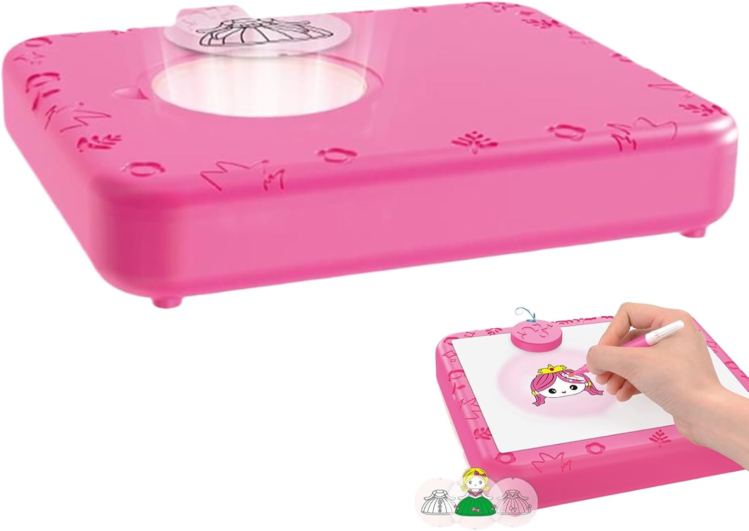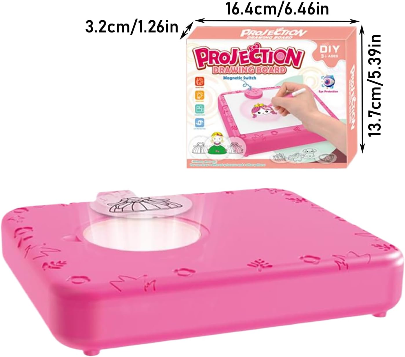 Interactive LED Projection: Equipped with a built-in LED projector that casts clear onto the drawing board, helping kids trace and draw with ease while making art more engaging and interactive Boosts Creative Development: This drawing board encourages imagination and artistic expression by helping children create pictures, learn shapes, and explore colors, fostering early cognitive and fine motor skill growth Adjustable and User Friendly Design: The angle of the projector can be adjusted for better visibility and comfort, allowing kids to draw in various seated positions and explore art from multiple angles with ease Educational and Entertaining: Combines learning and fun by enhancing hand-eye coordination, color recognition, and shape tracing in a playful setting, making it a perfect tool for both and guided activities Child Safe Materials: Made from , sturdy materials, the set is built for long-lasting use and is safe for daily handling, ensuring worry-free creative fun for and preschoolers