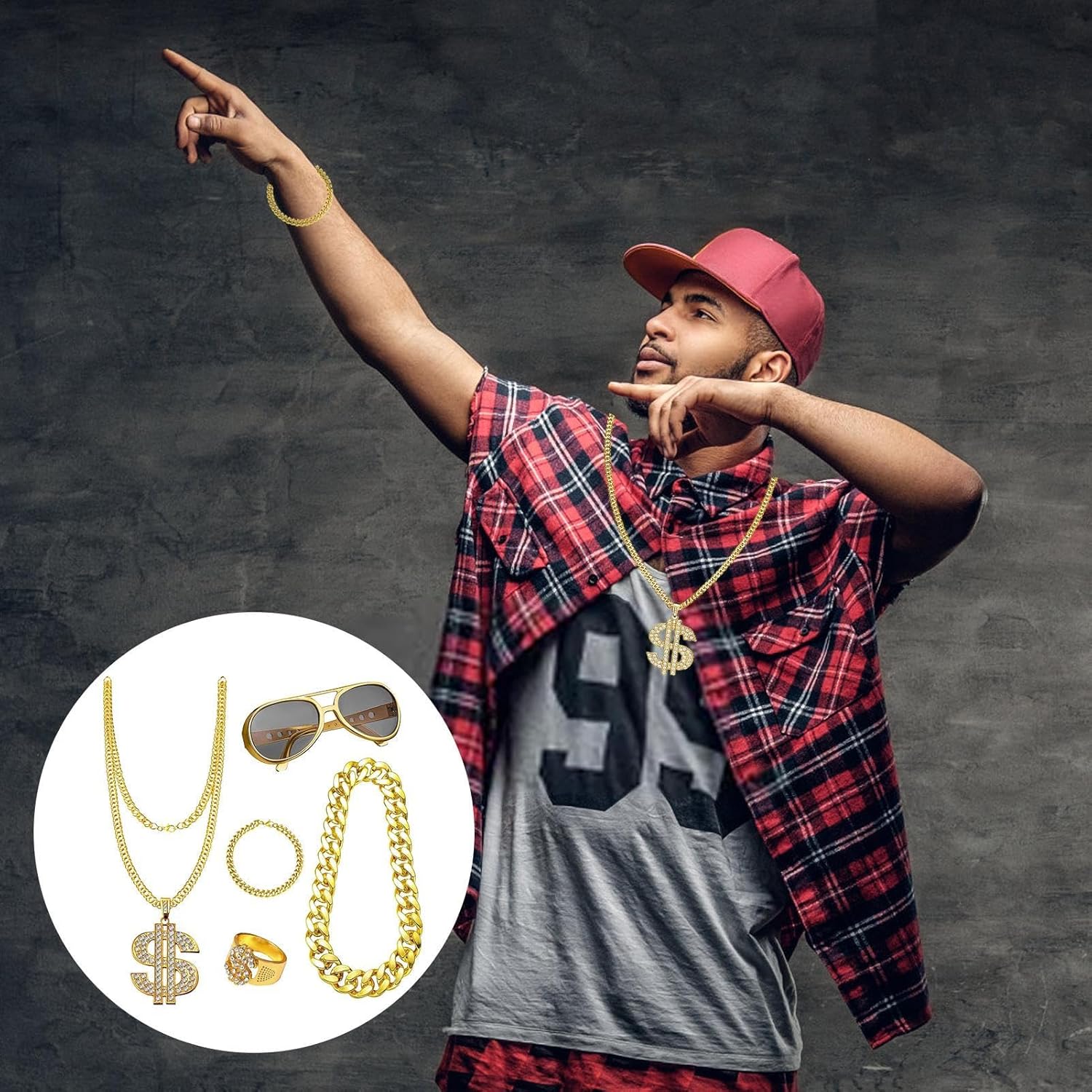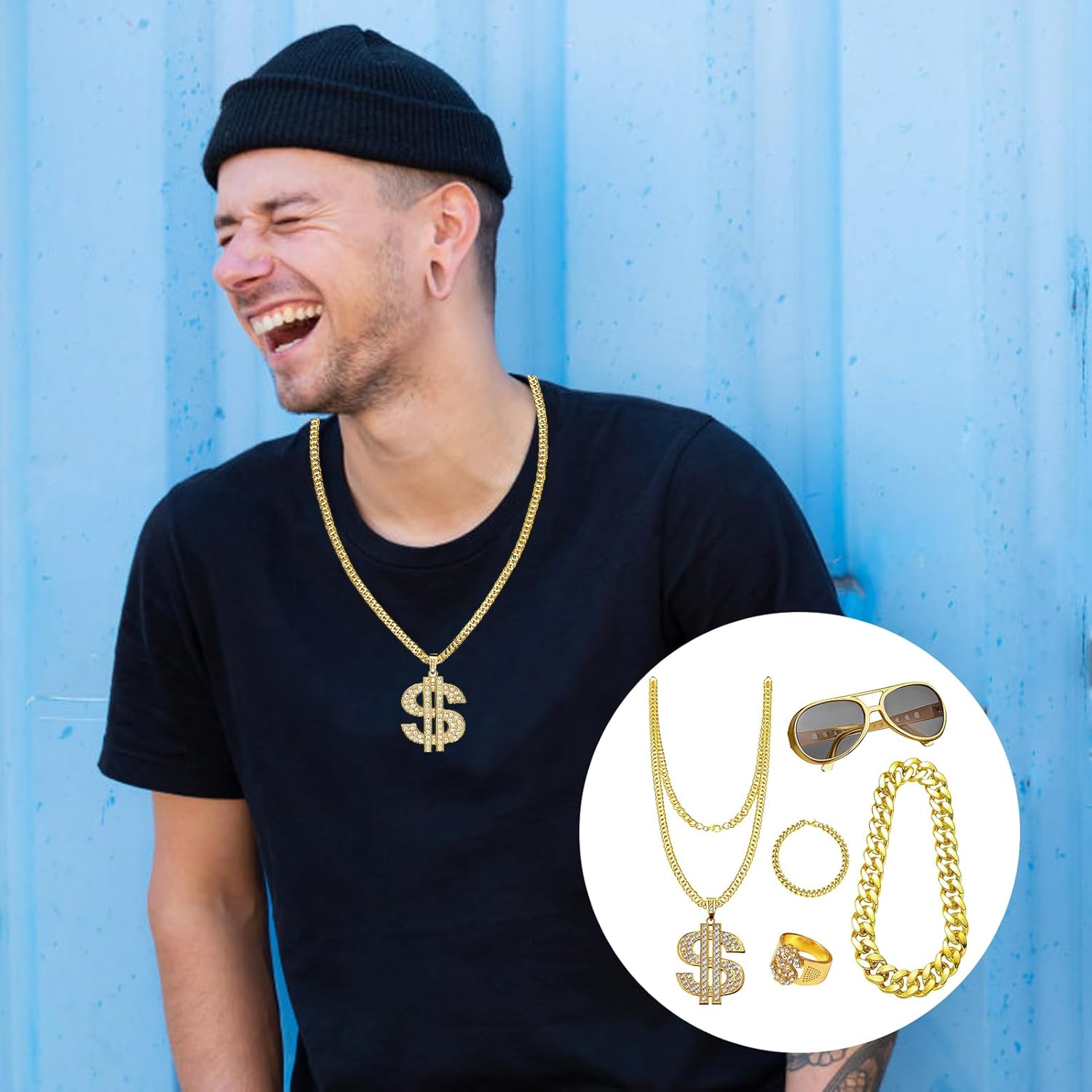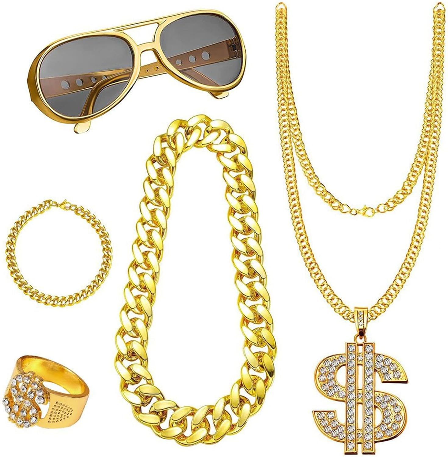 Descrizione prodotto Descrizione: Gli occhiali da sole hippie sono realizzati con policarbonato e acrilico per una maggiore durata. Pratico, leggero ed elegante, fa una dichiarazione e si abbina perfettamente ad altri outfit. La falsa catena d'oro è realizzata in PP di alta qualità senza design con fibbia, che è sicura, resistente, lucida e può essere indossata direttamente intorno al collo. Le collane e gli anelli d'oro sono realizzati in materiale in lega placcato oro, lucentezza forte, durevole, brillante e bell'aspetto. Specifica: Nome: kit costume hip hop Materiale: metallo + PP Dimensioni: come mostrato Il peso; circa 150 g Lista imballaggio: Occhiali da sole per abbigliamento hippie*1 Bracciale hippie*1 Collana hippie*1 Anello hip-hop*1 Collana hippie dollaro*1 Nota: 1. A causa degli effetti di luce e degli angoli di ripresa, c'è una differenza di colore nel prodotto, per favore capisci. 2.A causa della misurazione manuale, esiste una tolleranza nella dimensione del prodotto. Avviso di sicurezza Non applicabile