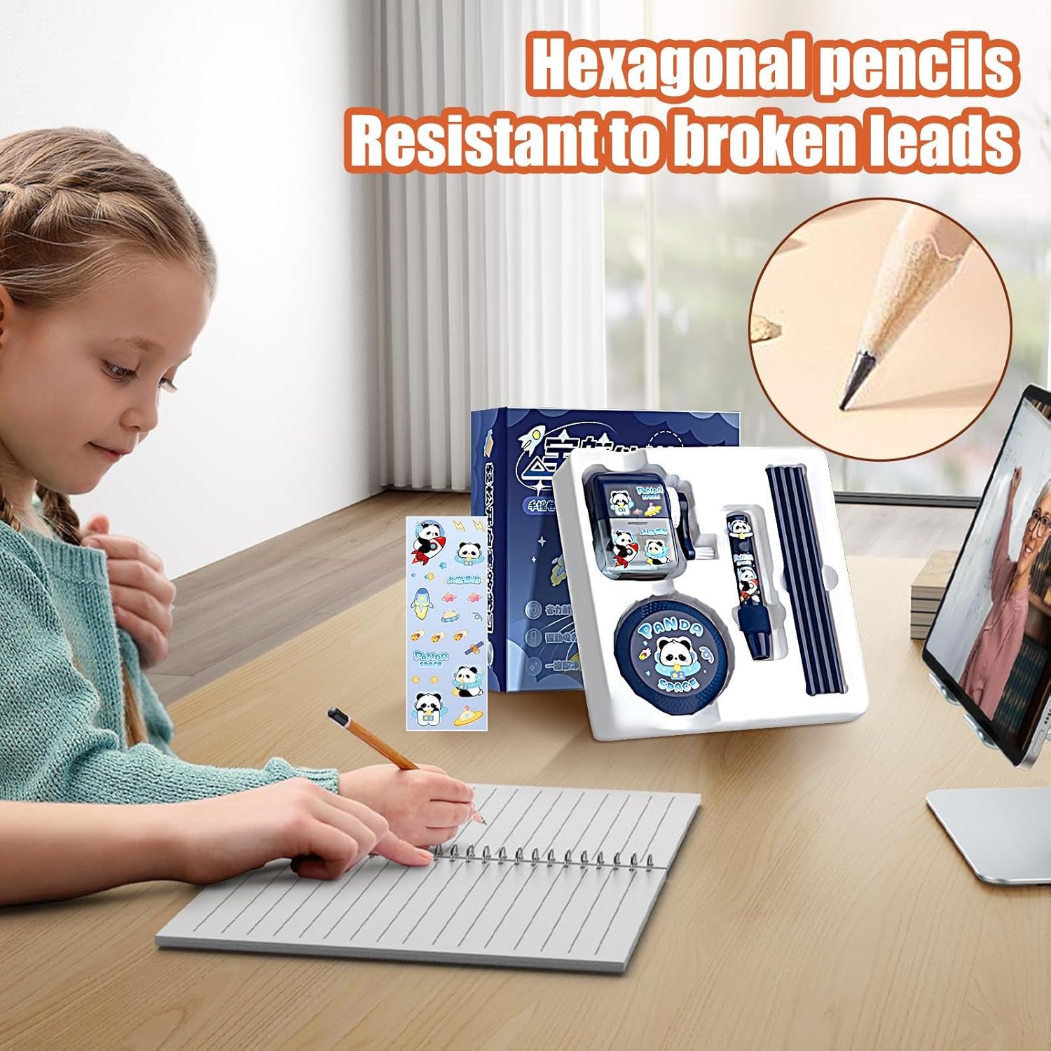 Compagno Scrittura Efficiente: Unisce un pratico aspirabriciole elettrico per la pulizia, un temperamatite a manovella per punte perfette e gomme con presa ergonomica per migliorare la tua esperienza di scrittura Pulizia Efficiente: La combinazione aspiratore e temperamatite rimuove efficacemente i residui di gomma, creando un ambiente di apprendimento ordinato e confortevole per aumentare la produttività con compatibilità per molteplici varietà di matite Tranquillità Totale: L'eccellente PP garantisce prestazioni stabili con maneggevolezza regolare, offrendo soddisfazione continuativa e rassicurazione durante utilizzi prolungati Regalo Festivo: Set di cancelleria adorabile come regalo per bambini e ragazzi, ideale per esprimere affetto in occasioni speciali come compleanni, festività o periodi natalizi con design e confezione curata Tema Cartone Adorabile: Design accattivanti di capibara e panda un tema divertente che cattura l'attenzione e incoraggia la curiosità nelle attività educative per l'infanzia
