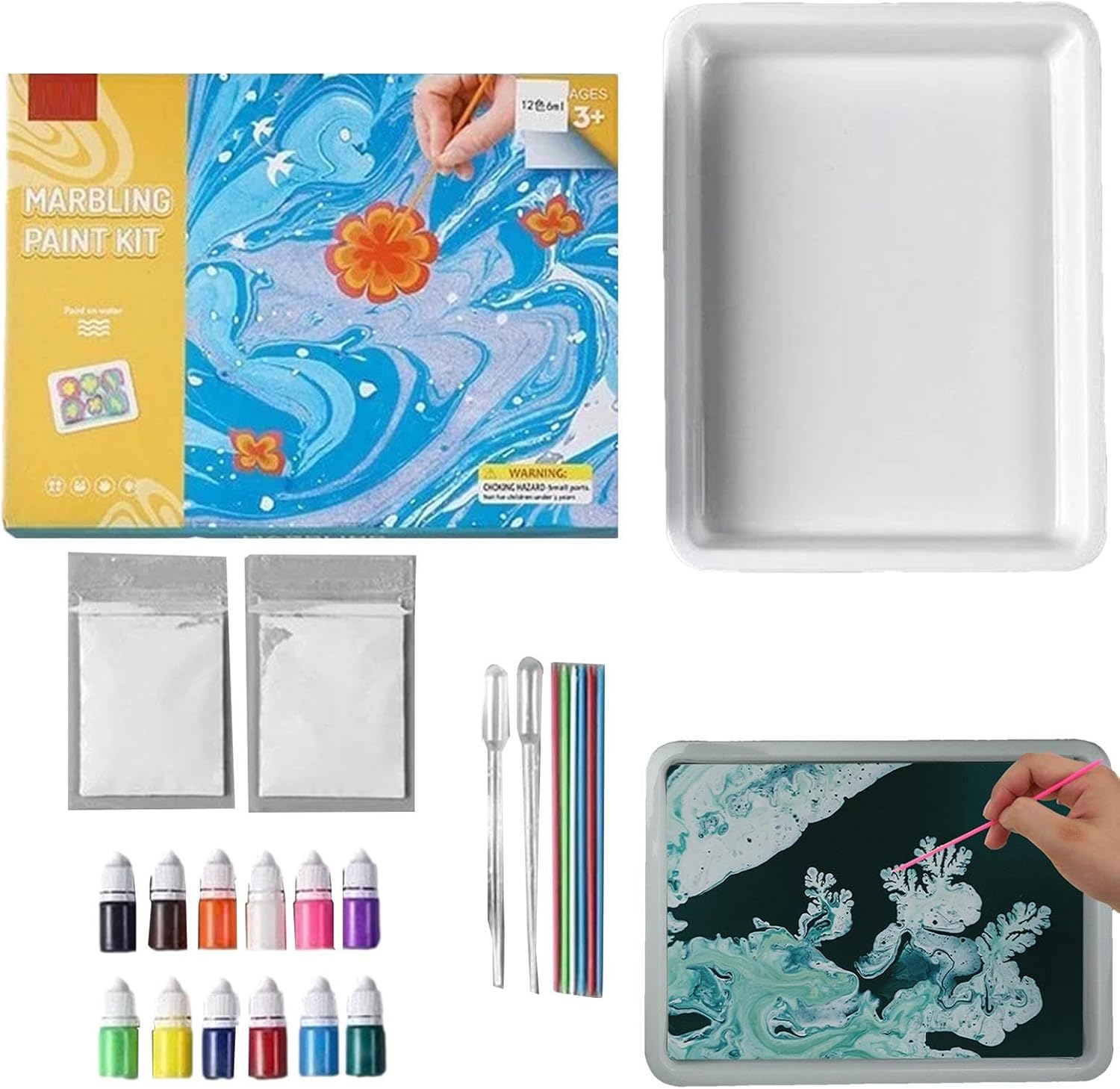 [Giocattolo affascinante] Basta immergere i tuoi oggetti preferiti nei tuoi colori preferiti e il gioco è fatto, il set di pittura per marmorizzazione 'acqua sta creando moi come fiori, , esplosioni, cuori, geometria, ecc., Adottando un nuovo concetto di pittura che può crea motivi simili al marmo su qualsiasi cosa. [Funzioni multiple] Rilasciando e stimolando la creatività, il kit di pittura marmorizzata per bambini è un regalo divertente ed educativo per tutte le età, lo speciale processo di pittura ti consente di creare splendide opere d'arte in un modo nuovo. [Materiali di buona qualità] Il kit artistico di pittura marmorizzata fatto a mano sta creando molti moi di colore unici e versatili ruotando un attorno alla vernice, più facile creare moi unici con pigmenti ed espandere ulteriormente la tua creatività, realizzato con lozione acrilica di alta qualità e carbonio polvere in modo che possa galleggiare sull'acqua. [Comodo da pulire] Utilizzando ingredienti sicuri e completamente non irritanti per la pelle, il kit di vernice marmorizzata per bambini può essere facilmente lavato via con acqua e sapone neutro dopo 15 minuti di attività o dopo la scuola, adatto a bambini di età superiore a 6 anni, supervisione di un adulto è raccomandato. [Ampiamente applicabile] Marbling Painting Art Kit non è solo carta da stampa, ma puoi anche stampare tutto ciò che ti piace, come scarpe, tazze, vestiti, ecc., lo speciale processo di pittura ti consente di creare incredibili opere d'arte in un modo nuovo, Opere d'arte uniche fatte a mano, ispirate da te, danno gioco alla tua creatività.