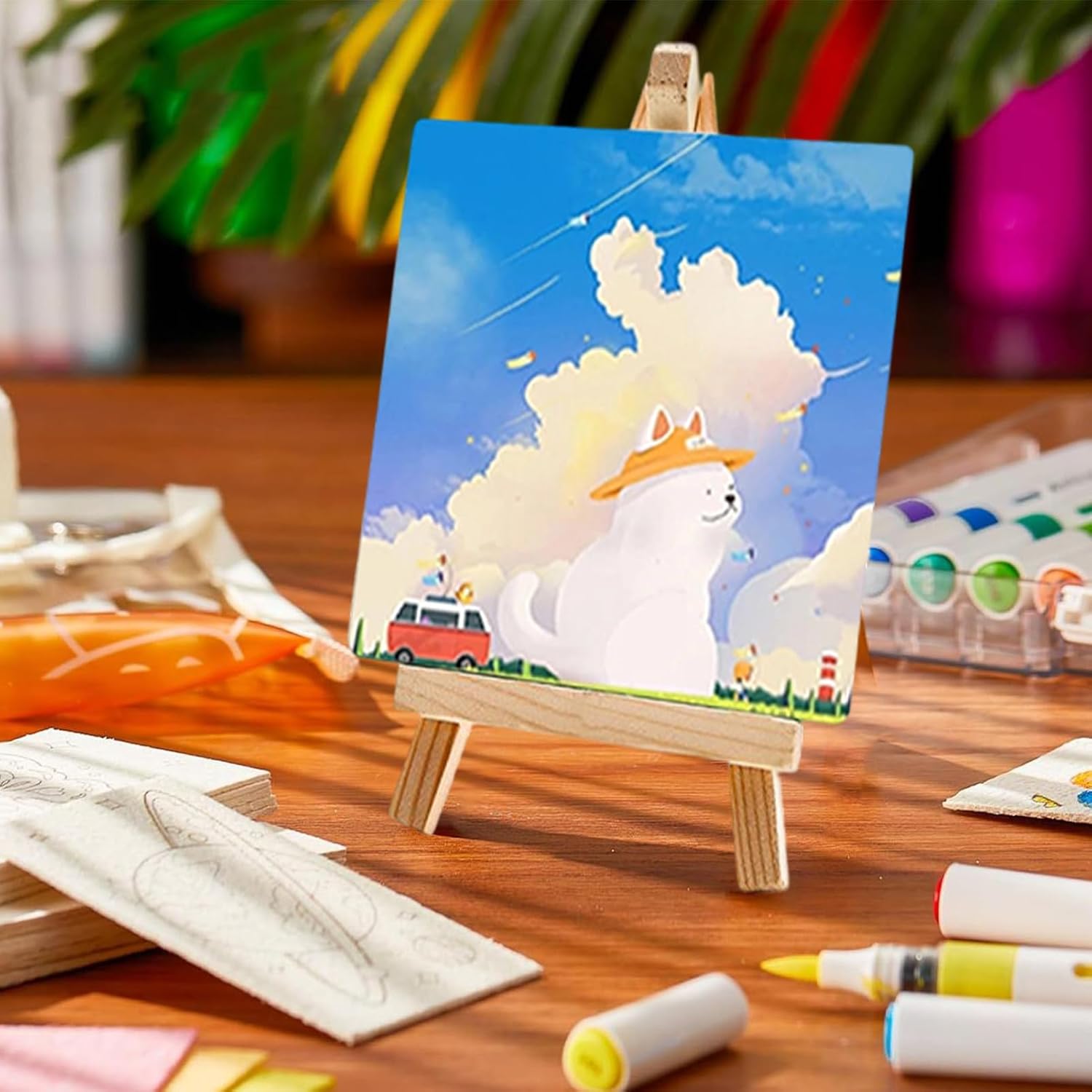 Pulizia Semplice: Godi colori intensi con vernici acriliche lavabili progettate con formula sicura per bambini, consentono pulizia a base d'acqua senza sforzo durante il gioco artistico Abilità Motorie Creative: Promuove creatività e sviluppo motorio con attività didattiche divertenti, ideale per bambini dai 3 anni in su che esplorano l'arte con gioia e sicurezza grazie a questo set completo per pittura su tela. Set Polivalente: Esprimi la tua creatività con progetti decorativi per pareti, attività manuali per tutta la famiglia e soluzioni regalo significative per occasioni speciali e appassionati di pittura Set Pronto per il Viaggio: Design compatto e portatile con custodia integrata per tenere gli al sicuro, supportando la creatività in qualsiasi luogo con estrema facilità Set versatile: Dotato di 10 mini, cavalletto in legno e componenti necessari, questo kit pittorico completo sostiene il tuo percorso creativo con praticità