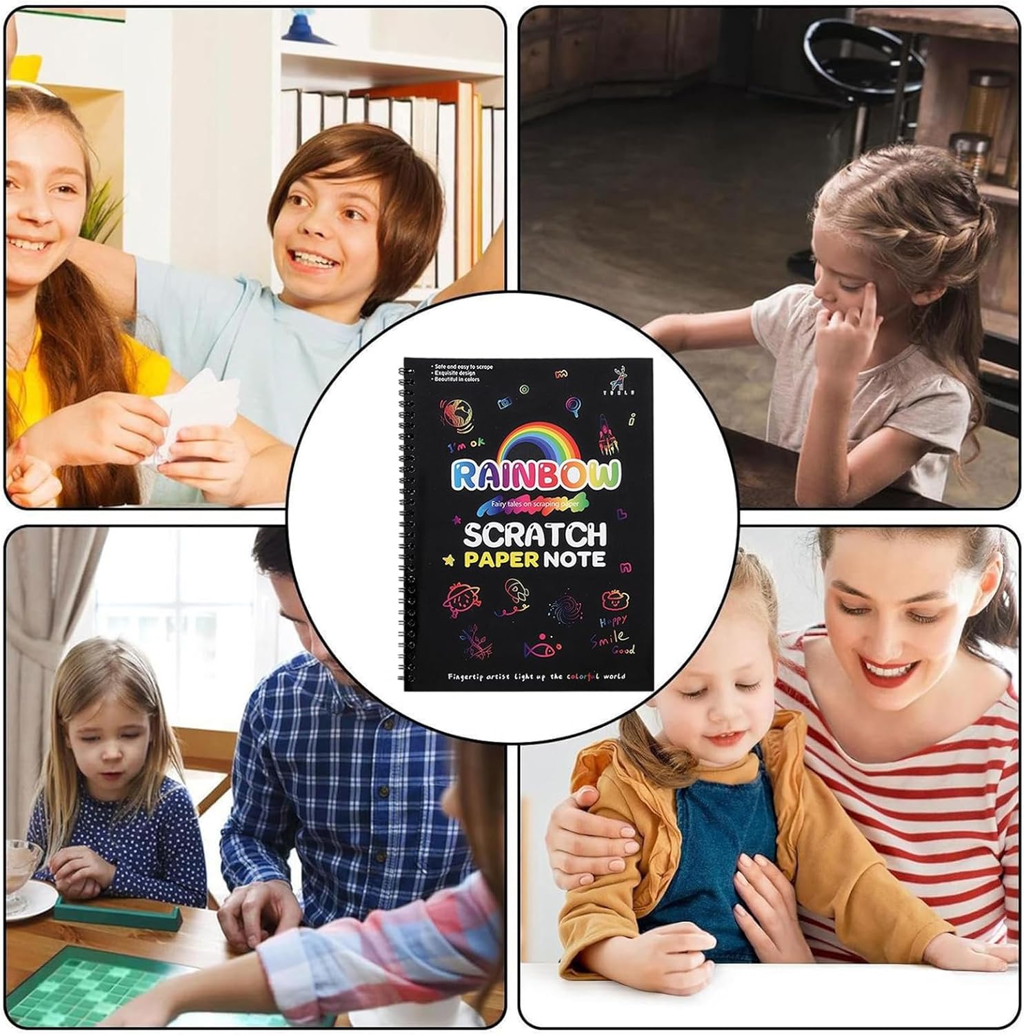 Materiale Premium: Realizzato con carta di alta qualità, garantisce nitidezza visiva e resistenza nel . Preserva i disegni con contrasti cromatici vivaci e mantiene i segni nitidi per risultati artistici duraturi Strumento Apprendimento Creativo: Libro Scratch offre esperienza pratica con supporti disegno e educazione artistica per potenziare riconoscimento colori, sviluppo sensibilità artistica e comprensione pattern per tutte le età. Esperienza di Gioco Interattiva: Progettato per coinvolgimento tattile, favorisce creatività unendo colorazione a graffio e gioco sicuro che stimola apprendimento creativo Libertà Creativa: Godi di una creatività semplice senza attrezzi aggiuntivi, grazie alla penna in legno progettata per un uso scorrevole che migliora l'espressione artistica Portabilità Assoluta: Progettato per massima comodità, il formato compatto garantisce adattabilità in molteplici contesti incoraggiando espressione artistica immediata e libera.