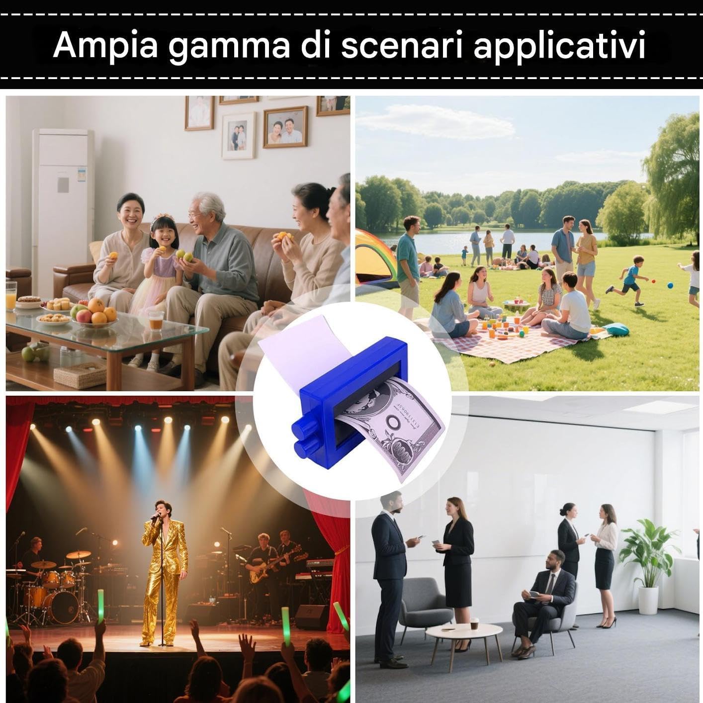Design dalla Transizione Perfetta: Converte istantaneamente carta in banconota attraverso un design fluido, assicurando esecuzione impeccabile e creando effetti visivamente straordinari in ogni situazione Design Compatto: Struttura pratica senza preparativi complessi, perfetta per l'uso con una sola mano durante esibizioni improvvisate e interazioni ravvicinate in attività di controllo portatile. Potenziamento Flessibile: per riunioni familiari, atti scenici e occasioni sociali, arricchisce le esibizioni magiche adattandosi naturalmente a scenari differenti creando momenti memorabili in qualsiasi ambientazione Integrazione Intelligente: Il di collegamento smart semplifica l'apprendimento, permettendo padronanza in tre passaggi intuitivi e garantendo prestazioni senza interruzioni grazie al funzionamento facile e scorrevole Performance Anallergici: Materiali certificati non irritanti per effetti legali e realistici, progettati senza dettagli valutari per totale conformità durante spettacoli e utilizzo prolungato