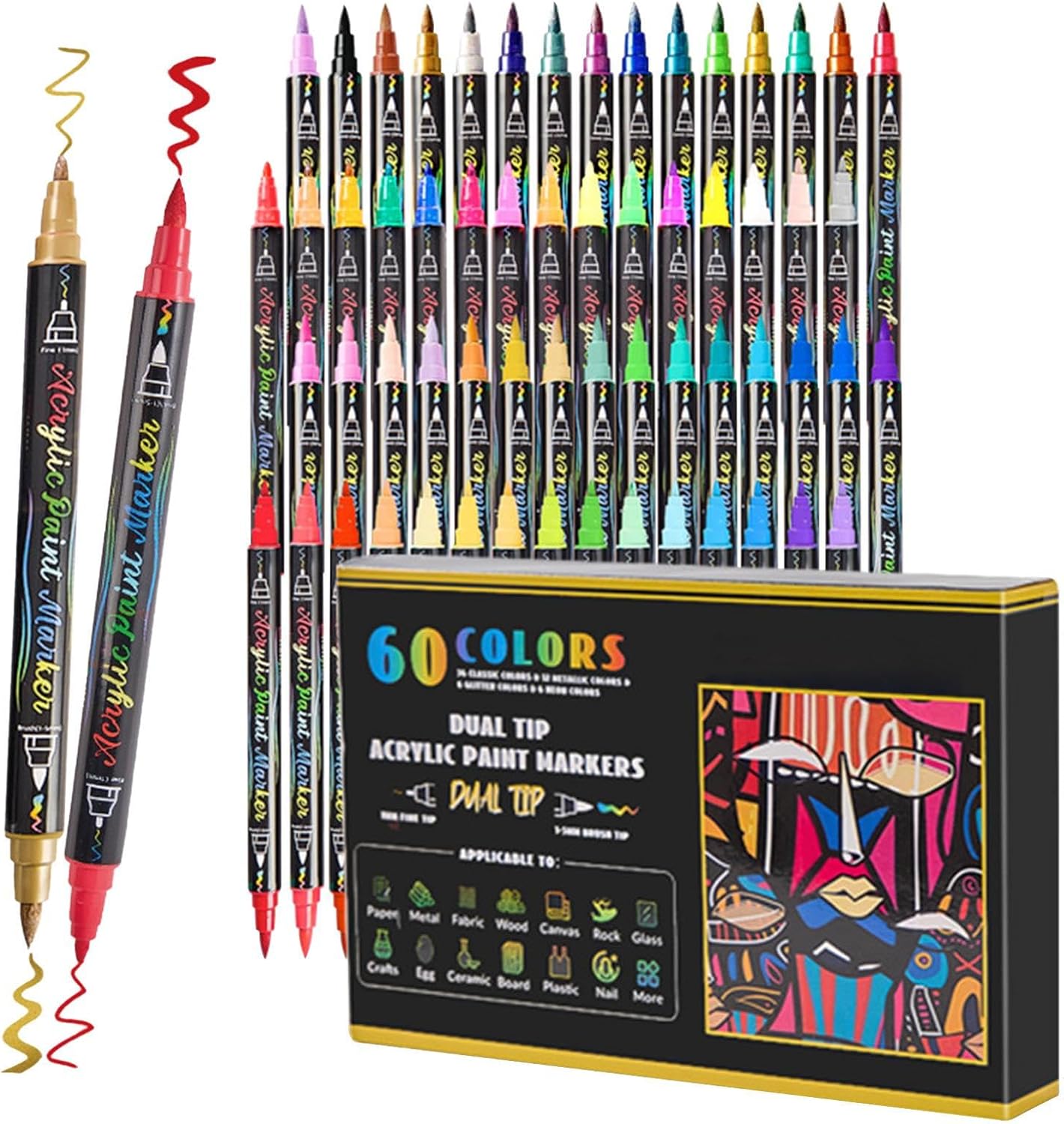 Gamma Completa Creativa: Doppia punta fine/media con 60 colori saturi selezionati, progettati per transizioni graduali e dettagli precisi in schizzi, mappe mentali e progetti educativi con facilità d'uso garantita Combo Creativa: perfetta tra precisione millimetrica della punta fine e fluidità del pennelloRealizza sia micro-dettagli che campiture ampie con un solo strumento Facile utilizzo: Marcatori a doppia punta pronti all'uso senza bisogno di agitare o premere, garantiscono un flusso d'acqua costante e uniforme per tratti fluidi e disegni precisi, ideali per stimolare la creatività in modo naturale e senza interruzioni Inchiostro di qualità: Formula pigmentata con elevata concentrazione cromatica che resiste a luce e umidità. Le punte in fibra premium mantengono la forma dopo utilizzi intensivi, consentendo linee nitide sia con la punta fine che con quella a pennello. Utilizzo versatile: Ottimi risultati su legno, carta, tessuto e ceramica grazie alla punta duale regolabile, ideali per hobby, fai da te e progetti scolastici con controllo del tratto e resistenza allo sbavamento