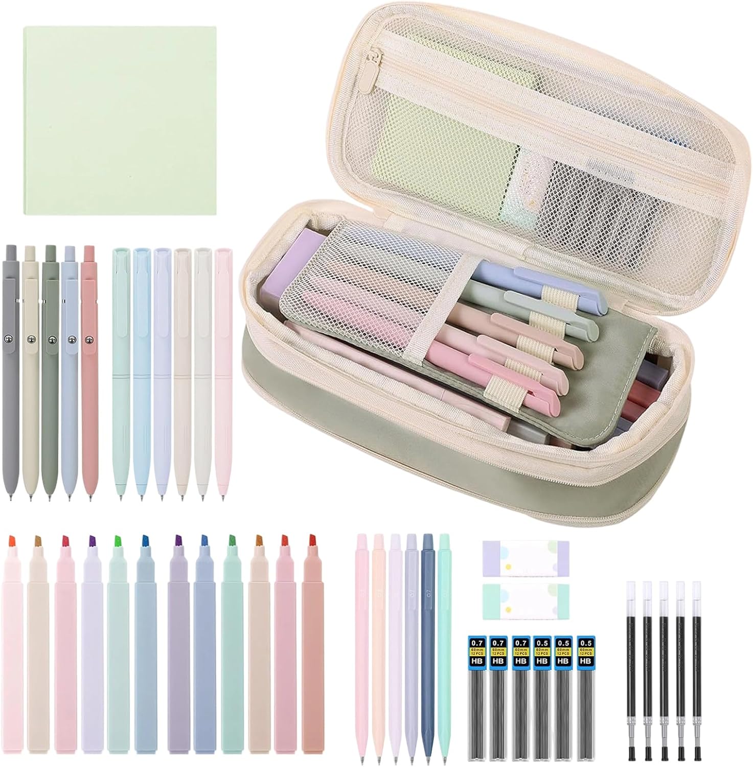 Organizzazione scrivania ottimizzata: Progettato con layout di archiviazione a livelli e scomparti con tasche in rete, questo portapenne completo garantisce il mantenimento di spazio di studio ordinato ospitando vari oggetti, creando una soluzione integrata che supporta la produttività durante esami o progetti creativi Supporto scrittorio sostenibile: Il design ricaricabile fornisce supporto per scrittura frequente attraverso mine e refill per penne a sostituibili, promuovendo l'uso sostenibile e semplificando le attività scolastiche quotidiane riducendo la necessità di sostituzioni frequenti. Strumenti Vividi: I materiali scolastici aesthetic uniscono inchiostro gel anti sbavature ed evidenziatori brillanti per produrre appunti leggibili, aiutando gli studenti a organizzare pensieri in modo efficiente durante studio o discussioni con design accattivanti Scelta motivazionale regalo: Questo astuccio estetico fonde estetica accattivante e funzionalità pratica, funzionando come set regalo per il ritorno a scuola che motiva gli studenti con look rinfrescante e soluzioni di organizzazione per la cancelleria in modo ordinato e ispiratore Organizzazione Studio Efficiente: Questo set di cancelleria estetico da 44 pezzi include strumenti per scrivere ed evidenziare ad per organizzare appunti, garantendo accesso immediato per massima efficienza e consentendo agli studenti di ottimizzare il flusso di lavoro mantenendo un ambiente di studio ordinato senza