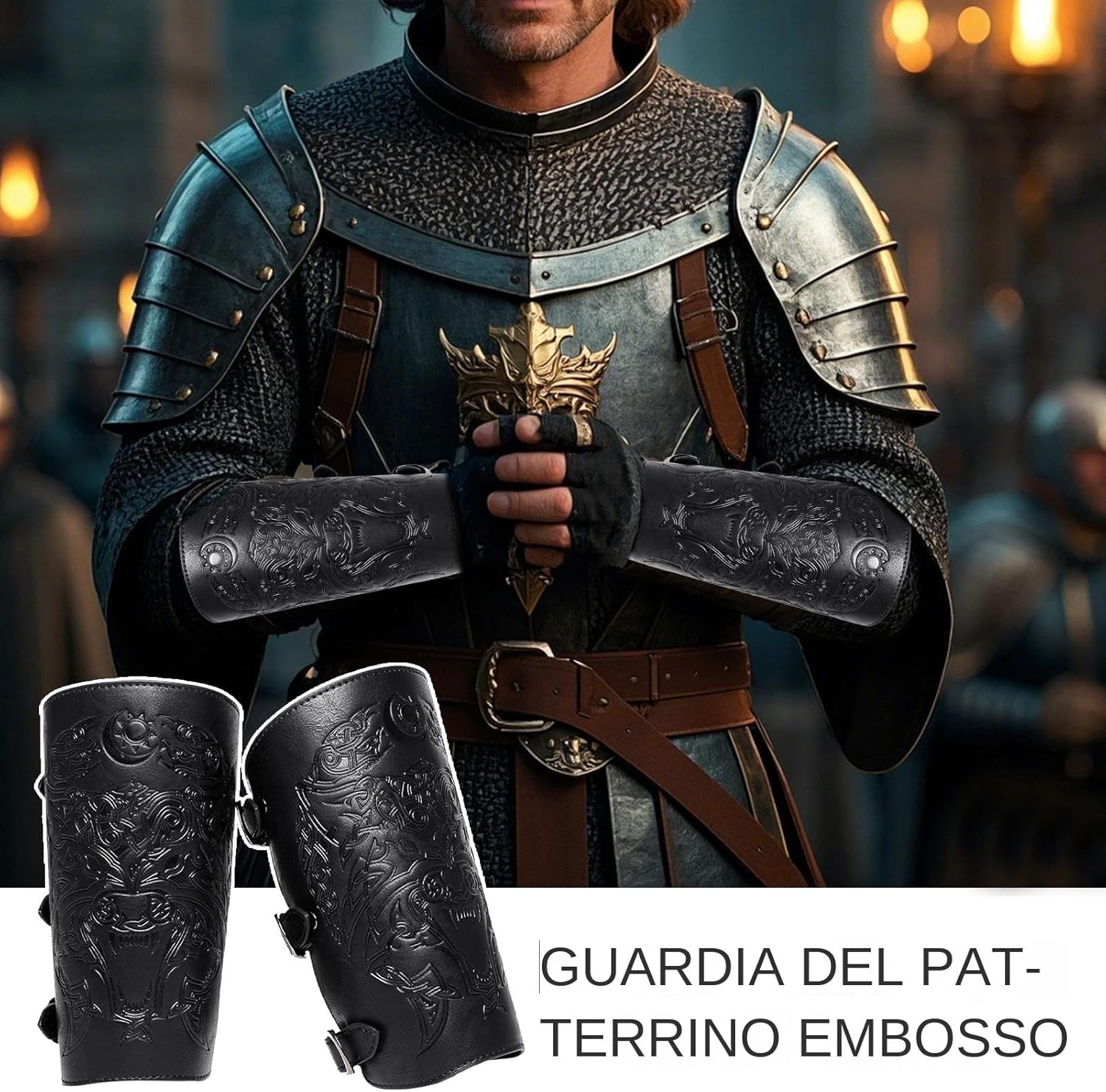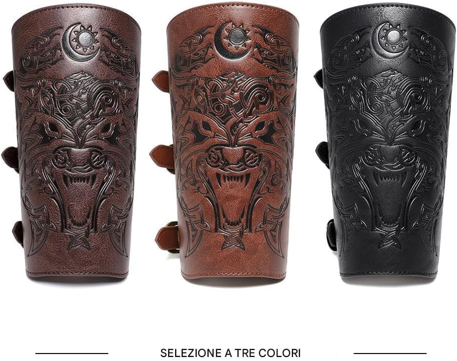 Improve your medieval ensemble with these Exquisite Embossed Patterned Bracers for Men. Crafted for stability and comfort, these bracers cater to various wrist sizes, providing robust forearm protection on stage or in battle. Specifications: Material: PU leather Product size: about 24.5x19.5cm/9.65x7.68 inches, strap length: about 17.5cm/6.89 inches Weight: 140g per piece Color: black, brown, coffee Packing List: 2 pieces * embossed wrist guards Note: Due to different lighting and screen settings, the item color may be slightly different from the picture. Due to different manual measurements, please allow a 1-2cm difference in size.