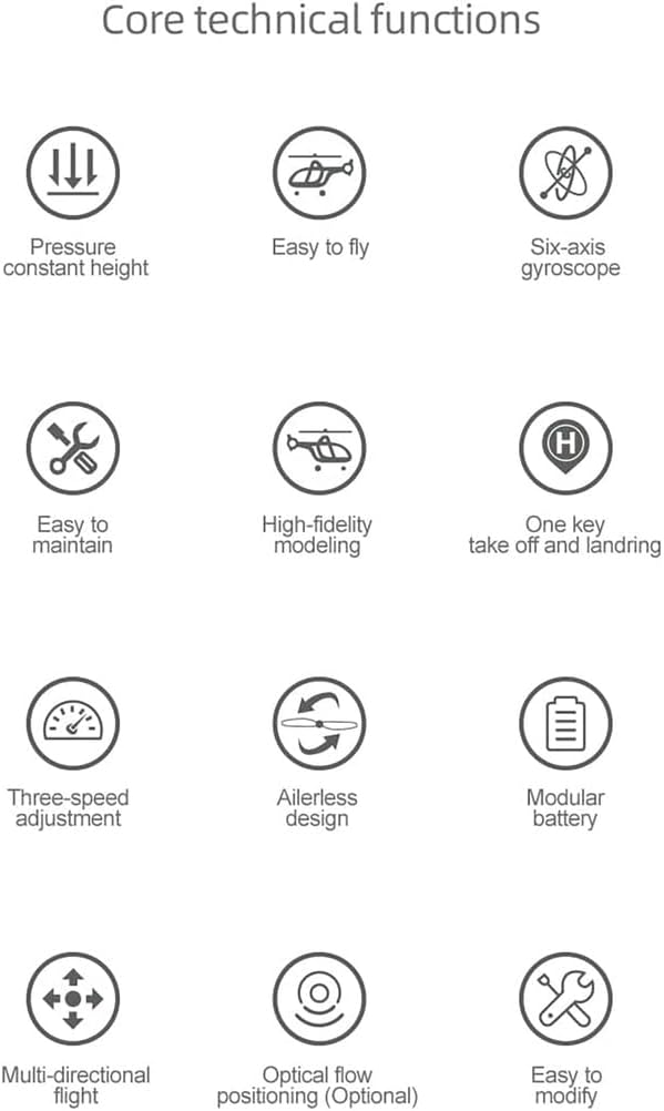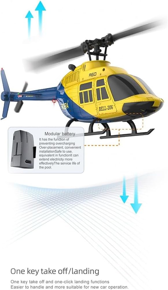 [Volo stabile] L'elicottero RC A60 Mini RC adotta un design a 6 canali senza flap con mantenimento dell'altitudine barometrica e stabilizzazione giroscopica, garantendo un volo stazionario fluido e un controllo preciso sia per i principianti che per i piloti esperti [Facile da controllare] Dotato di decollo/atterraggio con un solo tasto, direzioni di volo flessibili e percorsi di volo programmabili, questo elicottero consente a adolescenti e adulti di padroneggiare rapidamente le operazioni mentre si godono avventure di volo coinvolgenti all'interno o all'esterno [Sicuro e affidabile]Dotato di una batteria al litio modulare da 3,7 V 220 mAh, allarme di bassa tensione, blocco del rotore e protezione contro il fuori controllo, l'elicottero RC A60 offre una maggiore durata, una ricarica più sicura e voli sicuri in ogni sessione. [Design compatto]Con un diametro del rotore di 227 mm, una lunghezza della fusoliera di 238 mm e una distanza di controllo di 80-120 m, questo mini elicottero combina portabilità e prestazioni, rendendolo adatto sia all'esplorazione all'aperto che all'allenamento al chiuso [Regalo perfetto] Progettato per gli appassionati di modellismo aeronautico, i collezionisti per hobby e gli adolescenti amanti della tecnologia (16+), l'RC A60 è un regalo di compleanno o di Natale ideale che offre emozioni, istruzione e divertimento pratico con il volo RC.