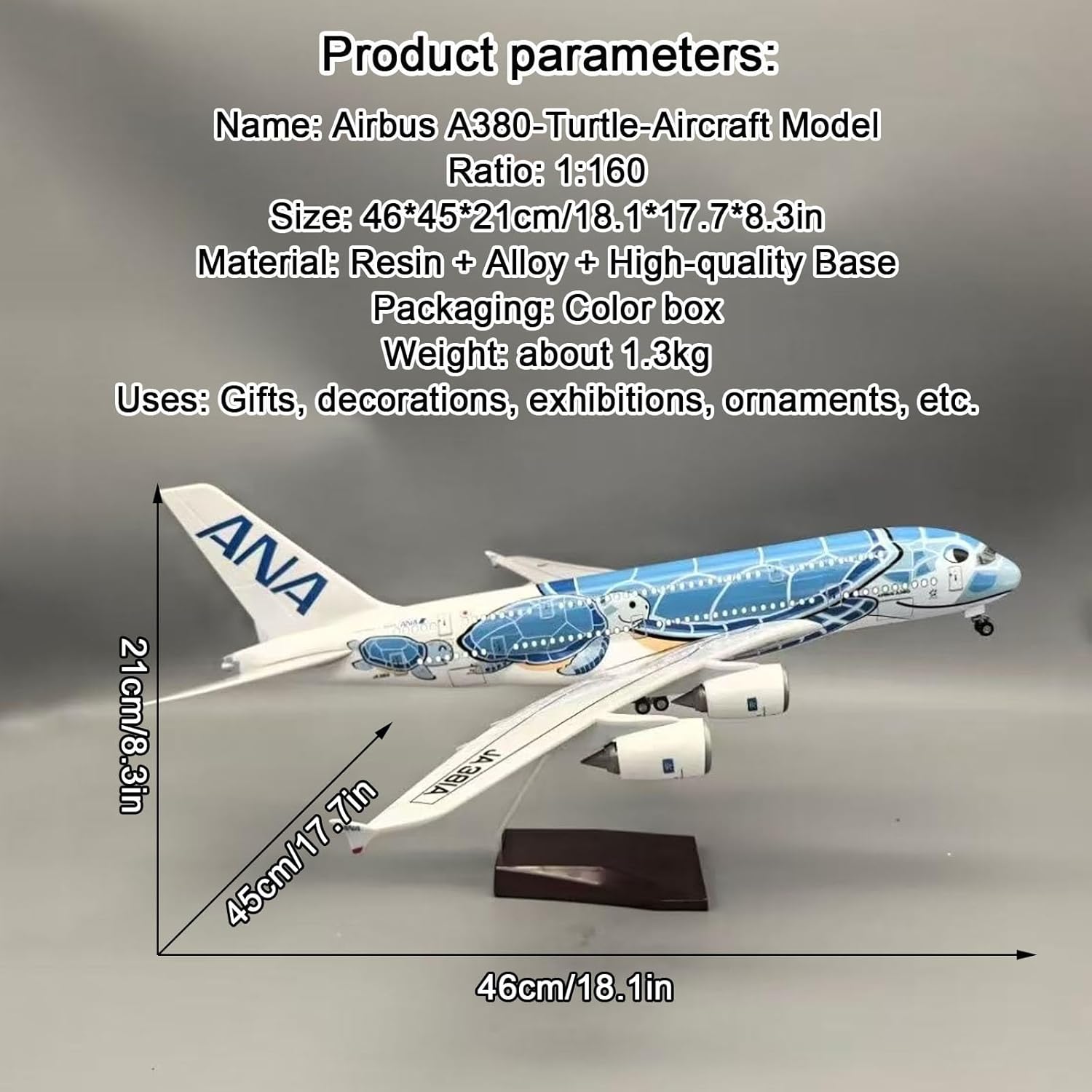 Generico Modello di aereo ANA A380 Blue Turtle del Giappone - Aereo pressofuso in scala 1/160