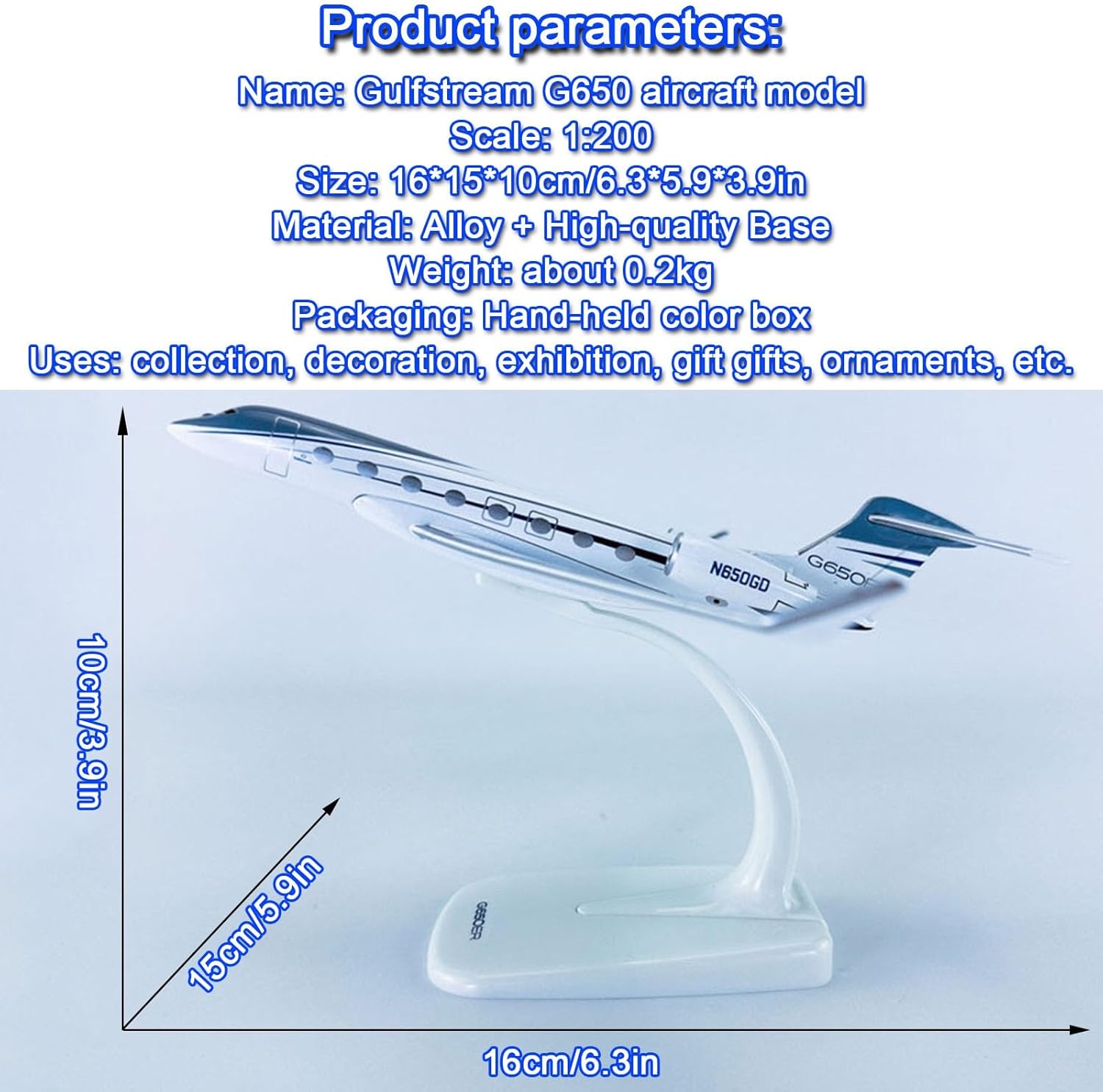 Modello Gulfstream G650: kit di modellismo pressofuso del Gulfstream G650. Ogni dettaglio è stato accuratamente realizzato for garantire una fedele riproduzione di questo iconico caccia. Dal design elegante alle intricate marcature, questo modello cattura l'essenza del velivolo originale. Materiale: la struttura principale del modello di aereo è realizzata in materiale pressofuso in lega con un carrello di atterraggio in lega ABS che può essere smontato a piacimento e puoi scegliere di far decollare o atterrare il tuo jet da combattimento Dimensioni: modello di aereo Gulfstream G650 in scala 1:200, l'intera macchina pesa circa 0,2 kg, la lunghezza del corpo è di 6,3 pollici, la larghezza (la distanza tra le parti superiori delle due ali) è di 5,9 pollici. Stampo accurato, vernice di prima classe, rifinito secondo rigorosi dettagli for mantenere le proporzioni originali, adatto for l'esposizione e la collezione di appassionati di modelli. Funzione: Questa è una splendida replica di aeroplani. I modellini di aeroplani possono essere utilizzati come raffinate decorazioni e oggetti da collezione for uffici e case, e sono anche il miglior regalo for appassionati di aviazione, personale o collezionisti. Imballaggio: questo kit di modellismo aereo è un modello statico con il carrello di atterraggio fermo, il che lo rende facile da collezionare e da regalare. Tuttavia, questo modellino di aereo è stato restaurato con cura e parti di pregio, quindi utilizziamo scatole di dimensioni corrispondenti, che possono impedire all'aereo di vibrare e garantire che il tuo modellino sia perfetto e intatto al momento della consegna.