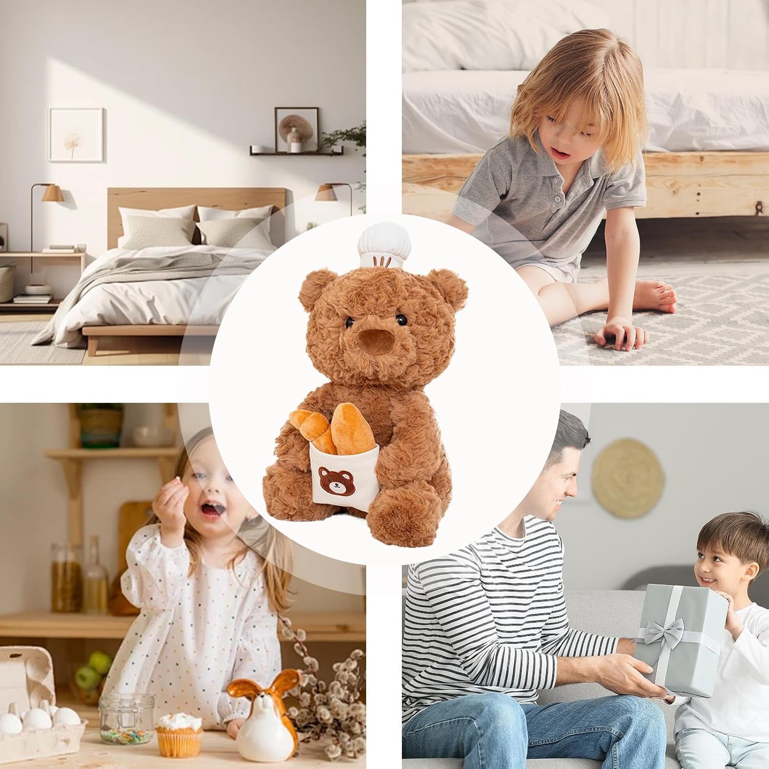 Aggiungendo fascino con un tocco accogliente: infondi il tuo spazio abitativo con intimità aggiungendo il nostro peluche di orso come incantevole decorazione di mobili. Questo accattivante pezzo di arredamento per la casa si adatta perfettamente all'atmosfera della tua stanza, aggiungendo divertimento e calore a qualsiasi spazio. Strumento di esplorazione 'occupazione: l'immaginazione dei bambini con il nostro peluche vestito con un cappello e uniforme da pasticceria, completo di una borsa da pasticceria. Il design del costume professionale stimola la loro curiosità per varie professioni e le ispira a esplorare i loro interessi. Eccellente qualità del tessuto: il peluche 'orso è realizzato in materiale che non è facile da deformarsi, assicurando che rimanga morbido e comodo da toccare. Questo peluche è per e pisolino Per la maggior parte delle occasioni: con il suo fascino e personalità innati, questo orso lussuoso può essere regalato in una vasta gamma di occasioni tra cui la giornata per bambini, il Natale, i compleanni e altro ancora. Posizionalo sullo scaffale della tua collezione o regalalo, poiché è sicuro di portare gioia a bambini e adulti stesso modo Buona scelta per i regali: farli sentire speciali con il nostro peluche super morbido e coccolone, ben confezionato alla perfezione. È il regalo per esprimere il tuo amore e il tuo affetto per i tuoi , amici, colleghi, clienti o anche per te stesso per compleanni, vacanze, anniversari o semplicemente perché