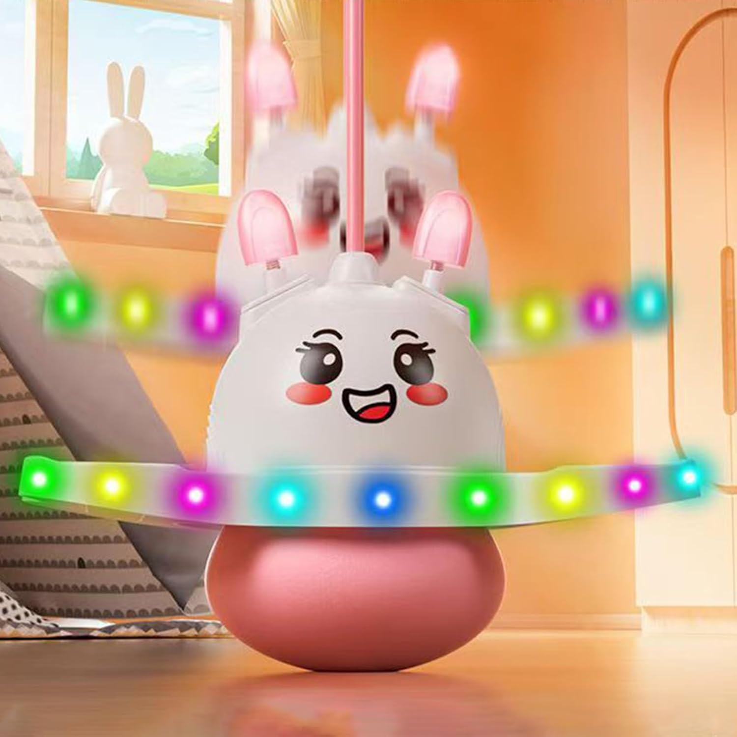 Allenamento Giocoso Innovativo: Con struttura resistente fino a 100kg, favorisce stile di vita attivo attraverso rimbalzi creativi, adatto a sessioni di fitness divertente per genitori e figli in qualsiasi ambiente Essenziale per Esercizio Quotidiano: Strumento fondamentale per rinforzare i muscoli centrali e migliorare equilibrio/coordinazione durante l'attività fisica giornaliera dei bambini, promuovendo crescita sana e controllo corporeo. Gonfiare dopo la consegna. Gioco coinvolgente e illuminato: Progettata con un effetto luminoso morbido, la palla saltellante cattura l'attenzione dei bambini e stimola l'interesse per l'esplorazione; mentre saltano, le orecchie da coniglio si muovono dinamicamente, aggiungendo eccitazione e promuovendo il movimento attivo in modo divertente, migliorando efficacemente il gioco indoor o outdoor Per tutte le età: Progettata per soddisfare le esigenze motorie di bambini e adulti, la palla saltarella offre sessioni di rimbalzo personalizzabili con diversi livelli di intensità, mantenendo comfort e sicurezza in ogni movimento Comfort personalizzato:Base adattabile e lunghezza corda regolabile consentono una presa stabile e piacevole, favorendo il mantenimento della forma di salto perfetta