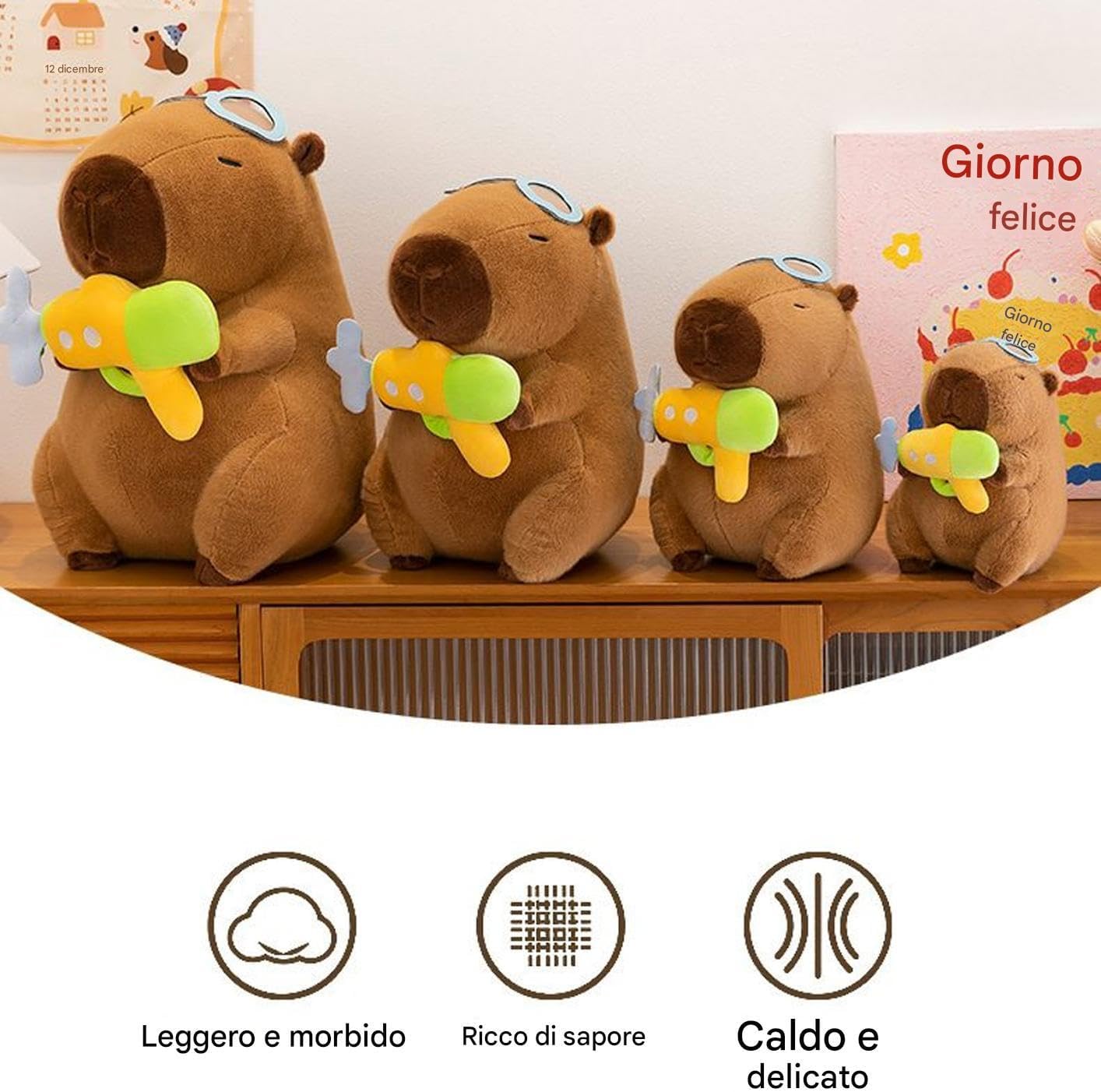 Sicurezza e Stile: Bordi arrotondati e cuciture resistenti offrono un'esperienza sicura e . La stampa esteticamente curata del costume da bagno l'attrattiva visiva del peluche capibara, mantenendo praticità e comfort per ogni utente. Leggero e Pratico: Progettato per adattarsi comodamente agli zaini, questo peluche capibara offre portabilità senza pari, garantendo un compagno di viaggio fedele in ogni momento Allegria Stagionale: Porta sorrisi con questo peluche capibara confezione ispirata all'estate ne accresce l'attrattiva come regalo compleanno premuroso diffondendo energia ovunque Decorazione Animale Trendy:Peluche carpincho in costume da bagno estivo per atmosfere giocose. Decorazione scrivania ideale per collezionisti e amanti di animali, unisce creatività e stile ricercato per ambienti domestici o lavorativi. Compagno Resistente: Prova la piacevole morbidezza con superficie soffice, struttura robusta e materiale PP ecologico per un peluche affidabile e compagnia coinvolgente nel