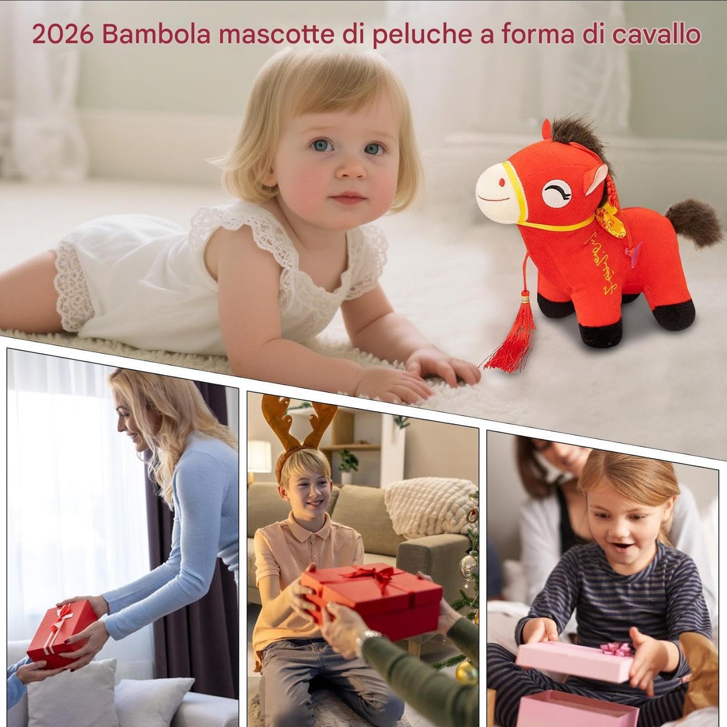 Aggiunge gioia e armonia: Porta armonia e felicità nel spazio con questo cavallo di peluche, un'ottima scelta di decorazione che arricchisce l'atmosfera celebrativa con un fascino senza e un design coinvolgente Lavorazione Ricercata: Grazie a cuciture precise e una manifattura raffinata, questo peluche cavallo si distingue come un oggetto da collezione prezioso, realizzato con un controllo qualità costante che ne garantisce il valore nel Regalo per Traguardi: Un raffinato peluche cavallo creato per commemorare traguardi di vita, si presenta come significativo condividendo benedizioni e , emergendo come scelta regalo perfetta per ogni occasione Inconfondibile: Realizzato con attenzione ai dettagli, offre una texture costantemente confortevole grazie al tessuto peluche soffice e all'imbottitura sicura in cotone PP, per esperienze tattili rilassanti Simbolismo e Arte Culturale: Incarna e benedizioni, ispirato al design della mascotte cinese, mostra un'arte culturale senza e fascino per collezionisti e appassionati di decorazione