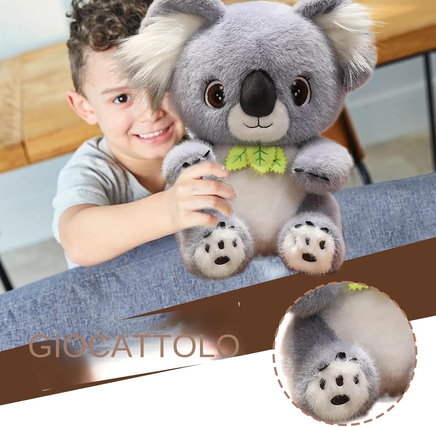 Trama Morbida:Imbottitura in ovatta PP ad alta elasticità offre una texture delicata, morbida ma di supporto per dormire, cuscini o relax, migliorando il comfort quotidiano con sensazione avvolgente Ampi contesti d'uso: Fedele compagno notturno per bambini, agevola la meditazione e supporta la gestione delle emozioni, donando conforto con la sua rassicurante presenza che favorisce la consapevolezza Compagno Emotivo: Peluche koala morbido offre conforto e relax con design accattivante, diventa fedele amico per supporto emotivo costante in ogni momento della giornata Supporto Immediato: Fornisce conforto emotivo sul lavoro, a scuola o in viaggio, assistente portatile e versatile ogni volta che serve Fattura Deliziosa: Occhi luminosi e orecchie ultra-morbide caratterizzano questo peluche koala, che offre un accogliente punto visivo con un design affascinante realismo e charme giocoso si fondono armoniosamente