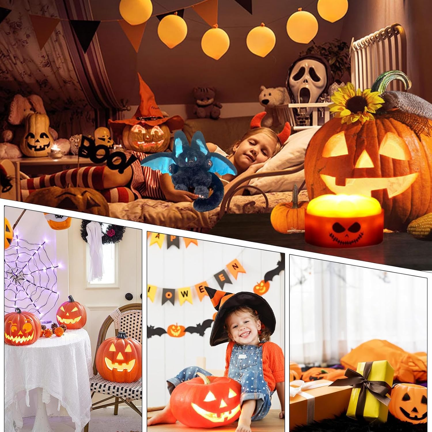 Decorazione spaziale dinamica: dotato di una modellazione della postura di volo ad ala aperta, questo peluche a forma di aggiunge un maestoso senso dinamico di decorazione spaziale alla tua stanza. Preparati a rimanere colpito dalla sua grafica realistica Extra confortevoli: creati con un tessuto peluche che non si deforma, i giocattoli di peluche Bat non promettono pelucchi o sbiadimenti per fornire un compagno morbido e confortevole che dura oltre l'infanzia Ampia applicazione: trasforma qualsiasi soggiorno, , caminetto, divano, auto o festa a tema con i nostri giocattoli di peluche a forma di : il supporto fotografico per un'atmosfera inquietante e festosa. La sua versatilità lo rende un must per ogni occasione terrificante Regalo creativo: migliora i tuoi regali con questo affascinante peluche a forma di : un regalo per uomini, donne e bambini ad Halloween, Pasqua o Natale. Questo adorabile giocattolo è un modo pratico per mostrare alla tua famiglia, ai tuoi amici e ai tuoi colleghi quanto ci tieni Migliora l'atmosfera di Halloween: lasciati affascinare dal misterioso e divertente fascino di Halloween dei nostri giocattoli di peluche a forma di . L'esclusivo design degli scuri con dettagli decorativi blu e il materiale peluche nero incarnano perfettamente l'atmosfera di questa stagione. Prova l'emozione mentre ti coccoli con il nostro spaventoso amico